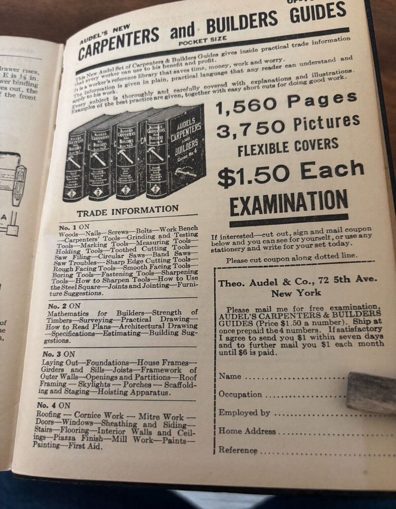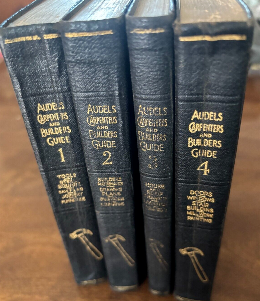 This is a complete Original set of Audels Carpenters and Builders Guide Volumes 1-4, published in 1923 by Theo Audels & Co. The books are in their original form and are illustrated with special attributes. The binding is made of leather and the language is English. The books are not personalized and have not been signed by the author, Frank D. Graham. The subject of the books is a reference guide for builders and carpenters. The region covered is North America and the year printed is 1923. This set of books is a great addition to any antique or collectible collection. Pre-power tool era. A must for any restoration project. My grandfather gained knowledge from these books which made him a lead carpenter on the Polo Grounds. Many reprints exist, but this is an original *IMPORTANT GENERAL INFORMATION* ITEM CONDITION: All our items are vintage (20-year minimum age) and pre-owned. Minor flaws are to be expected, due to the item's age and prior use. We make every effort to identify any imperfections we find upon inspection and include that information in our description. However, we are only human, so please carefully examine all photographs of the product, as they are part of the description. Message us with any questions or if you would like additional photos. Your satisfaction is our priority! ITEM CLEANING: Some vintage and antique items require the services of a professional cleaner in order to maintain the item's historic or vintage properties. Other times, even what would be considered a "gentle cleaning" may result in a lost patina or missing original gold trim. Those results can never be undone. Therefore, we only do light dusting or hand-washing or dirt removal where absolutely necessary and leave the choices of cleaning methods or restoration to the buyer. SHIPPING: All our offerings are carefully packed so that they leave our inventory ready to be safely delivered to you. Should any items be damaged in transit, please keep all packing materials and boxes, plus photos of the damaged packaging and contents. Message us through Ebay, and we will get back to you quickly. PACKAGING: We use recycled shipping boxes whenever we can. We value reducing waste and minimizing environmental impact. Thank you for shopping with us!