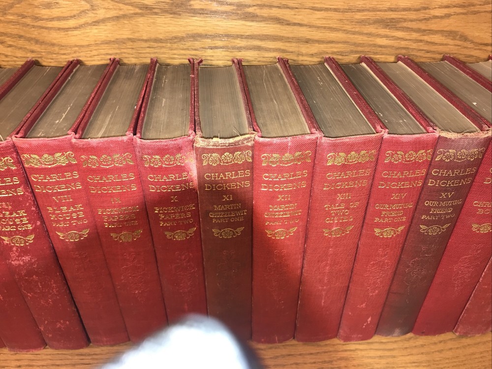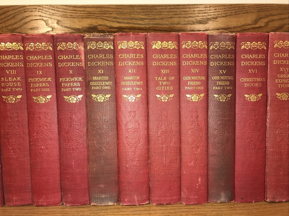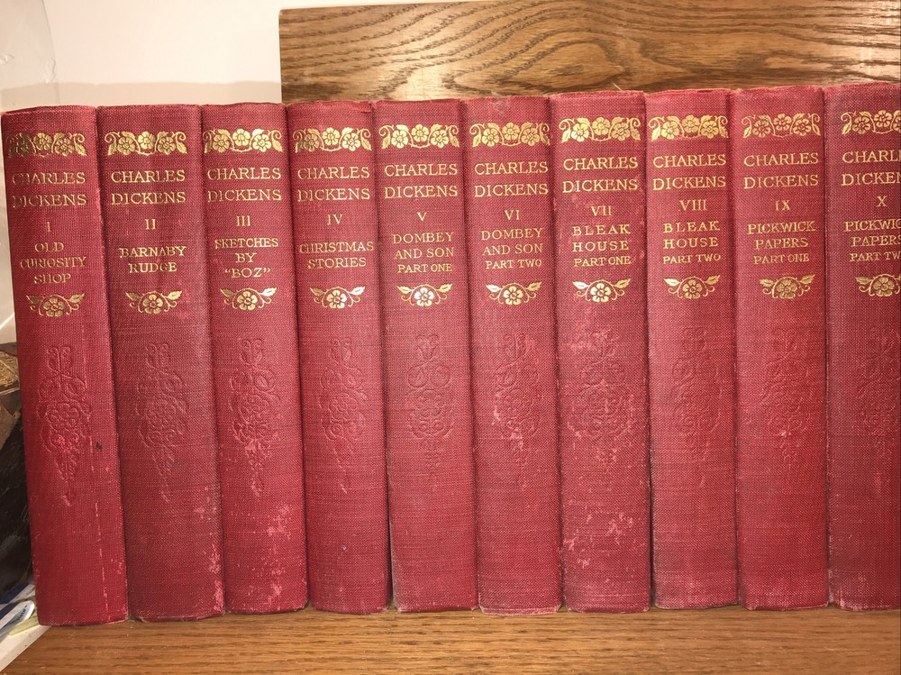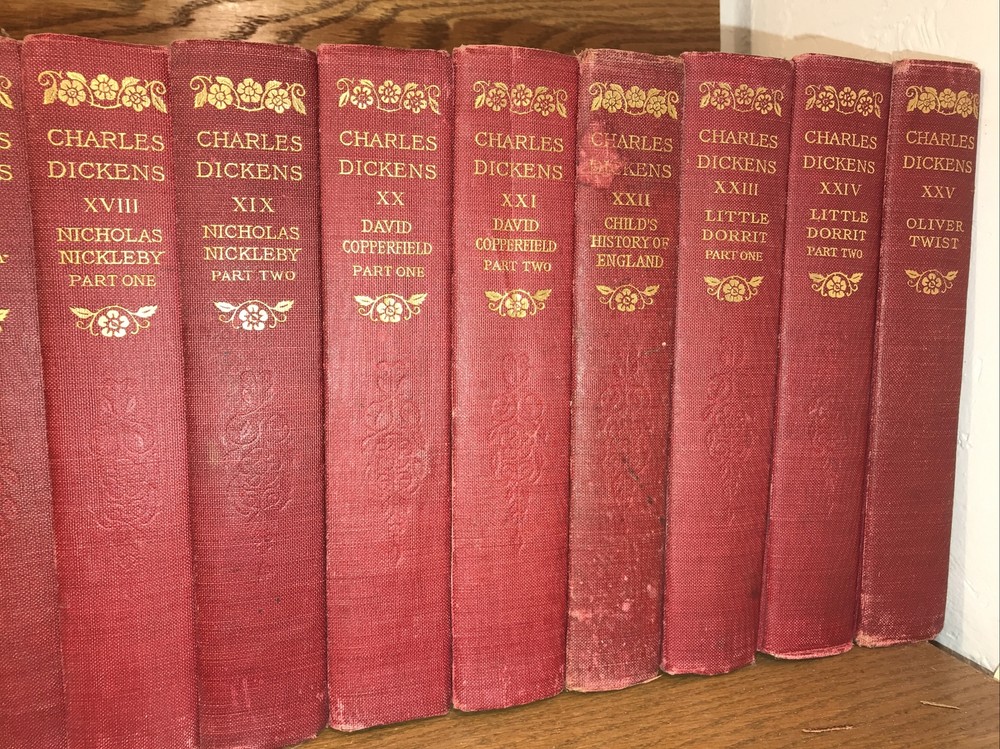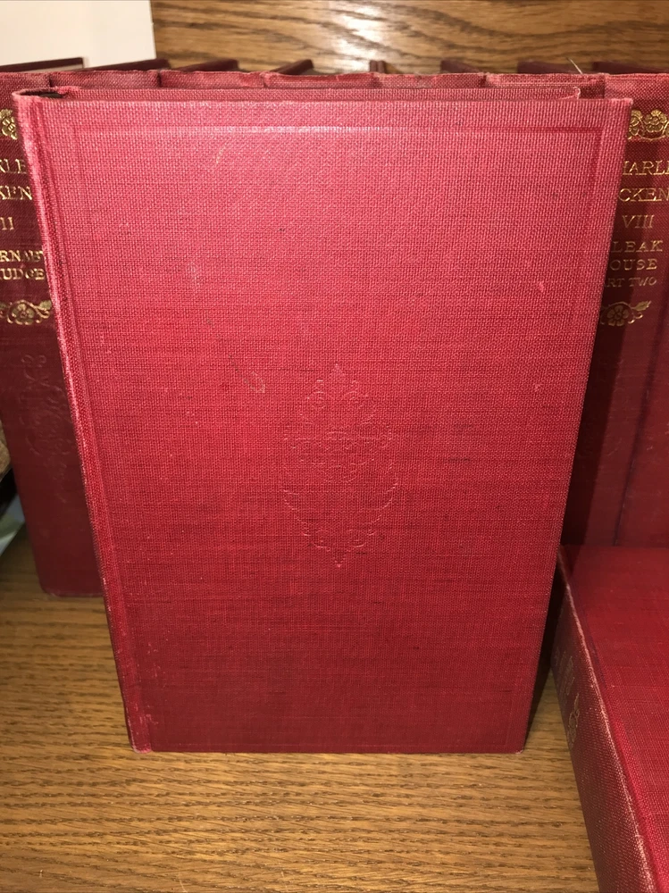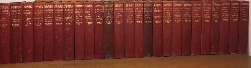 C omplete in 25 volumes. C opyright 1911. Q uality paper. Frontisplates. G eneralized usage wear/shelf wear. Internal hinge paper separation as shown. Some looseness. Early name in pencil. Still a nice and complete antiquarian set of Dickens. E ach book will be individually wrapped and well protected for shipping.