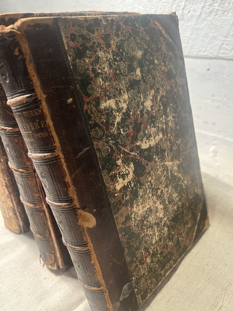 The Bindings are flaking off but otherwise in really great shape for their age. The seems are strong a nice addition. Published in London not New York like a lot of the other editions....