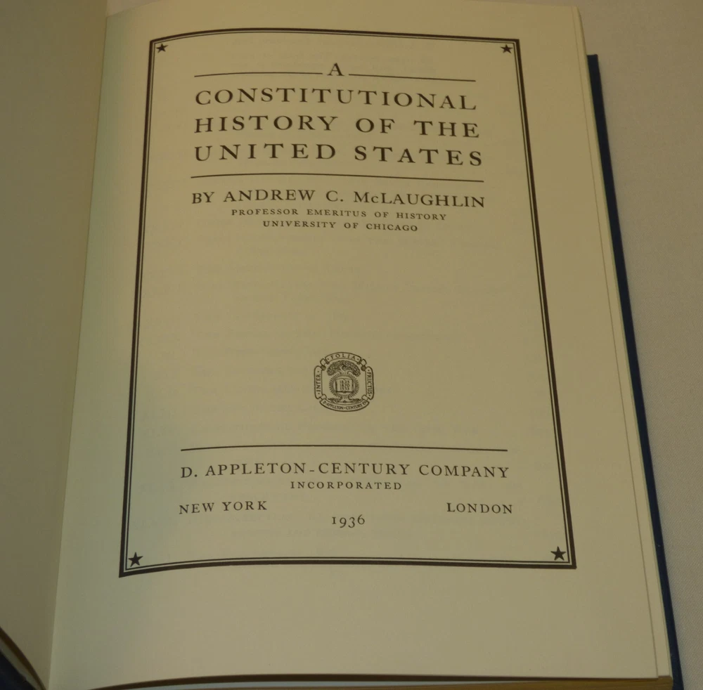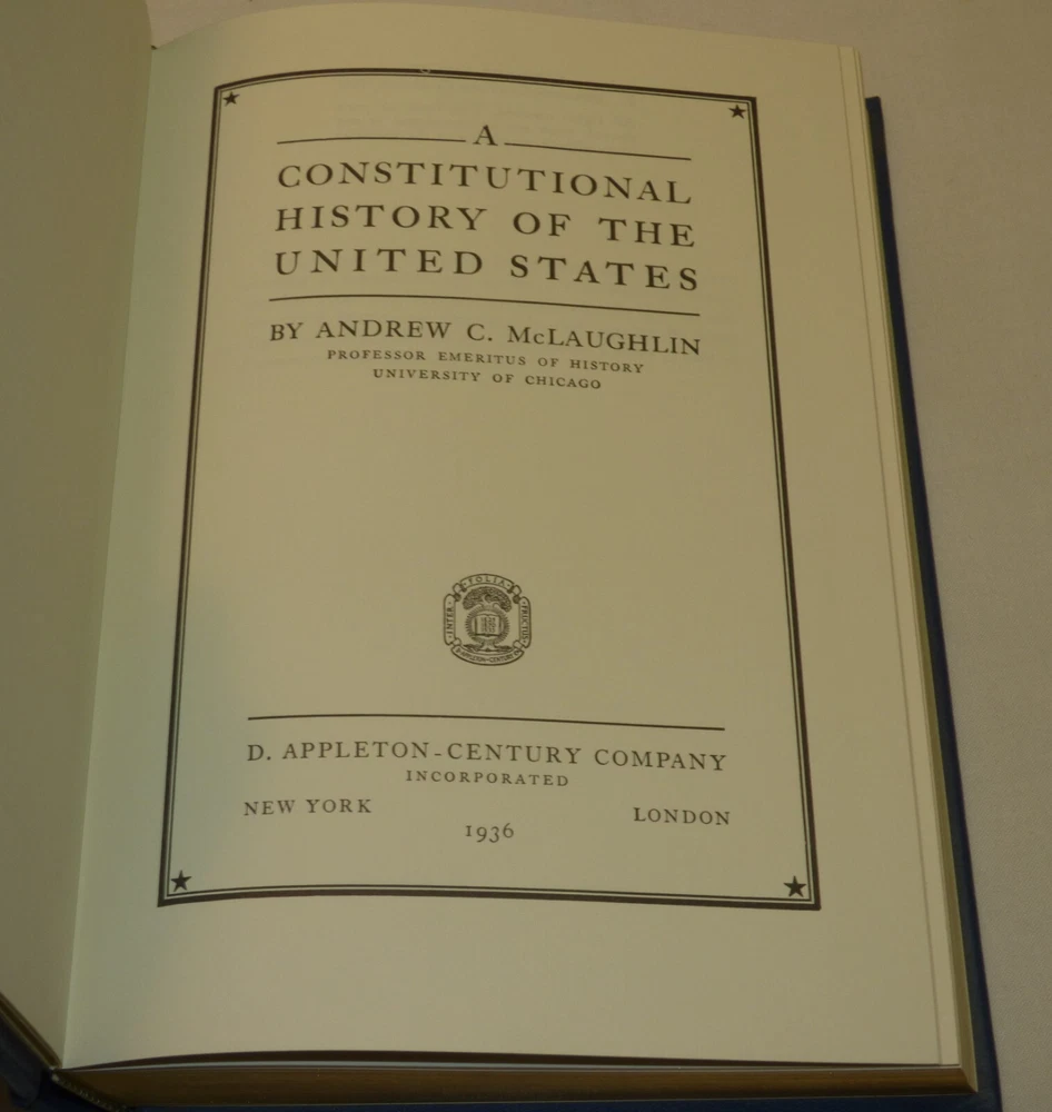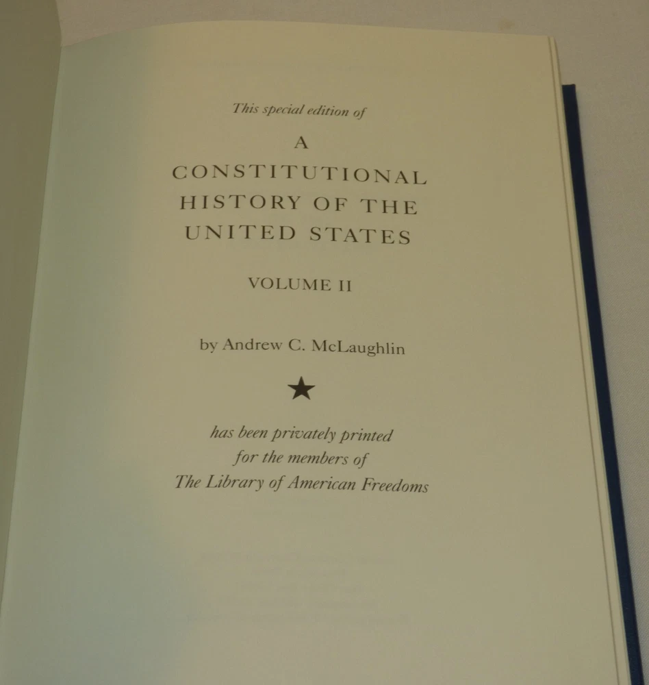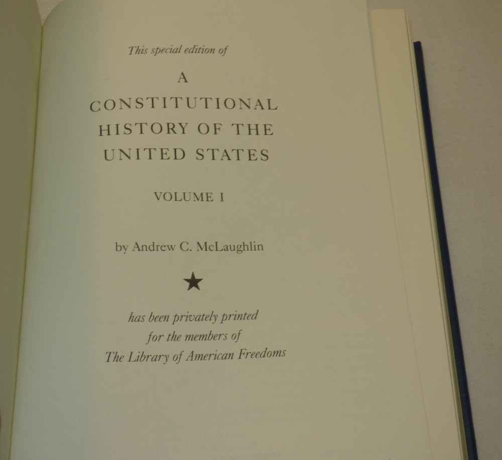 This is a 2 volume set of "A Constitutional History of the United States" by Andrew C. McLaughlin which was originally published in 1936. This is a special edition, privately printed for the members of the Library of American Freedoms. Leatherbound hardcover books with gilt edges and marbled endpapers. Published by Palladium Press, 2004. Vol. 1 contains 400 pages; vol. 2 contains 433 pages . NOTE: please see our other listings for many more books from The Library of American Freedoms - we combine shipping. Very good condition - little to no wear; see all 23 pics Items can be picked up in person at our office. Our home is smoke free. Wir sprechen Deutsch Nice addition to your collection! Please see our other listings. International buyers: customs/duty charges are buyer's responsibility and are not included in shipping cost! We will not falsify US customs documents.