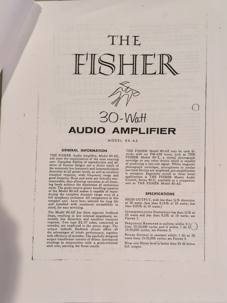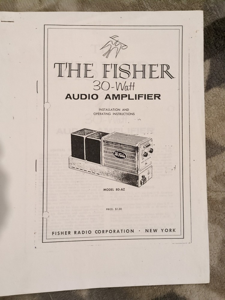 The product is a Service Manual Guide for a Fisher 80 AZ 30-watt Audio Amplifier. It is compatible with Fisher brand products and specifically designed for the model 80 amplifier. The manual is in English language and in physical format. This looks like a copy of the original instruction and operating instructions for the model 80-az audio amplifier 30 w by Fisher. Lots of other vintage electronics manuals also listed this week along with vintage electronics, military surplus, new and used car parts. New tools vintage toys 1800 items in my store most on sale 10% off this month for the new year.