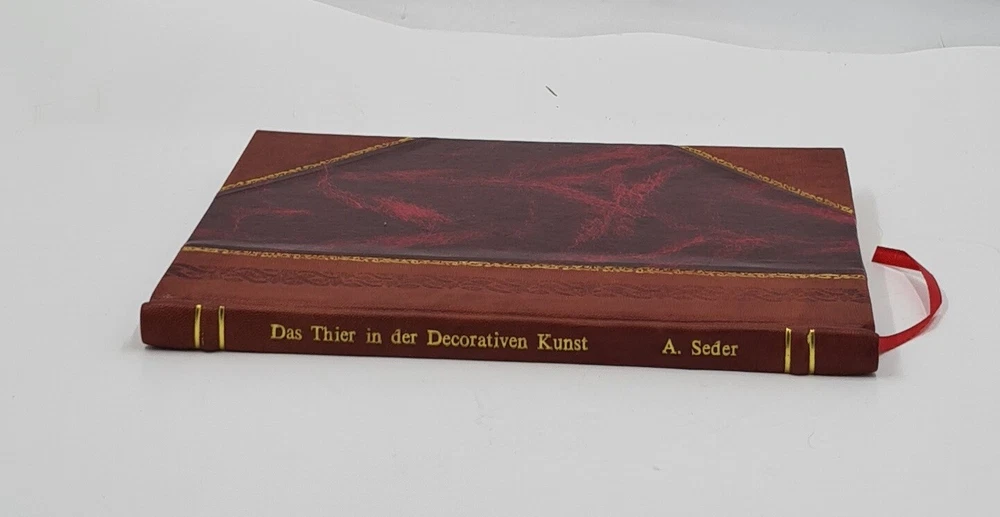 About the Book: Complete Title: Das Thier in der decorativen Kunst / von Prof. A. Seder. 1896 [Leather Bound] Author: Seder, Anton Edition: Reprinted by Gyan Books in 2022 with the help of original edition published long back [1896] . Language: German No. Of Pages: 65 Binding: HALF LEATHER binding features a leather spine and corners with the remaining cover in Raxine or Marble Paper. CHOOSE ANY LEATHER COLOR OF YOUR CHOICE WITHOUT ANY EXTRA CHARGES JUST CLICK ON IMAGES FOR OPTIONAL COLORS AND INFORM US YOUR CHOICE THROUGH MAIL WITH COLOR CODE. Customization Options Available Upon Request We provide 'Extra customization*' on request with additional charges. Please note that customization charges are applied in addition to the listed item (Book) price. Customization Extra Charges Sample Image FULL LEATHER BOUND WITH GILDED EDGES (ANY COLOR) USD 35 MULTI-COLOR LABELS (Spine) USD 12 PERSONALIZED IMAGE EMBOSSING ON THE FRONT COVER USD 40 FOLIO EDITION (12x18.5 inches) BIGGER SIZE Six times of the given price Points to note before booking order: SPECIAL DISCOUNT FOR BULK ORDERS PLEASE CONTACT US. UNIQUE LEATHER-BOUND Edition on Spine and Corners along with Golden Leaf Printing on Round Spine. This book is: Printed in Black & White (If a color edition is available you may request it by mail for a nominal charge.) Sewed binding for longer life Printed on high quality Natural Shade Acid Free Paper Professionally processed without changing its content Genuine Leather is being used for Binding Handcrafted Golden Leaf Printing. Round Spine Handmade Marble paper use for end paper Raise bands Bookmark Ribbon As these are old books each page is processed manually to make them readable. But in case some pages are blur or missing or have black spots the same are re-printed as it is to keep the authenticity of the book. In case of multi volume sets please note that the above listing is for a single volume only. (To order multiple volumes please contact us separately). We request you to understand that these leather-bound books are work of art and hence require time to go through different process to be the masterpieces that they are. We usually take 20 business days as handling time to dispatch shipment. We consider special request for a special occasion. Craftsman based in India prepared this book and shipped from different stock locations around the Globe. PRODUCT DISCLAIMER: Please be aware that because leather is a natural material slight discoloration or change in texture may be visible. ABOUT US GYAN BOOKS INTRODUCING A REMARKABLE LEATHER-BOUND EDITION, METICULOUSLY CRAFTED BY THE ESTEEMED INSTITUTION: RARE BIBLIO A UNIQUE LEATHER-BOUND BOOK FOR ELITE READERS/COLLECTORS OF OLD RARE AND BESTSELLING BOOKS. An ORIGINAL LEATHER is being used for Binding this Book on SPINE AND CORNERS along with GOLDEN LEAF PRINTING {Half Leather}. We deal into reprinting of the masterpieces crafted by authors around the world. We are proud to say that we have a collection of over 25 million books and our collection includes books that are as old as 200 years and hence are considered as RARE BOOKS. We are pioneer in this field having experience of 40 years. We also undertake printing and Leather Binding jobs of other books. Thesis printing and Leather Binding is one of our important services. Many publishers and authors approach us for their books to bind in our unique leather binding format for their special customers. Our craftsmen are active in this job since generations. Restoration of old books is our expertise. We are known by our Customization options. We have many leather color options in our bucket. The whole process is done manually so that it gives you the same feeling of old book.