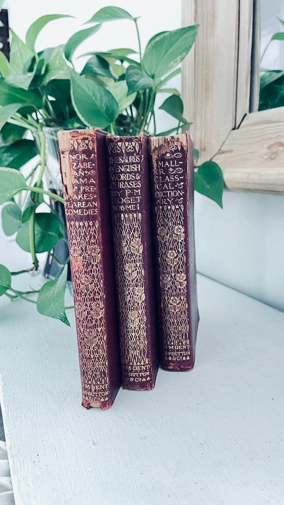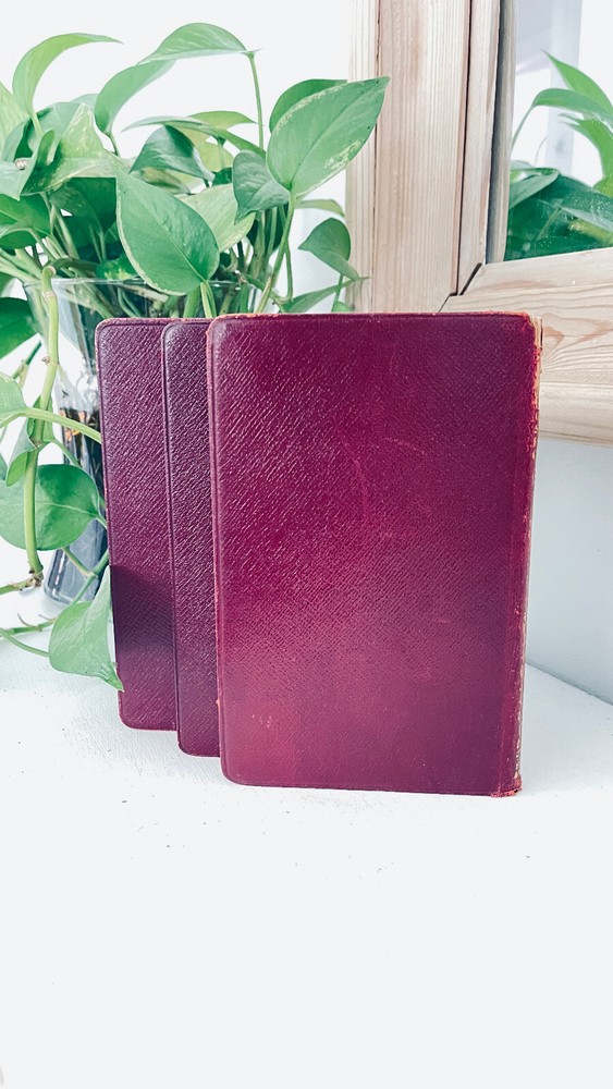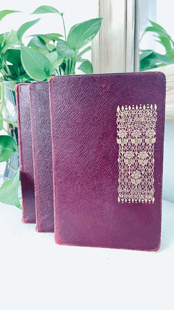 This set of three antique books, published by Rogers in 1910, is a must-have for any book collector. The decorative red leather cover, gilded with intricate details, adds a touch of elegance to any bookshelf. Don't miss your chance to own these rare and unique books. These books do show signs of wear to the covers and pages. This is a set of three.