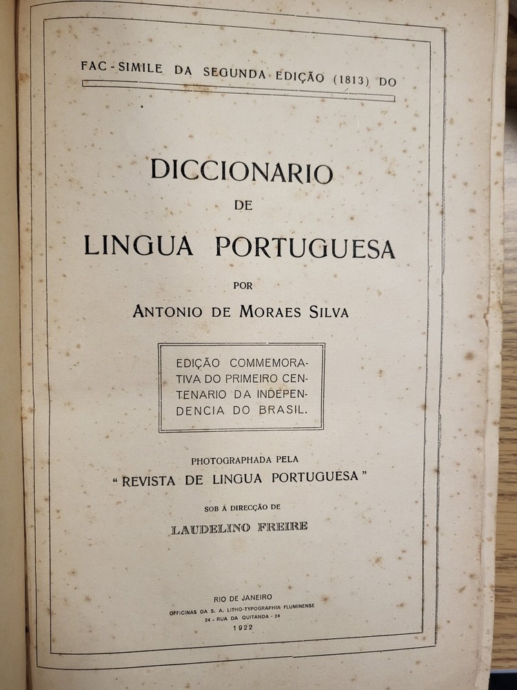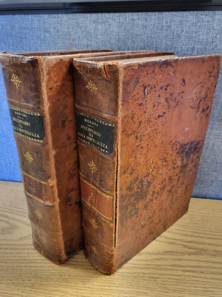 HGG Books presents ... Diccionario de Lingua Portuguesa rare large 2 volume leather set Author: Antonio de Moraes Silva Publisher: Litho-Typographia Fluminense Release Date: 1922 Seller Category: Language Qty Available: 1 Condition: Collectible: Good Sku: diccionariomoraes Notes: Diccionario de Lingua Portuguesa rare large 2 volume leather set by Antonio de Moraes Silva. Published in 1922 as a faithful facsimile of the rare 1813 edition.Pages show minor foxing, text block tightly bound, volumes 1 boards separated at spine from text block, wear to hinges and edges of full leather boardsCheck our other listings for rare Portuguese volumes from a noted local Brazilian scholar. Don't forget to check out other great deals in our eBay Store!!