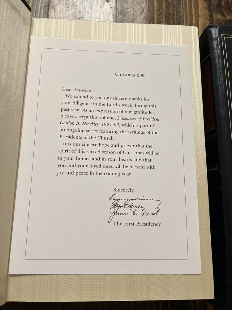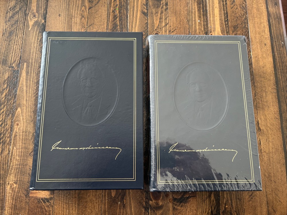 2 volume set LDS church employee leather editions from 2004 & 2005. Volume 1 is like new with no markings. Includes the First Presidency card. Volume 2 is new in shrink-wrap. Deluxe leather bindings with linen end sheets.