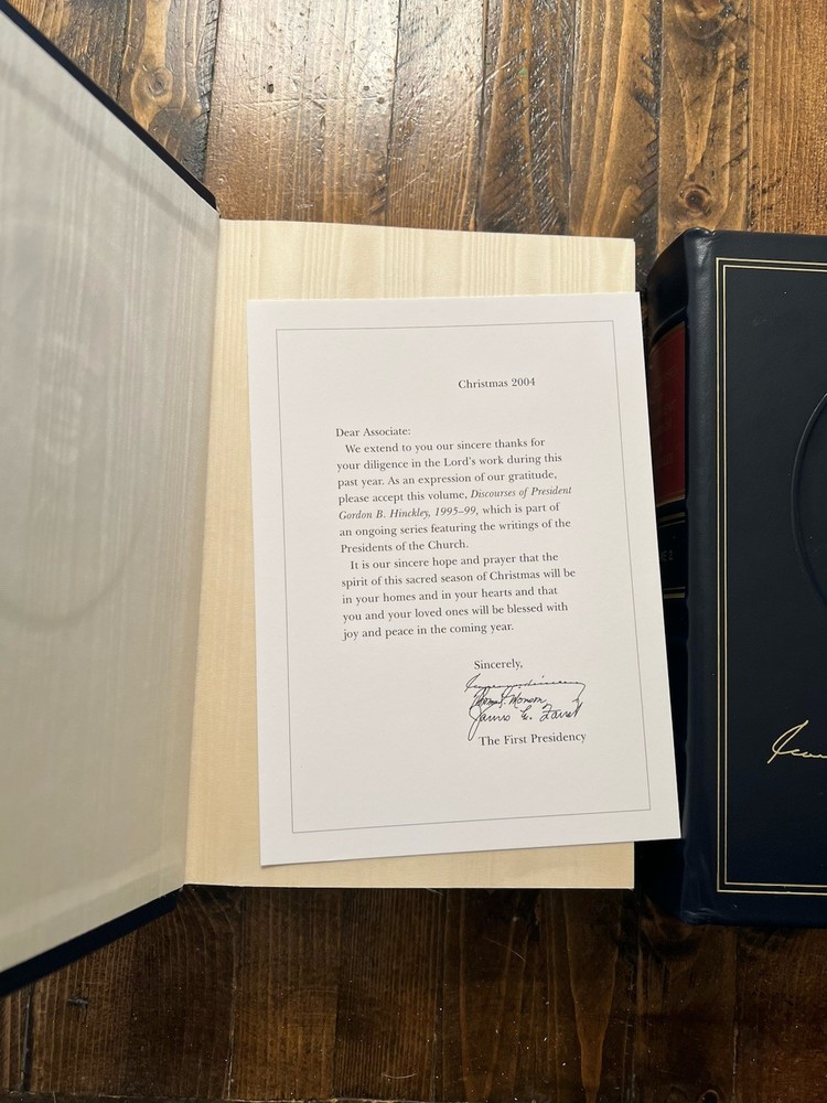 2 volume deluxe leather set. Like new with no markings. Volume 1 has the First Presidency card.