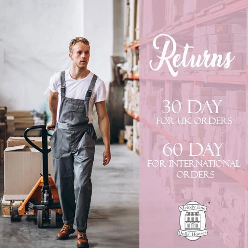Dollhouse Same Day Dispatch On All Items, if ordered before 2pm GMT. Home About us Shop by Category Shop by Category Dollhouses & Buildings Dollhouse Builders Merchant Dollhouse Furniture Dollhouse Accessories Dollhouse Lighting Dollhouse Home Decor Music Room Dollhouse People Dollhouse Pets & Animals Dollhouse Garden & Garage Dollhouse Special Occasions Dollhouse Western & War Dollhouse 1:24 Scale 1:48 Scale Miniatures The Lundby Collection Other feedback contact us Create your miniature dream our categories Dollhouses & Buildings Houses Shops & Basements Other Dollhouse Buildings Room Boxes Dollhouse Builders Merchant Doors Windows & Stairs Dolls House Doors Dollhouse Windows Staircases & Bannisters Dollhouse Balconies Dollhouse Roof Exterior Paper, Bricks & Stone Mouldings, Trims & Timber Dollhouse Hardware Knockers Letterboxes & Numbers Handles & Door Knobs Hinges Brads Nails & Screws Other Hardware Dollhouse Furniture Dollhouse Bathroom Furniture Bathroom Fixtures Other Bathroom Furniture Dollhouse Bedroom Furniture Dollhouse Bedroom Sets Dollhouse Beds Dollhouse Dressing Tables Dollhouse Chest of Drawers Dollhouse Bedside Nightstand Dollhouse Wardrobes Armoires Other Bedroom Furniture Dining Room Furniture Dining Furniture Sets Dining Tables, Chairs Dressers, Sideboards, Cabinets Other Dining Room Furniture Dollhouse Hall Furniture Dolls House Kitchen Furniture Kitchen Furniture Sets Dollhouse Kitchen Sinks Dollhouse Cookers Stoves Dollhouse Kitchen Units Dollhouse Fridge Freezers Dollhouse Laundry Furniture Other Kitchen Furniture Living Room Furniture Living Room Furniture Sets Dollhouse Sofas, Settees, Couches Dollhouse Armchairs Dollhouse Coffee & Side Tables Dollhouse Living Room Storage Other Living Room Furniture Dolls House Nursery Furniture Nursery Furniture Sets Dollhouse Cots, Cradles & Prams Other Nursery Furniture Dollhouse Study Furniture Dollhouse Study Furniture Sets Dollhouse Desks Dollhouse Office Chairs Dollhouse Bookcases & Shelf Units Other Study Furniture Dollhouse Store Furniture Dollhouse Accessories Dollhouse Bathroom Accessories Dollhouse Bedroom Accessories Dollhouse Hats & Umbrellas Dollhouse Shoes & Bags Ornaments & Accessories Dining Room Accessories Tableware & Dinnerware Glassware Cutlery & Candlesticks Other Dining Accessories Dollhouse Hall Accessories Dollhouse Kitchen Accessories Cleaning & Laundry Cookware & Utensils Food & Drink Storage Kettles & Small Appliances Other Kitchen Accessories Living Room Accessories Dollhouse Nursery Accessories Dollhouse Sewing Accessories Dollhouse Store Accessories Bakery & Confectionery Dollhouse Groceries Fruit & Vegetables Store Equipment Shopping Bags & Baskets Dollhouse Study Accessories Books, Magazines & Papers Dollhouse Desk Accessories Dollhouse School & Art Dollhouse Pub Accessories Dollhouse Food & Drink Dollhouse Medical Equipment Dollhouse Lighting Dollhouse Battery Lighting Battery Ceiling Lights Battery Wall Lights Battery Lamps Other Battery Lights Electric Lighting Electric Chandeliers Electric Wall Lights Electric Ceiling Lights Electric Lamps Electric Outdoor Garden Lights Electric Lighting Accessories Dollhouse Home Decor Wallpaper Soft Furnishings Dollhouse Curtains & Blinds Other Soft Furnishings Dollhouse Flooring Rugs & Mats Carpets & Stair Runners Tiles & Wooden Flooring Fireplaces & Fires Fireplaces & Surrounds Fires & Grates Fireplace Accessories Mirrors & Pictures Dollhouse Mirrors Empty Picture Frames Animal & Typography Pictures Portrait & People Pictures Landscape & Floral Pictures Miniature Posters & Signs Other Dollhouse Wall Art Clocks & Electronics Dollhouse Clocks Dollhouse Electronics Music Room Dollhouse People Dollhouse Families Dollhouse Men Dollhouse Women Dollhouse Babies & Children Dollhouse Pets & Animals Cats Dogs Other Animals Pet Accessories Dollhouse Garden & Garage Garden Furniture Flowers Plants & Pots Work Tools Sports & Games Landscaping Other Outdoor Items Dollhouse Special Occasions Dollhouse Halloween Dollhouse Christmas Dollhouse Place of Worship Dollhouse Western & War Dollhouse 1:24 Scale 1:24 People & Pets Building & Decorating Furniture & Accessories 1:48 Scale Miniatures The Lundby Collection Lundby House & Room Boxes Lundby Dolls & Pets Lundby Furniture & Accessories Lundby Lights & Electric Other Dollhouse Leather Engraved Cover Bound Books Country Store Shop Accessory These items are 1:12 Scale and come as a set of 6. These wonderful miniatures are a part of the Western Line Country Store collection and would be a perfect addition to any scene. These miniatures have been created using Leather and Paper. Each piece has been handmade by Mexican Craftsmen who are very dedicated to their work. Styles may vary on each piece. Approximate height of each book is 26mm = 1.1/32 inches. Ask Question Save Seller Description These items are 1:12 Scale and come as a set of 6. These wonderful miniatures are a part of the Western Line Country Store collection and would be a perfect addition to any scene. These miniatures have been created using Leather and Paper. Each piece has been handmade by Mexican Craftsmen who are very dedicated to their work. Styles may vary on each piece. Approximate height of each book is 26mm = 1.1/32 inches. Postage and Payments Make the most of our shipping discount where you will only pay one delivery charge, no matter how many items you order from Melody Jane Dolls Houses. Same-day dispatch from the United Kingdom. Tracking details will be available on your order in your eBay purchase history. Our aim is to pick and pack your order securely and get it to you as quickly as possible wherever you are in the world. Customer Reviews Erika I use MJ regularly- highly recommend Excellent service, great products. Great packaging. Quick delivery. I shop with melody jane a lot. Mrs Lin Cook Great dolls house addition Lovely items as usual from this seller, fits perfectly into my dolls house project. Linda Liston Items were just as shown.Excellen