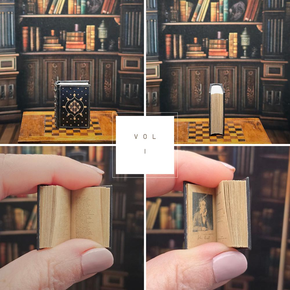 Dollhouse Miniature 5-Vol Poetry English Romantic Leather Bound Book Set Artisan Magpie Miniatures is known for showcasing collections of one-of-a-kind handcrafted dollhouse miniatures, carefully curated over many decades by collectors who truly LOVED miniatures. Each find a tiny masterpiece created by talented artisans from around the world. This is a five volume set (Volumes 1-5) entitled "The Poetical Works of John Keats," which is a collection of poetry produced by the English Romantic poet, John Keats. These are hand-bound books, a truly unique and special set for your miniature library. The former owner, Madame Y, discovered this bookmaker in Japan. Although she was allowed to buy her little masterpieces, the creator would not release her name and prefers to be anonymous, though each one is made with the most impeccable details as perfectly scaled replicas of actual RARE antique books and manuscripts, including the most incredible details such as foxing page by page as they appear in the life size version. This 5-Volume set is leather bound with an elegant designs on their gold gilt covers, molded spines, readable (by magnifying glass) pages and fanciful black and white illustrations and decorations. All the original books she created these replicas from, are no longer in publication, and went out of print long ago. Even her books arrive in an unmarked box, no name. It reminds me of the movie, The Miniaturist, the artist in this movie did not reveal her name either.These are truly the best made books in miniature dollhouse size I have ever come across. I have sold more than 10,000 books in my miniature career. The interior paper is lovely and feels handmade, just truly extraordinary. This book set has never been displayed. *This listing includes the VOL. 1-5 of The Poetical Works of John Keats, as described. Any other items are not included and are displayed for scale only.* Measurements: 1:12 scale, 1" tall ATTENTION COLLECTORS Do you have a miniature collection that you'd like to sell? I buy 2-3 collections each year, I pay more than fair price as I appreciate all of the time, money and energy that you had in building your collection. Please contact me for further information. I can pay cash, pack and pick up from anywhere in the country. - Rebecca Selling Vintage and Antique Disclaimer I sell Vintage and Antique items, typically they come with dust, scratches, bumps, bruises and the like (aka, they are not perfect but always still fabulous). I do not claim, nor am I an expert on most things I list however, I do my best to accurately describe each and every item. If I have missed something important or have made an error in a listing, please contact me as the more information the better. If you purchase something from me, please pay on time or contact me prior to the listing ending so we can make arrangements. I do my best to pack everything as if it were my own, but if during the postal ride it is broken or it is not as described, please contact me so we can figure out what to do to make us 'both' happy. Leaving a negative feedback before attempting to let me know what's wrong is 'not' kind. I work very hard to find, list and expertly ship each item...I treat customers the way I would like to be treated, please to the same in return.