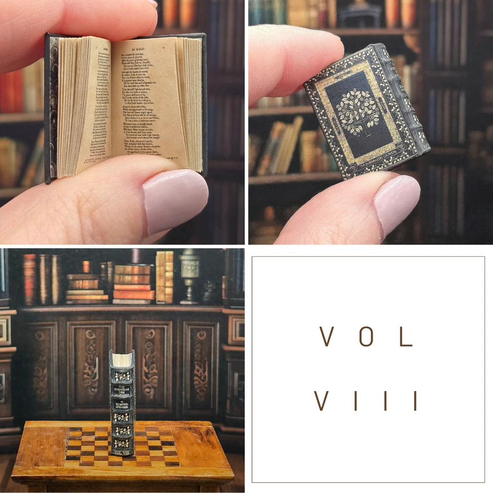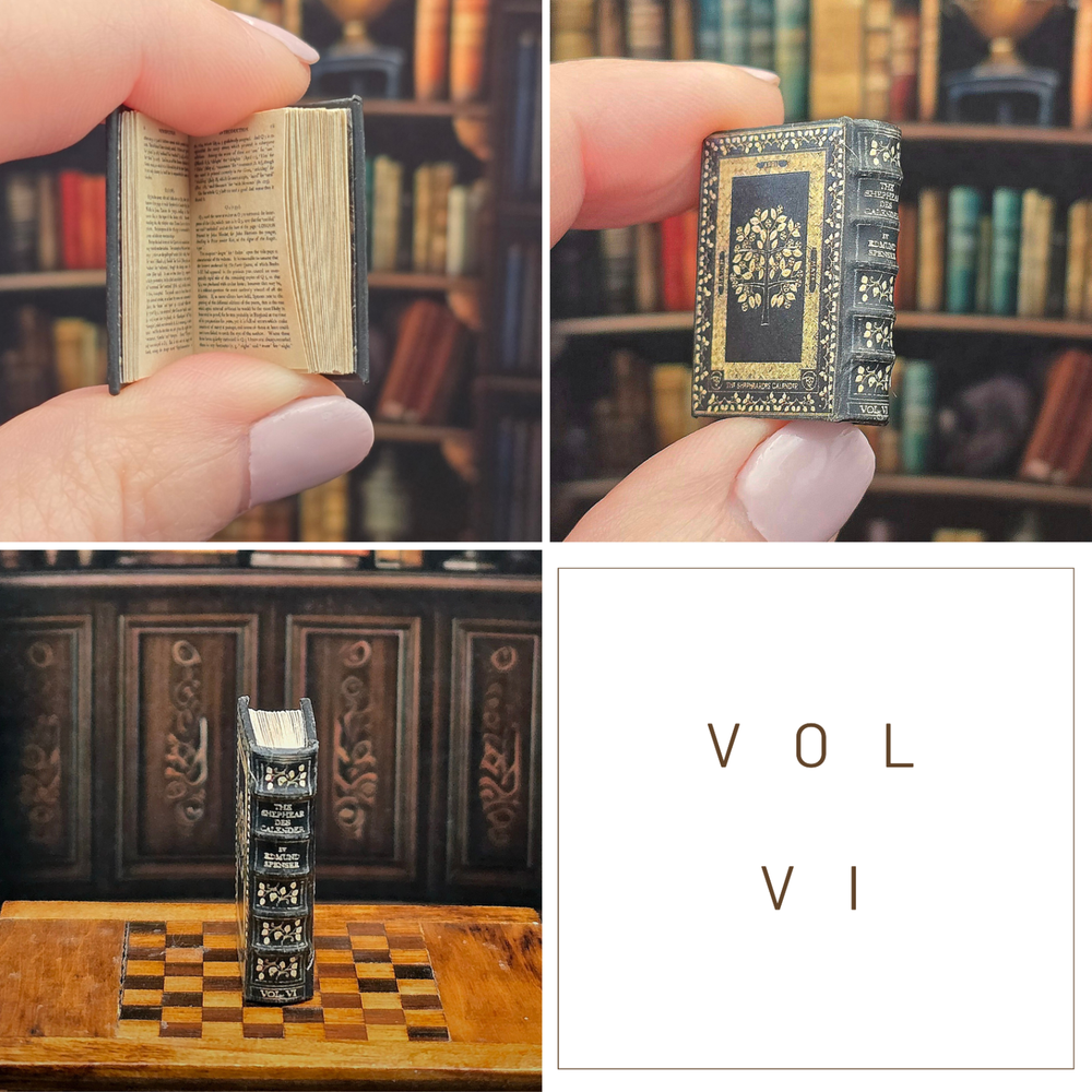 Dollhouse Miniature 5-Volume English Poetry Leather Bound Book Set Artisan RARE Magpie Miniatures is known for showcasing collections of one-of-a-kind handcrafted dollhouse miniatures, carefully curated over many decades by collectors who truly LOVED miniatures. Each find a tiny masterpiece created by talented artisans from around the world. This is a five volume set (Volumes 6-10) entitled The Shepheardes Calender, Edmund Spenser's first published work, appearing in 1579, which is a collection of poems for each month of the year. These are hand-bound books, a truly unique and special set for your miniature library. The former owner, Madame Y, discovered this bookmaker in Japan. Although she was allowed to buy her little masterpieces, the creator would not release her name and prefers to be anonymous, though each one is made with the most impeccable details as perfectly scaled replicas of actual RARE antique books and manuscripts, including the most incredible details such as foxing page by page as they appear in the life size version. This 5-Volume set is leather bound with an elegant gold gilt covers, features a tree motif, molded spines, readable (by magnifying glass) pages and fanciful black and white illustrations and decorations. All the original books she created these replicas from, are no longer in publication, and went out of print long ago. Even her books arrive in an unmarked box, no name. It reminds me of the movie, The Miniaturist, the artist in this movie did not reveal her name either.These are truly the best made books in miniature dollhouse size I have ever come across. I have sold more than 10,000 books in my miniature career. The interior paper is lovely and feels handmade, just truly extraordinary. This book set has never been displayed. *This listing includes the VOL. 6-10 of The Shepheardes Calender, as described. Any other items are not included and are displayed for scale only.* Measurements: 1:12 scale, 1" tall ATTENTION COLLECTORS Do you have a miniature collection that you'd like to sell? I buy 2-3 collections each year, I pay more than fair price as I appreciate all of the time, money and energy that you had in building your collection. Please contact me for further information. I can pay cash, pack and pick up from anywhere in the country. - Rebecca Selling Vintage and Antique Disclaimer I sell Vintage and Antique items, typically they come with dust, scratches, bumps, bruises and the like (aka, they are not perfect but always still fabulous). I do not claim, nor am I an expert on most things I list however, I do my best to accurately describe each and every item. If I have missed something important or have made an error in a listing, please contact me as the more information the better. If you purchase something from me, please pay on time or contact me prior to the listing ending so we can make arrangements. I do my best to pack everything as if it were my own, but if during the postal ride it is broken or it is not as described, please contact me so we can figure out what to do to make us 'both' happy. Leaving a negative feedback before attempting to let me know what's wrong is 'not' kind. I work very hard to find, list and expertly ship each item...I treat customers the way I would like to be treated, please to the same in return.
