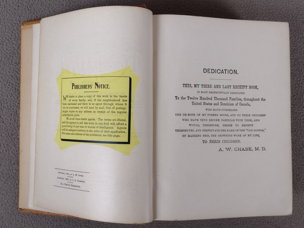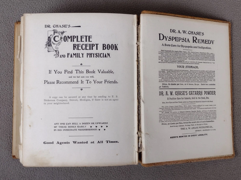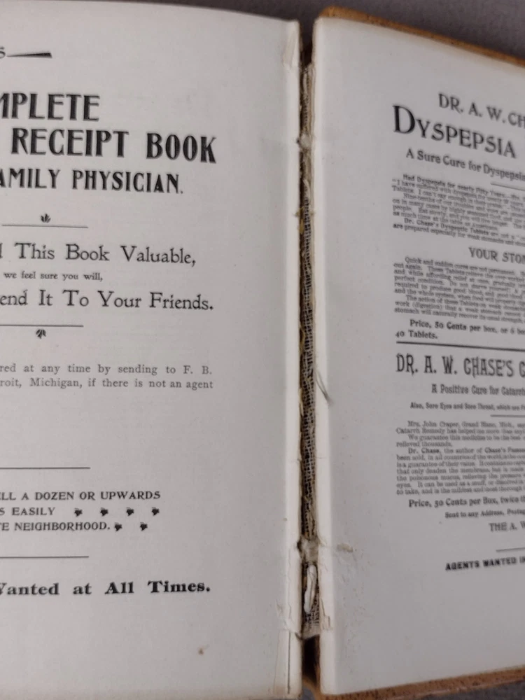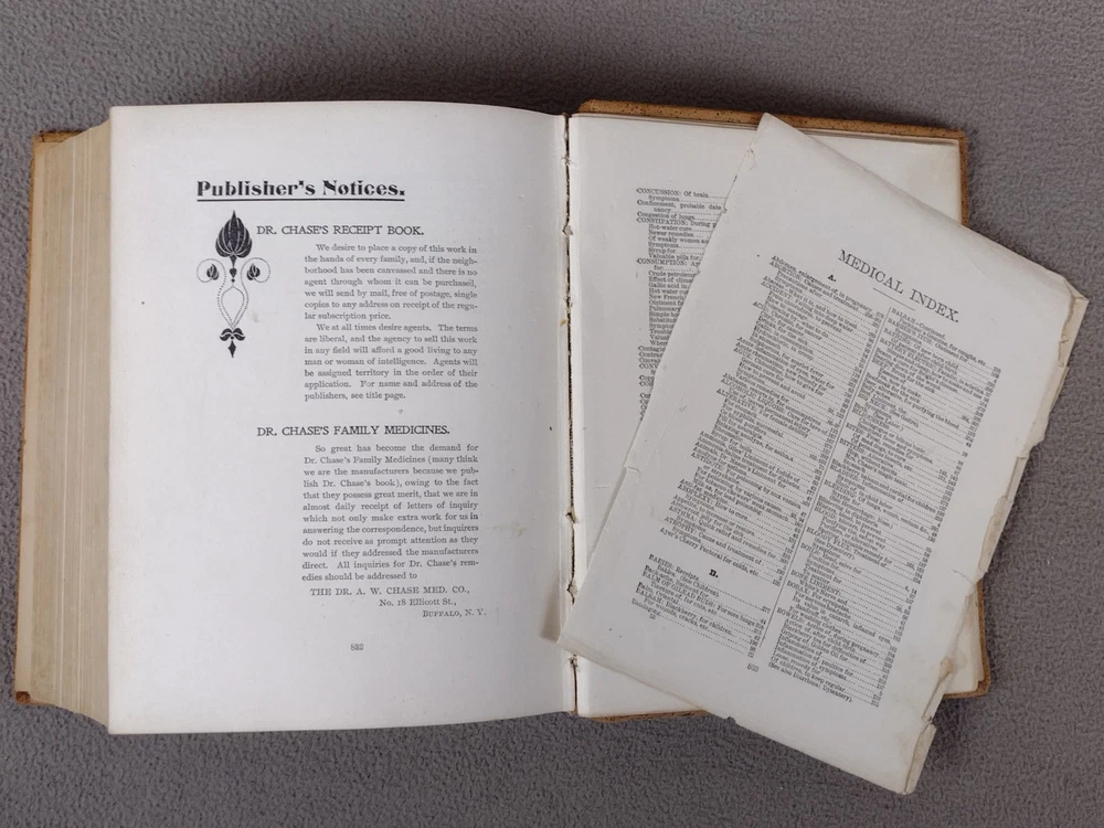 Dr Chase's Receipt Book and Household Physician Memorial Edition 1899 Hardcover. Acceptable used condition. The first and last few pages have seperated from binding. Page 833 has detached. Spine is still solid. See pictures. Thanks for stopping by If you have any problems with your order don't hesitate to contact me via eBay messenger with any questions or concerns. I aim to please!!! Shipping Policies Great care is taken when packaging every item to ensure safe & quality shipping. Shipping is either through USPS or UPS depending on your location and at our discretion. Most shipments are sent out within 1-2 business day after payment is confirmed or cleared, unless stated otherwise in the listing. Please make sure to provide the correct shipping address when placing your order, orders can only be shipped out to the confirmed shipping address provided by eBay. Packages are not shipped on Sunday. As transit time varies by carrier, I'm unable to control delays caused by carriers. Shipping time provided by eBay is an estimation and is not guaranteed. Subject to change during peak periods. Buyers are responsible for complying with all import and export obligations and for payment of all applicable duties and custom fees. Return Policies Items must be returned in the original manufacturer's packaging if applicable. I strongly recommend you keeping packaging for at least the first 30 days after purchase. I offer a 30 day return policy on all items. (unless stated) All returns must be in original condition and must include the original packaging and content intact. New factory sealed items must be returned in unopened condition or face a 50% restocking fee. Returns must be packed in proper packaging to avoid damage to the item or its original packaging. Please allow 3-5 business days after I receive your package to process your return. Any returns that violate this return policy will not be accepted and will be sent back at the customer's expense. Products I work hard to include several pictures of each item. I do my best to describe the items and their conditions. Please see item photos for all the details.