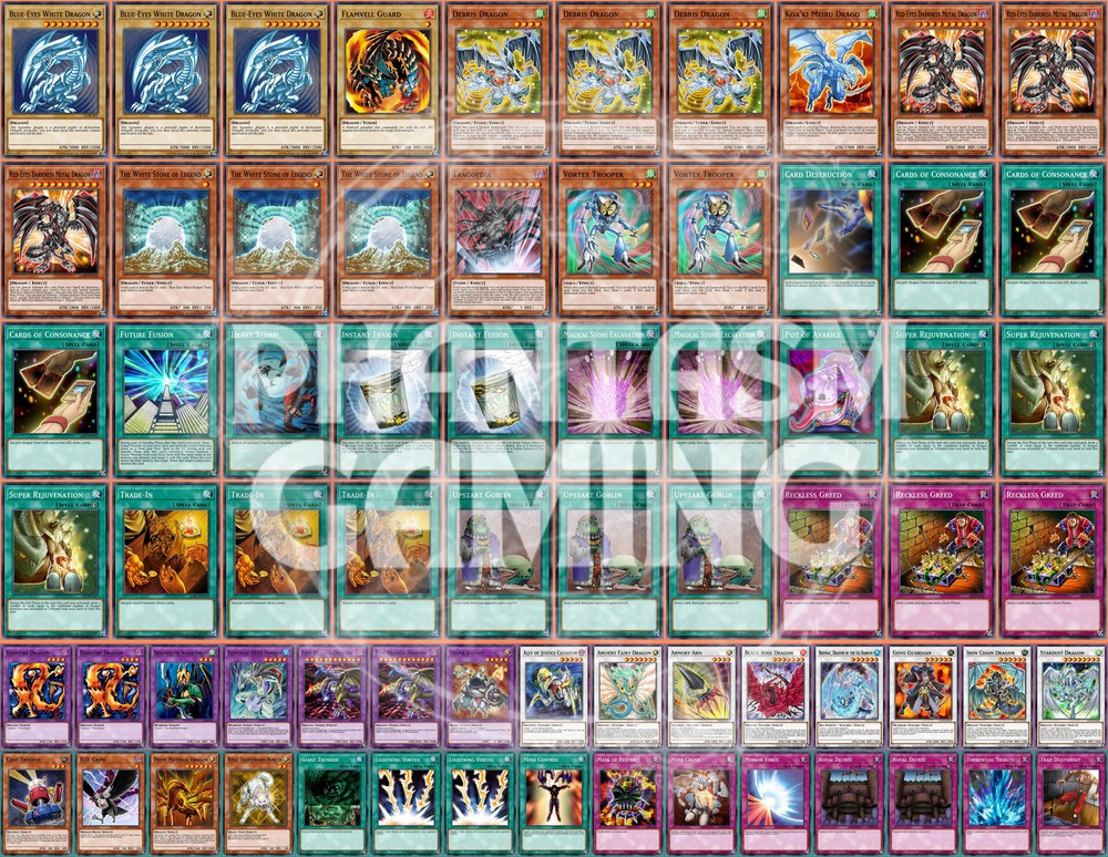 Deck Name: Dragons (A) (Edison) # Main Deck (40) 3 - Blue-Eyes White Dragon 1 - Flamvell Guard 3 - Debris Dragon 1 - Koa'ki Meiru Drago 3 - Red-Eyes Darkness Metal Dragon 3 - The White Stone of Legend 1 - Tragoedia 2 - Vortex Trooper 1 - Card Destruction 3 - Cards of Consonance 1 - Future Fusion 1 - Heavy Storm 2 - Instant Fusion 2 - Magical Stone Excavation 1 - Pot of Avarice 3 - Super Rejuvenation 3 - Trade-In 3 - Upstart Goblin 3 - Reckless Greed # Extra Deck (15) 2 - Darkfire Dragon 1 - Dragoness the Wicked Knight 1 - Elemental HERO Mariner 2 - Five-Headed Dragon 1 - Ojama Knight 1 - Ally of Justice Catastor 1 - Ancient Fairy Dragon 1 - Armory Arm 1 - Black Rose Dragon 1 - Brionac, Dragon of the Ice Barrier 1 - Goyo Guardian 1 - Iron Chain Dragon 1 - Stardust Dragon # Side Deck (15) 1 - Card Trooper 1 - D.D. Crow 1 - Prime Material Dragon 1 - Ryko, Lightsworn Hunter 1 - Giant Trunade 2 - Lightning Vortex 1 - Mind Control 1 - Mask of Restrict 1 - Mind Crush 1 - Mirror Force 2 - Royal Decree 1 - Torrential Tribute 1 - Trap Dustshoot You will receive all of the following cards listed above. Most cards will will be in near mint condition. In the case of certain older cards we will do our best but some cards may be light or even moderatly played in extreme condtions. Those conditions being the card has not been reprinted in a number of years and con no longer be easily purchased in light or near mint condition. Set, Rarity, and Edition will vary and cannot be special requested. These lists are constructed with least expensive rarities we have available in stock. All cards are play legal copies. Note: If purchasing a Yugioh Deck all Speed duel cards are 100% legal at all levels of play. Store Policies Here at PMG_LLC , we pride ourselves on having the best customer service around. If you have any questions or can't seem to find something that you want please do not hesitate to contact us. We will do our best to respond to all questions within one business day. Hours of Operation: Monday-Friday: 2:30pm - 10:00pm Saturday- 10:00am - 8:00pm Sunday 11:00am - 5:30pm Note: We are closed all national holidays. Info: Thank you for choosing PMG_LLC . We appreciate your business. We ship Monday through Friday to make sure you get your deck as quickly as possible. All orders priority orders can use combined shipping. In order to use the combined shipping your whole purchase needs to be checked out as one order. We ship once we have received your payment and payment has cleared. As always if you have any questions or concerns please feel free to contact us via email. Shipping Information: We ship Monday through Friday, barring national holidays during which the United States Postal Service is closed. If you purchase a card on Friday or Saturday please bear in mind it will not ship until Monday. US Shipping: First Class Mail : Free. Comes with tracking information. Priority Mail with Delivery Confirmation : $9.99 All orders are shipped in appropriate protective material inside bubble mailers. International Shipping: We do not offer international Shipping Return Policy: You must return items sold and fulfilled by PMG_LLC within 30 days of delivery to be eligible for a refund. Returns which are damaged in the mail due to improper return packaging will receive partial refunds. We will process a full refund for all items returned in their original condition. In order for us to process your full refund you must include the full name associated with the order as well as the eBay order number inside the return packaging. We will not process returns which do not include the buyer's name and order number. Requirements: Please return items with the original plastic packaging. Failure to do so may result in a partial refund. Also you must inform us of any returns you may wish to process before sending them back. Any items simply send back to us without prior contact will not be eligible for refunds. Important Notes Remember that to benefit from our domestic combined shipping on priority orders you must to pay in a single payment. If you place two separate priority orders you will be charged the $7.50 shipping fee for both orders. If you place multiple orders for Priority shipping you will be charged the corresponding shipping costs for each order, even if you place the orders on the same day. We do not refund shipping costs as we tend to package orders throughout the day and may not notice that you would otherwise have qualified for combined shipping. We want to provide you with 5 Star service and earn your Positive Feedback, so if for any reason you are not happy with your transaction, contact us before leaving feedback. Business Day - Our business day runs from Monday to Friday from 9am to 4pm, excluding US national holidays. Any orders placed or payments cleared less than 4 hours before the close of business will be considered orders from the following business day.