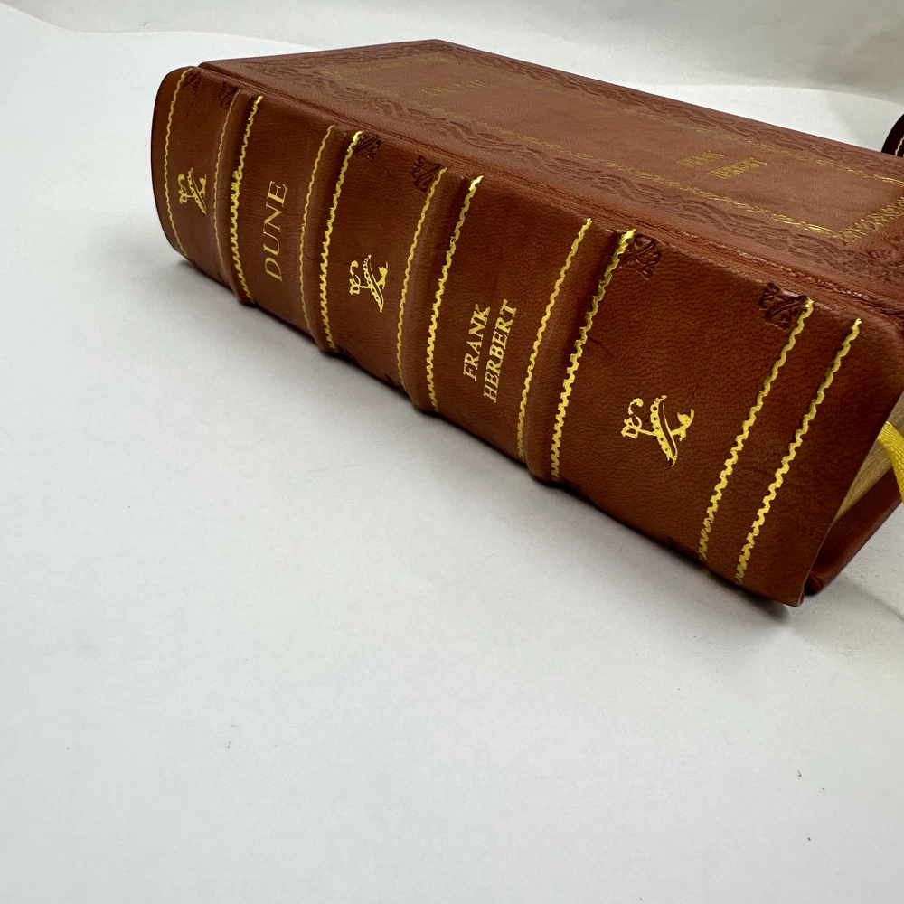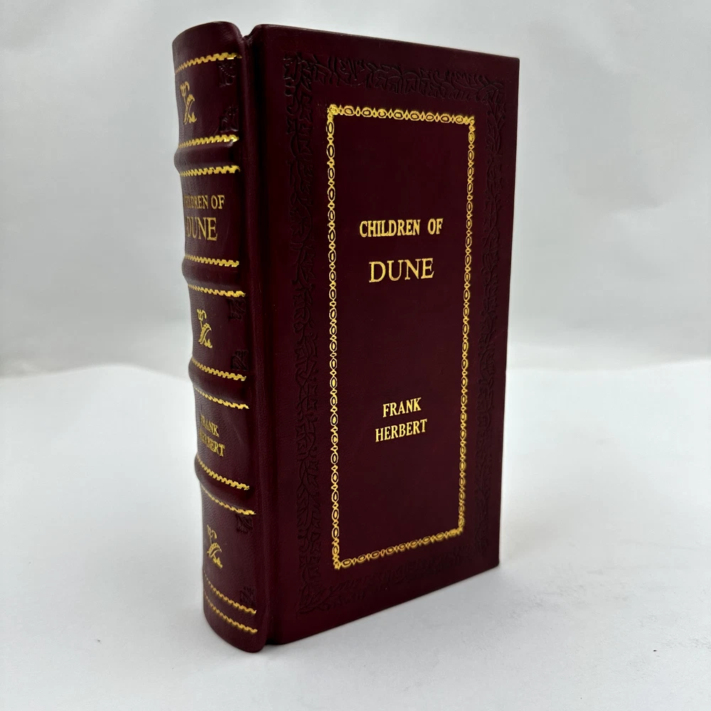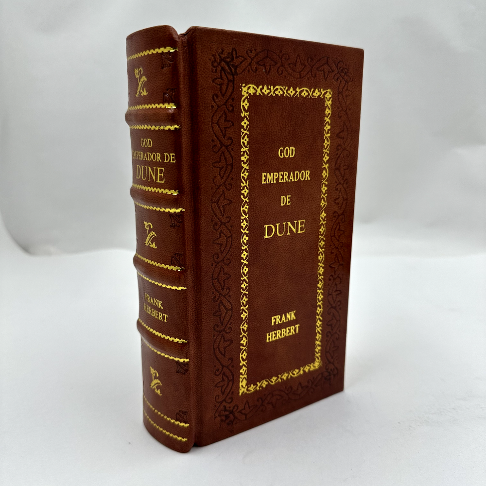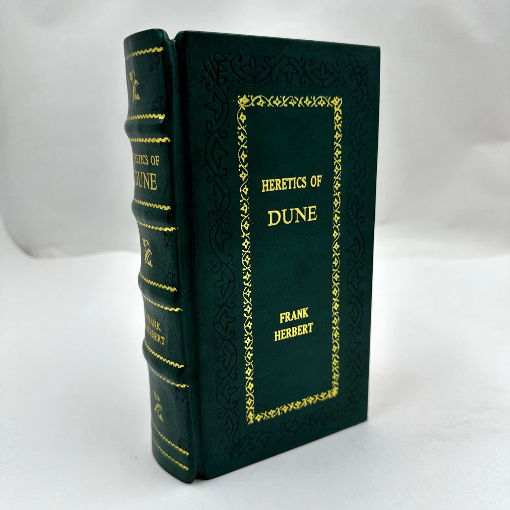 GYAN BOOKS INTRODUCING A REMARKABLE LEATHER-BOUND EDITION, METICULOUSLY CRAFTED BY THE ESTEEMED INSTITUTION " RARE BIBLIO". This title holds the distinction of being a Bestseller, highly praised by readers across the GLOBE. We are thrilled to present this literary gem exclusively to our elite readers, meticulously encased in our one-of-a-kind Premium Leather Binding . Following your order, we purchase the book from the original publisher/distributor and embark on the process of rebinding to elevate this book to a Luxurious Reading Style. A UNIQUE LEATHER-BOUND BOOK FOR ELITE READERS/COLLECTORS OF OLD RARE AND BESTSELLING BOOKS. For the Binding, we use GENUINE LEATHER , graced with opulent GOLDEN LEAF DETAILING on the SPINE , FRONT COVER , AND BACK COVER , ADDED BY EDGE GILDING . ABOUT US ★ We deal into reprinting of the master pieces crafted by authors around the world. ★ We are proud to say that we have a collection of over 25 million books and our collection includes books that are as old as 200 years and hence are considered as RARE BOOKS. ★ We are pioneer in this field having experience of 40 years. ★ We also undertake printing and Leather Binding jobs of other books. ★ Thesis printing and Leather Binding is one of our important Service ★ Many publishers and author approach us for their books to bind in our Unique leather binding format for their special customers. ★ Our craftsmen are active in this job since generations. ★ Restoration of old books is our expertise ★ We are known by our Customization options. ★ We have many leather color options in our bucket. ★ The whole process is done manually so that it gives you the same feeling of old book. OFFERS & SPECIALIZATION: ★ SPECIAL DISCOUNT FOR BULK ORDERS, PLEASE CONTACT US. ★ CHOOSE ANY LEATHER COLOR OF YOUR CHOICE WITHOUT ANY EXTRA CHARGES, JUST CLICK ON IMAGES FOR OPTIONAL COLORS AND INFORM US YOUR CHOICE THROUGH MAIL WITH COLOR CODE. ★ WE OFFER A DIVERSE RANGE OF LEATHER COLORS, INCLUDING RED , GREEN , BLUE , BLACK, MAGENTA , YELLOW , TAN . WE ALSO OFFER MULTI-COLOR LABELS WITH THESE BEAUTIFUL BOOKS ON SPECIAL REQUEST. ★ AN ORIGINAL LEATHER IS BEING USED FOR BINDING THIS BOOK WITH GOLDEN LEAF PRINTING AND DESIGNING ON SPINE, FRONT AND BACK OF THE BOOK WITH EDGE GILDING . Points to note before booking order: ★ In case of multi volume sets, please note that the above listing is for a single volume only. (To order multiple volumes, please contact us separately). ★ We urge you to appreciate that our Leather-Bound Books are Genuine works of art and are Handcrafted by our Professional Craftsmen. Thus, requiring time and care to reach the pinnacle of excellence. ★ We Prepare the Book after receiving the Order. ★ We request you to understand that these leather-bound books are work of art and hence require time to go through different process to be the master pieces that they are. ★ We usually take 40 business days as handling time to dispatch shipment. We consider special request for a special occasion. ★ Craftsman based in India, prepared this book and shipped from different stock locations around the Globe. Product Details: - ★ Complete Title: Dune Series 6 Books Collection Set By Frank Herbert (Dune, Dune Messiah,God Emperor Of Dune, Heretics of Dune, Chapter House Dune, Children Of Dune) [Premium Leather Bound] ★ Author: Frank Herbert ★ Language: English ★ No. Of Pages: 2752 ★ Year: 2021 ★ We provide ?Extra customization*? on request with additional charges. ★ We also undertake printing and Leather Binding of all the books. ★ Product Disclaimer: Please be aware that because leather is a natural material, slight discoloration or change in texture may be visible. About the Book: - Dune Series: 6-Book Collection Set by Frank Herbert – Immerse yourself in the epic sci-fi masterpiece that redefined the genre. This complete set includes all six novels in the legendary Dune series, following the rise and fall of empires, complex characters, and the struggle for control over the desert planet Arrakis. A must-have for any science fiction fan or collector!