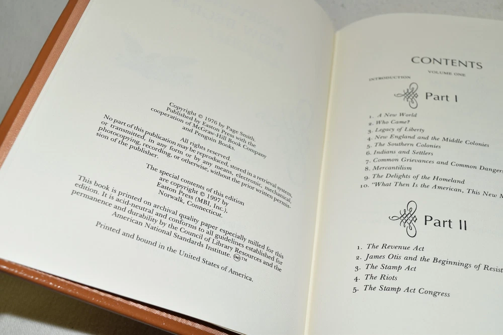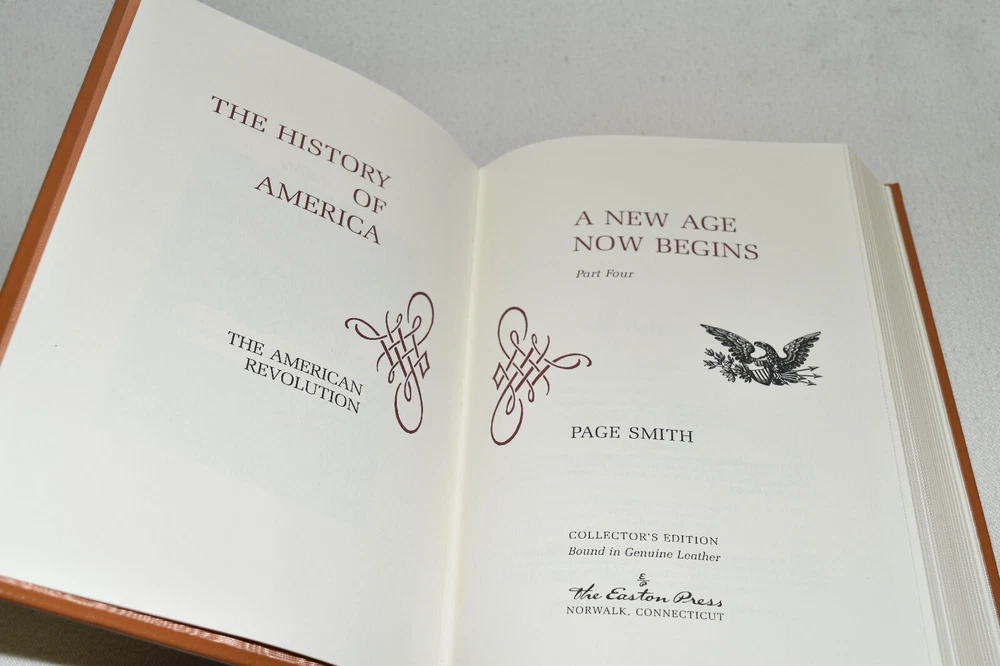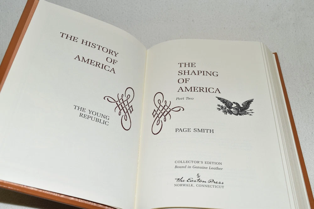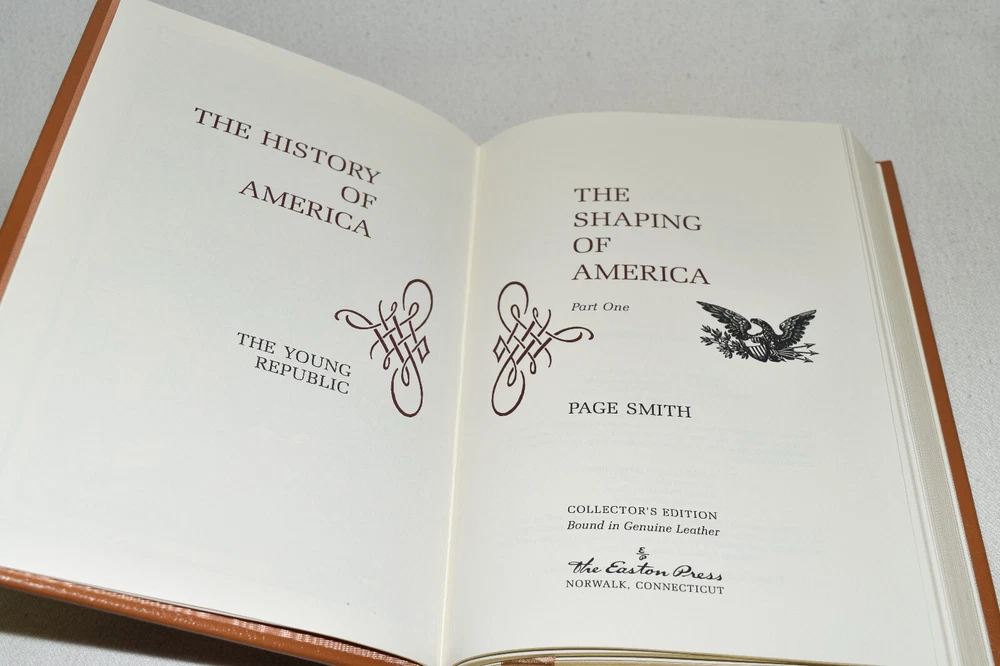 From the Easton Press Collection... The History of America by Page Smith Complete Sixteen (16) Volume Matching Set Copyright 1997 by The Easton Press Bound in Premium Full Leather This set contains all of the classic Easton Press trimmings: Premium Leather Silk Moire Endleaves Distinctive Cover Design Hubbed Spine, Accented in Real 22KT Gold Satin Ribbon Page Marker Gilded Page Edges Long-lasting, High Quality Acid-neutral Paper Smyth-sewn Pages for Strength and Durability Beautiful Illustrations A very scarce set in any condition, this set is in Fine condition. The front in back covers are in terrific condition and the gilded page edges show minor wear (see pictures of all gilt edges). There are blank bookplates affixed to the second page of each book. This set is published by Easton Press and would be a beautiful addition to your Easton Press collection. Hopefully you can add this set to your collection and enjoy it in the years to come... Please Email Me With Any Questions You Might Have! Shipping Info: Buyer to Pay Shipping and Handling International Bidders Pay Extra Shipping Seller Not Responsible For Uninsured Items Lost or Damaged in Mail Good luck and happy bidding!