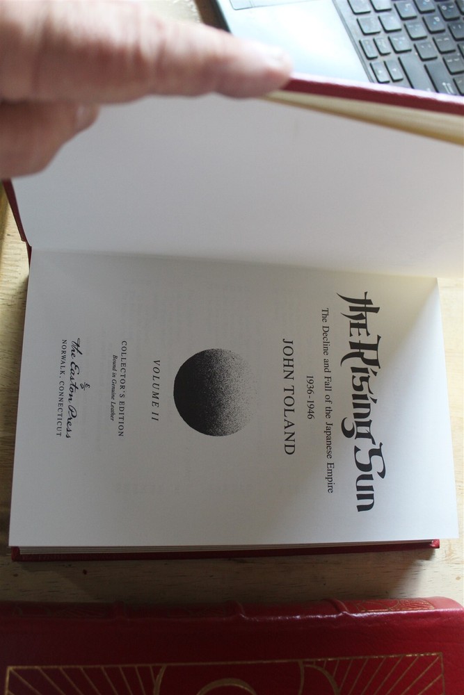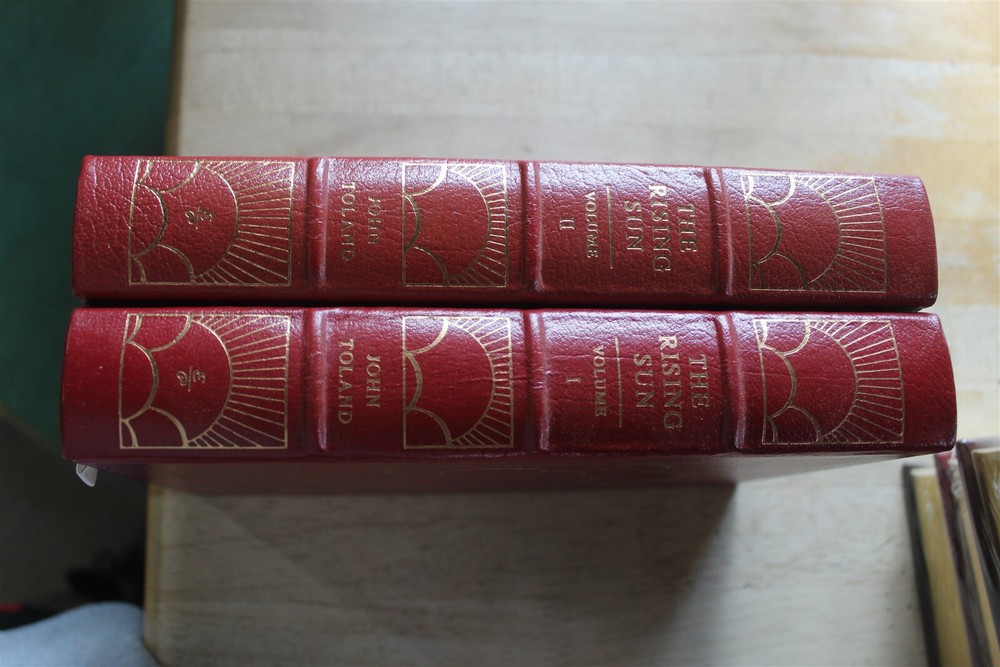 COLLECTABLES FROM VANGUARD COLLECTABLES ITEM DESCRIPTION EASTON PRESS THE RISING SUN JOHN TOLAND 2 VOLUME SET 1990 LEATHER COLLECTORS ED BOOK IN EXCELLENT CONDITION. SEE PICS. SEE PIC FOR CONDITION . PHOTOS ARE OF THE ACTUAL ITEM YOU WILL RECEIVE. SEE PICS. . PAYMENT EBAY PAYMENTS Local pickup on arrangement SHIPPING USA – $5.50 MEDIA MAIL FOREIGN – NO FOREIGN SHIPPING ON BOOKS. THANK YOU, STEVE VANGUARD COLLECTABLES BELLFLOWER, CALIFORNIA 90706 Powered by SixBit's eCommerce Solution