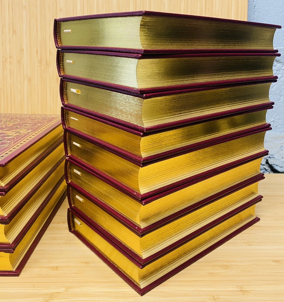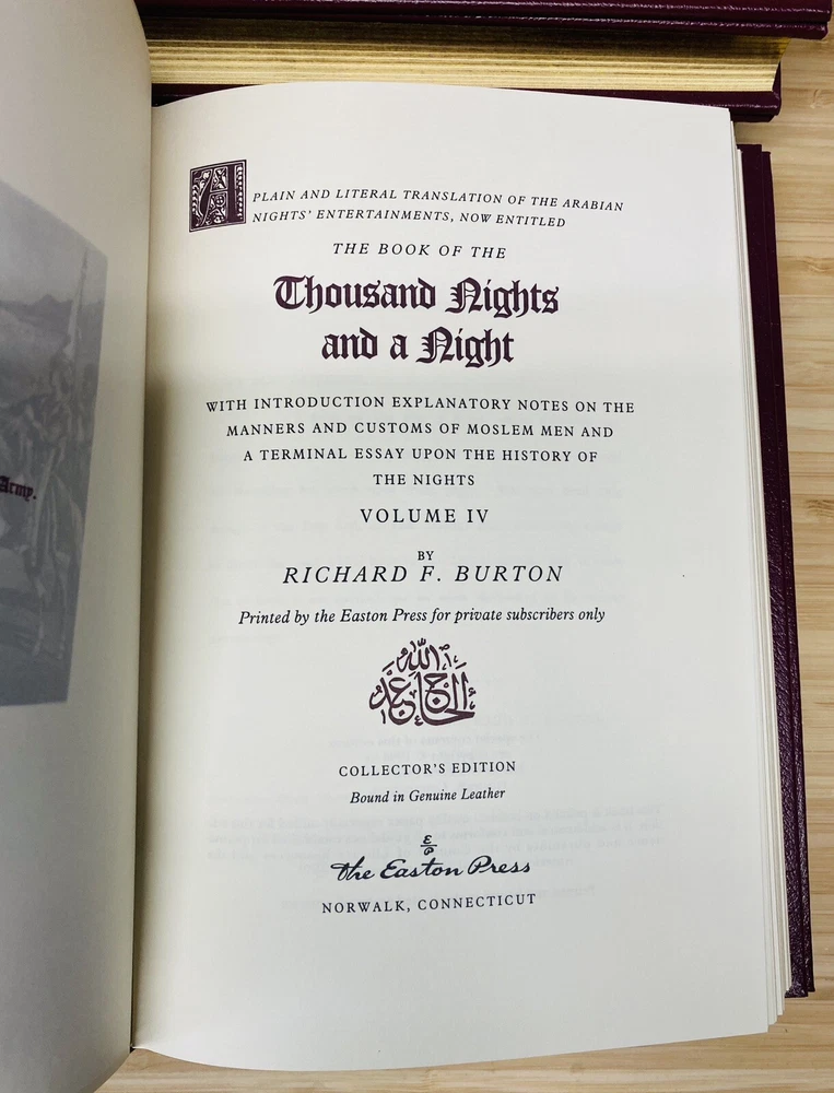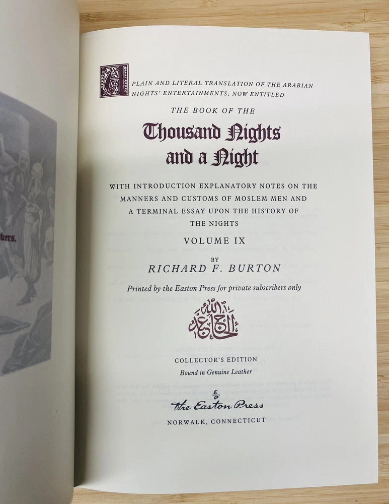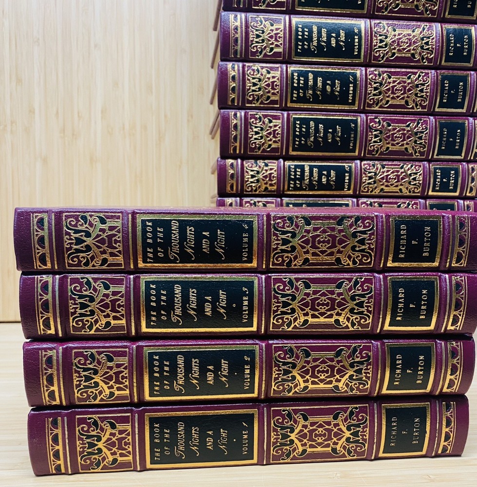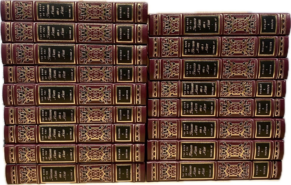 This 17 volume complete set of "Thousand Nights & A Night" is a must-have for any collector of classics. The leather binding and special collector's edition make it a truly unique and valuable addition to any collection. Written by Richard F. Burton and published by Easton Press in 1994, this original edition is a true gem for literature & fiction enthusiasts. The English language and facsimile printing make it an accessible read for anyone, while the intricate details and beautiful bindings add to its overall charm. Whether you're an avid collector or simply looking for a special addition to your bookshelf, this complete set is sure to impress. All 17 books in this complete set are in VG+ condition all appear to be unread with tight bindings and hinges. The previous owner affixed a book plate inside the front cover of each volume.