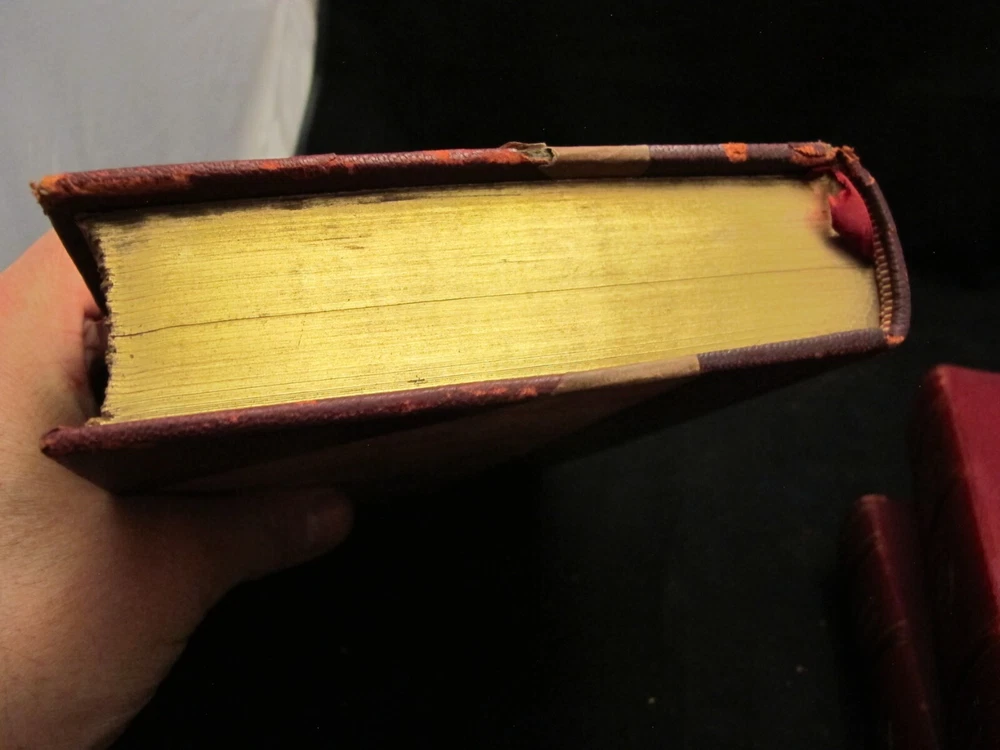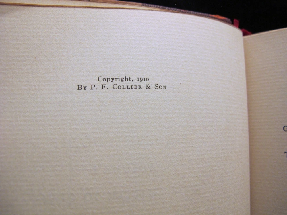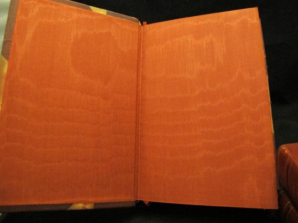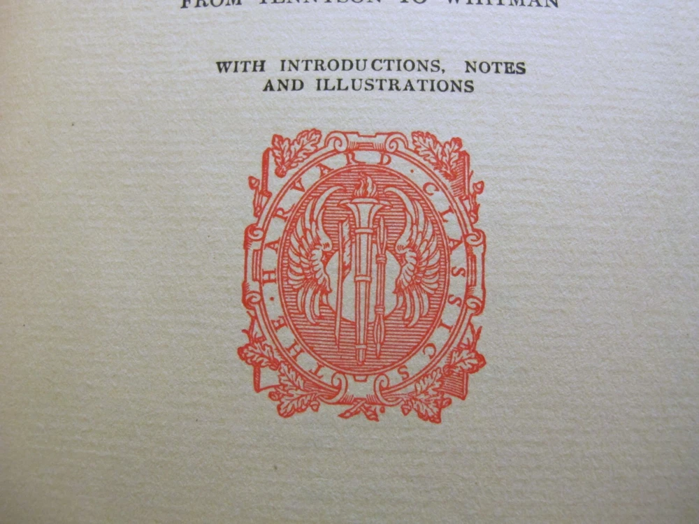 Red, three-quarter, leather bound, hardcovers. Decorated with gilt titles and the Harvard university seal on the spines, gilt page top edge and sewn-in silk bookmarks. Pages watermarked 'Eliot'. End papers are Moire fabric. Illustrated with full page engraved plates with tissue guards. Set is complete in itself, from a larger work, The Harvard Classics. Volume titles: 1. Chaucer to Gray 2. Collins to Fitzgerald 3. Tennyson to Whitman Cambridge edition, in deluxe, polished calf, bindings. Very good condition; rubbing on top edges and some corners, and a few small rubbed areas on the spines. Covers all firmly attached; bindings tight and square, pages clean and bright white. Interiors appear unread, with some pages still uncut. These books are the original deluxe editions that Easton Pressed used to print their modern set--don't waste your time with the new books when you can have the originals! 9.75" x 7.75" ea.