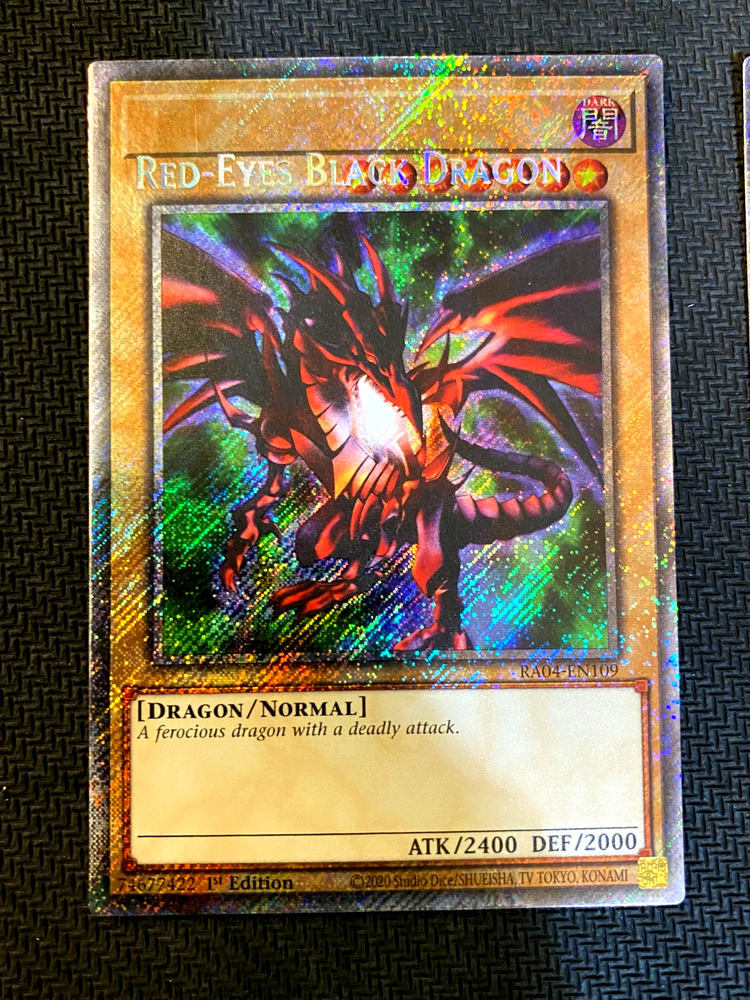 Edition: 1st Edition Condition: Near Mint (pack fresh straight sleeved) Rarity: Prismatic Secret Rare (PSR) Misprint Type: Name Shift (Out of Name Box) PLEASE REFER TO THE PHOTO FOR DETAIL OF THE MISPRINT *Item in U.S.* All sales are final, no return will be accepted ---------------------------------------------------------------------------------------------Breakdowns------------------------------------------------------------------------------------------------------------- MAIN CONTENT BREAKDOWN: 1X Red-Eyes Black Dragon (4th Art / PCR / MISPRINT / RA04-EN107) 1X Red-Eyes Black Dragon (7th Art / PCR / MISPRINT / RA04-EN107) SHIPPING : Free USPS Priority Mail with Tracking with Insurance Sufficient protection with extra care will be performed in packaging. Ships everyday ( please allow 1 day handling time). Make sure your PayPal address is correct!!