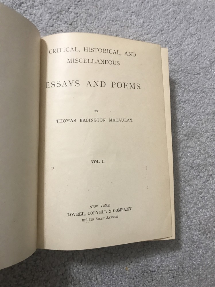 ESSAYS AND POEMS By Thomas B.Macaulay Three Volumes Set Fine Leather Bindings. See pics for condition and awesomeness! 11...