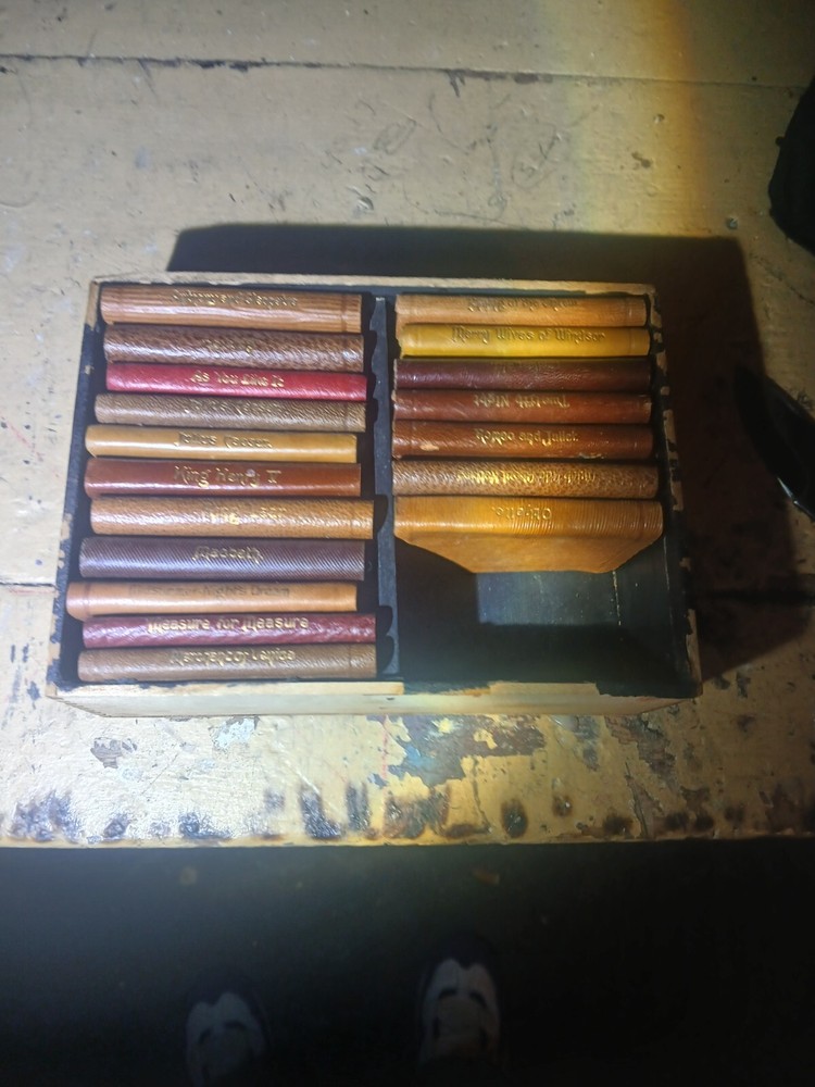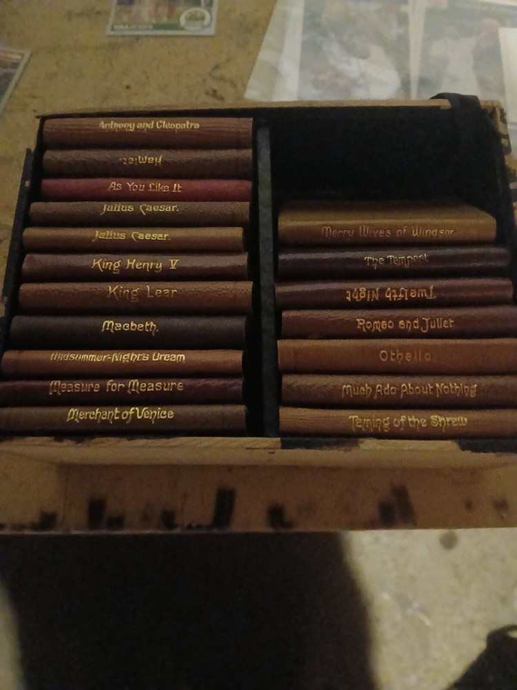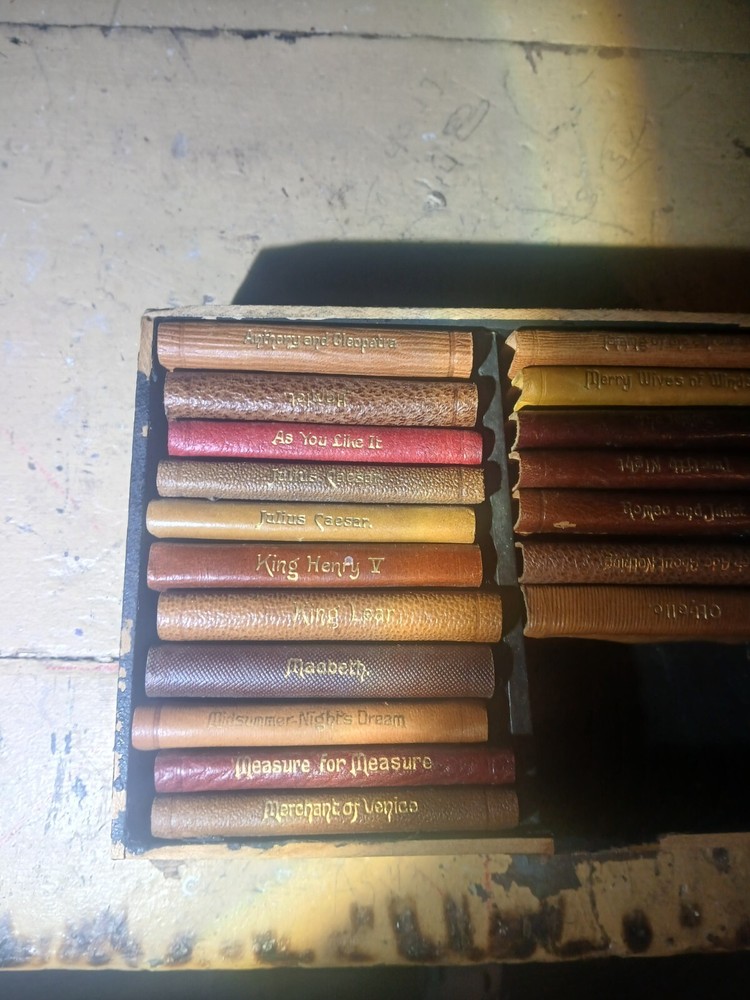This is a collector's edition set of 18 mini leather-bound books by William Shakespeare, published by Knickerbocker in the early 1900s. The set covers various topics related to literature and fiction, making it a valuable addition for book collectors and enthusiasts.