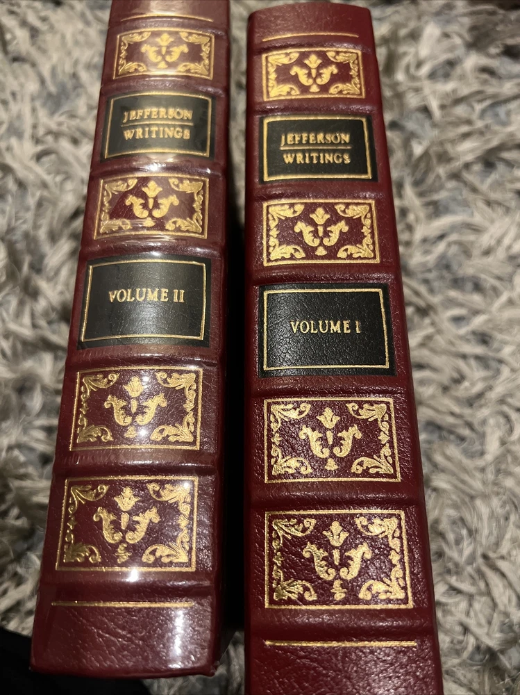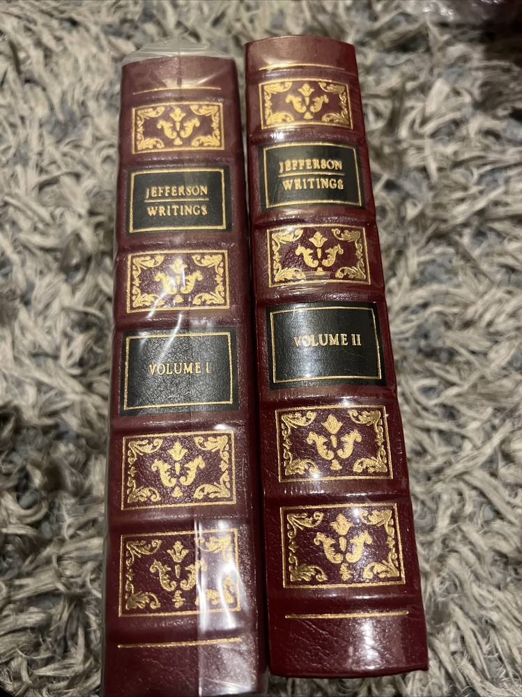 Easton Press 2 Vol Leather Book SET Thomas JEFFERSON WRITINGS Collectors Edition. One is sealed(volume 2) One has some slight damage on the gold pages outside Look at pictures...