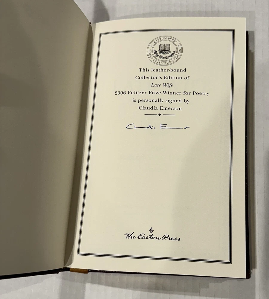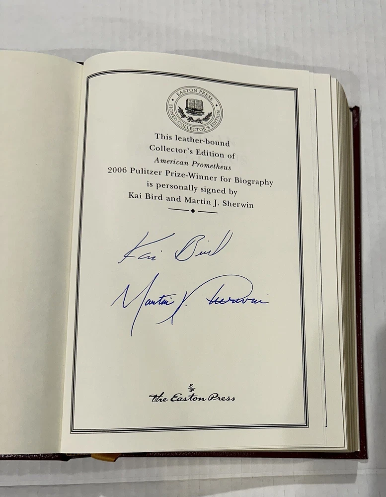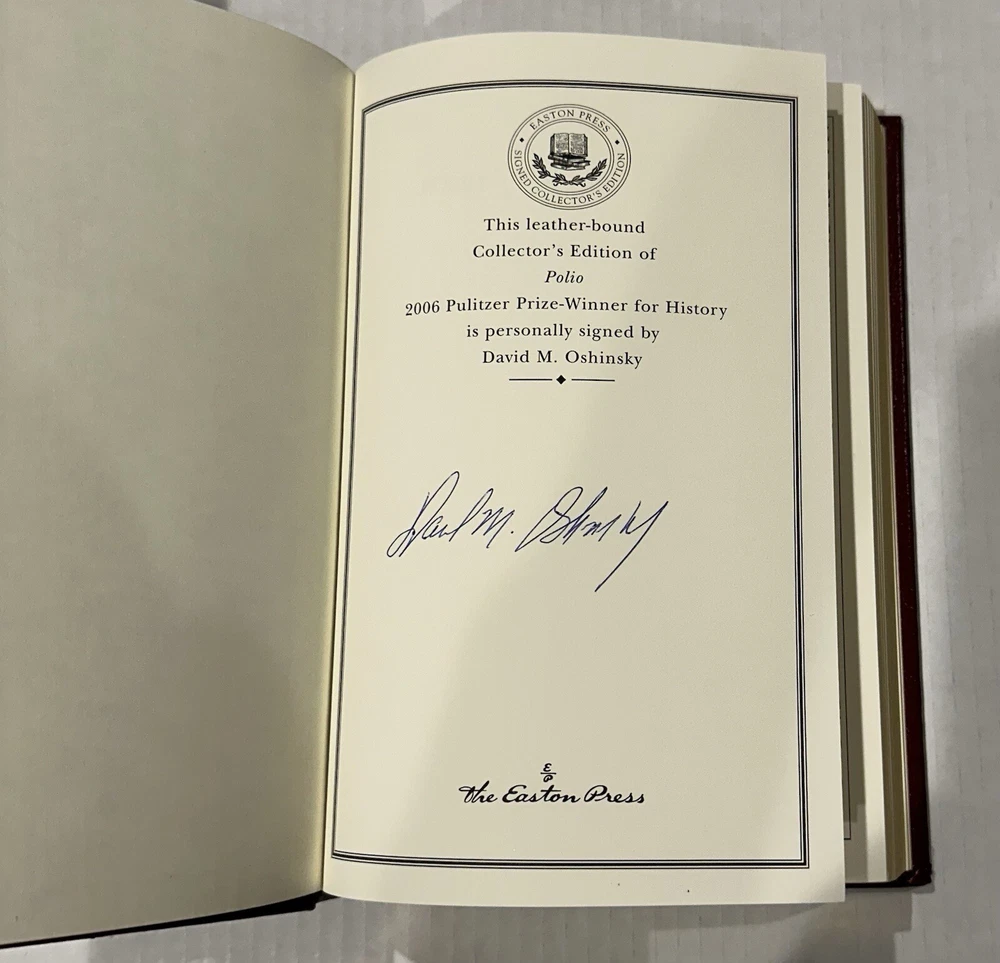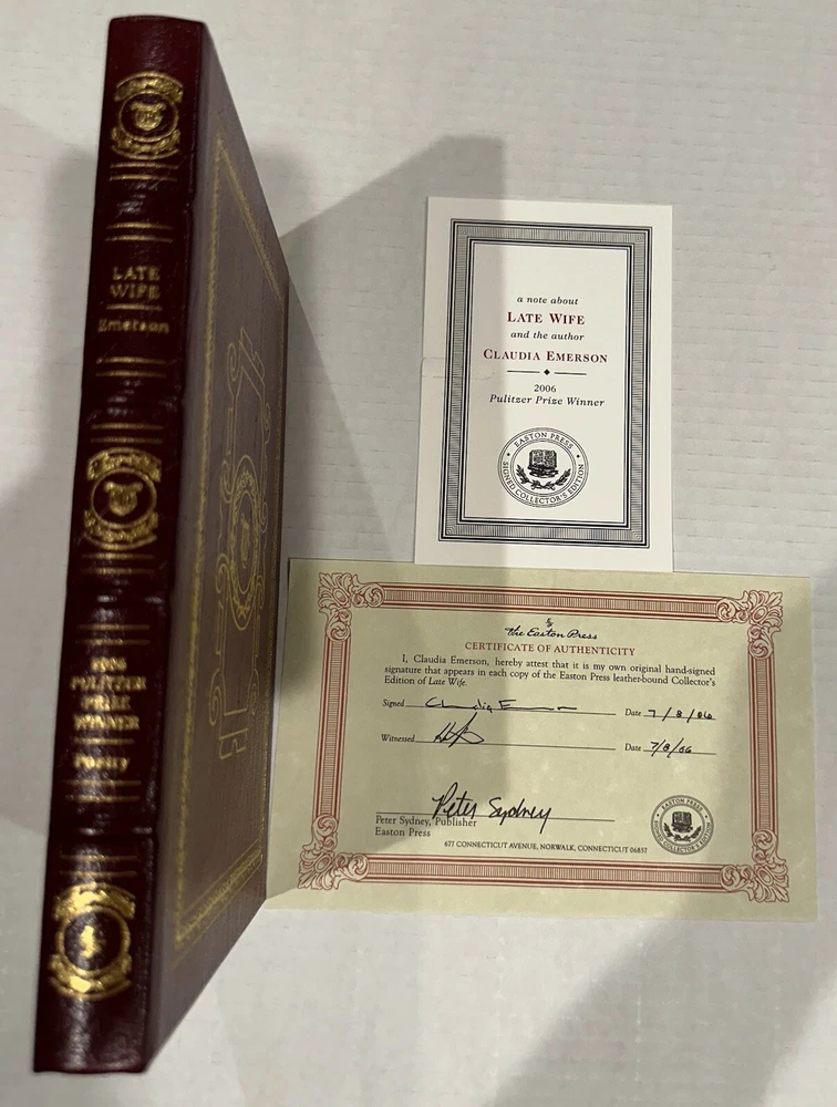 This Easton Press collector's edition set features 5 volumes of Pulitzer Prize winning authors, signed by each writer. The leather bound books are in their original form, printed in 2006, and come with a Certificate of Authenticity. The set includes works in the English language, covering various topics, and is a must-have for any book collector. The publisher, Easton Press, is known for its high-quality publications and this set is no exception. Don't miss the opportunity to own a piece of literary history. Books include: Fiction - MARCH by Geraldine Brooks NonFiction - IMPERIAL RECKONING by Caroline Elkins Biography - AMERICAN PROMETHEUS by Kai Bird & Martin J Sherwin History - POLIO: AN AMERICAN STORY by David M Oshinsky Poetry - LATE WIFE by Claudia Emerson This collectors edition set is in excellent original condition, never been read. Each volume has an original hand signed title page and comes with an original hand signed certificate of authenticity. The set comes with a bookplate on original card, not yet attached for each book. From non-smoking home.