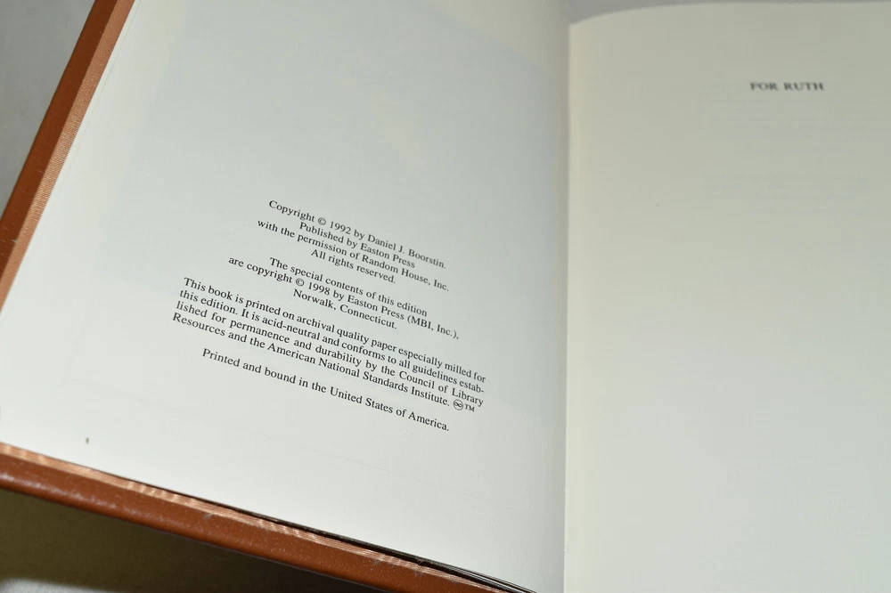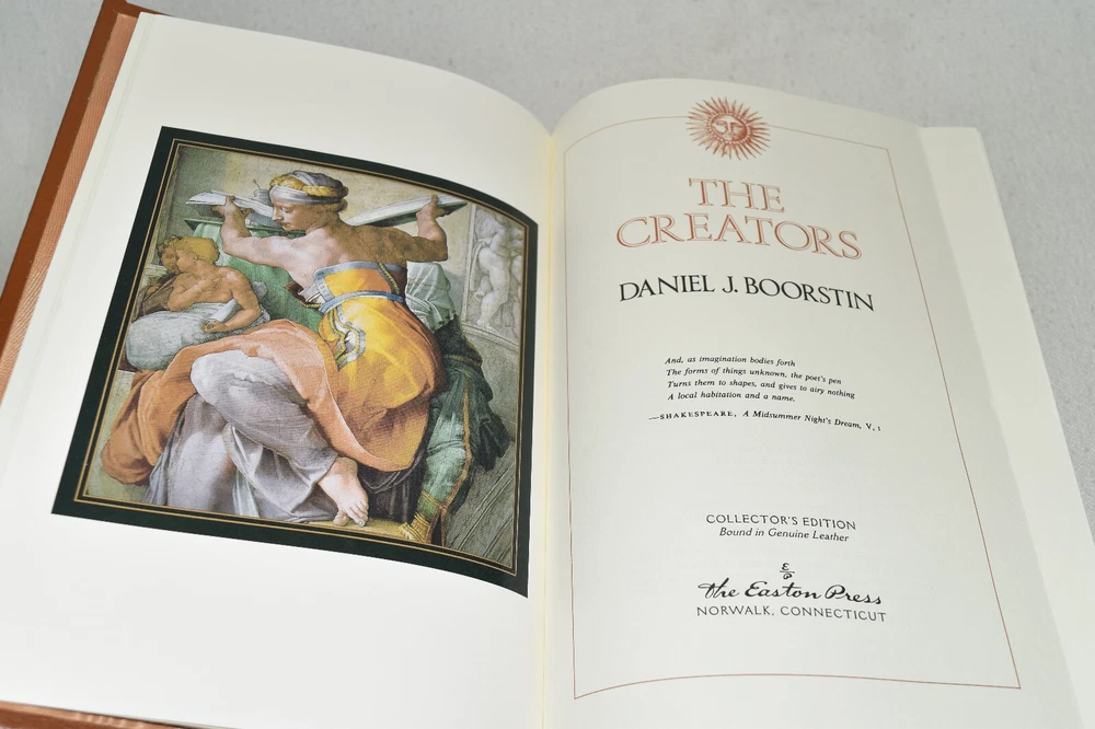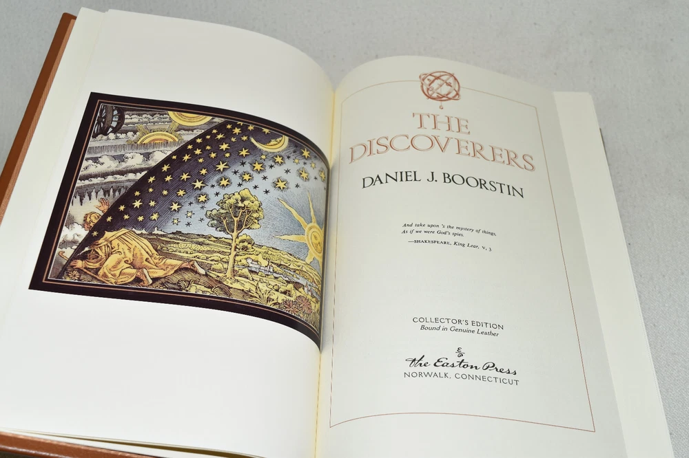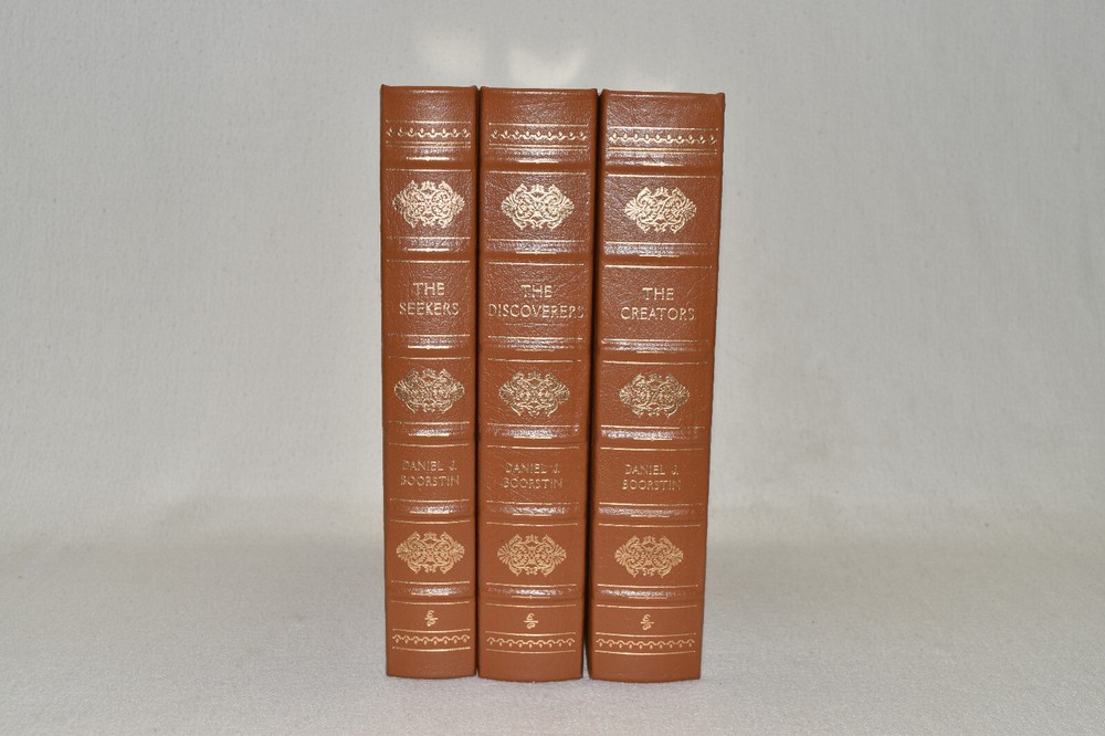 From the Easton Press Collection... The Seekers The Discoverers The Creators Complete Three-Volume Set by Daniel J. Boorstin Copyright 1998 by The Easton Press First Printings Bound in Premium Full Leather This set contains all of the classic Easton Press trimmings: Premium Leather Decorated Endleaves Distinctive Cover Design Hubbed Spine, Accented in Real 22KT Gold Satin Ribbon Page Marker Gilded Page Edges Long-lasting, High Quality Acid-neutral Paper Smyth-sewn Pages for Strength and Durability Beautiful Illustrations A very scarce set in any condition, these volumes are in Fine condition. The front and back covers are both in terrific condition and the gilded page edges show minor wear (see pictures of all edges). There are no markings, bookplates, or other markings in these books. This set was published by Easton Press and would be a beautiful addition to your Easton Press collection. Hopefully you can add this set to your collection and enjoy it in the years to come... Please Email Me With Any Questions You Might Have! Shipping Info: Buyer to Pay Shipping and Handling International Bidders Pay Extra Shipping Seller Not Responsible For Uninsured Items Lost or Damaged in Mail Forms of Payment Accepted: Paypal Good luck and happy bidding! Powered by eBay Turbo Lister The free listing tool. List your items fast and easy and manage your active items.