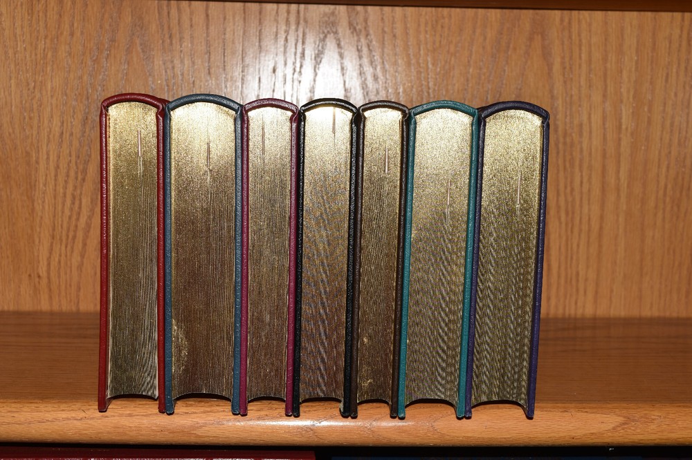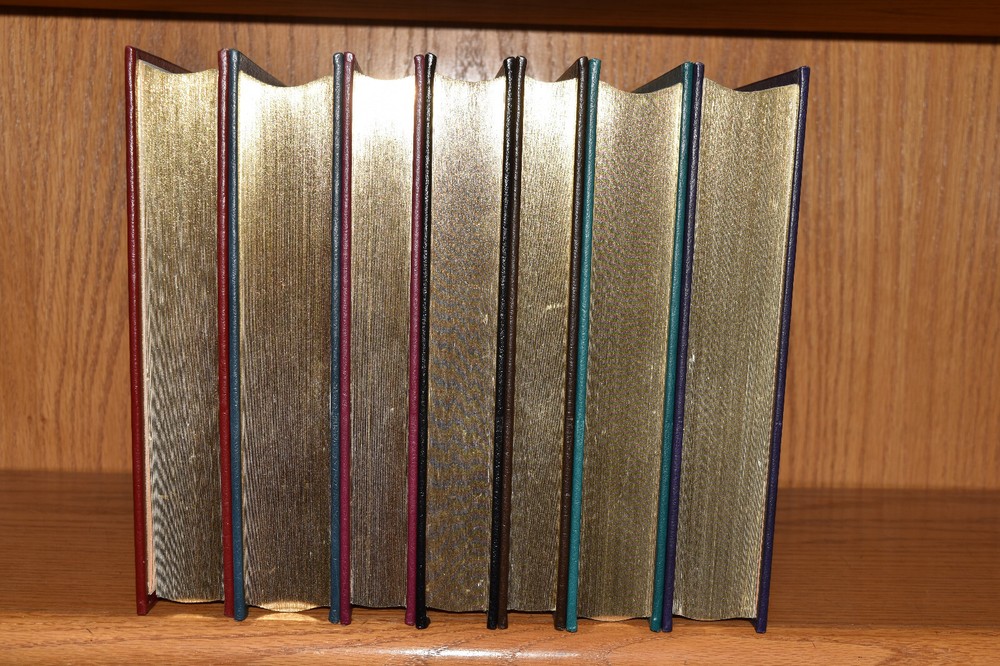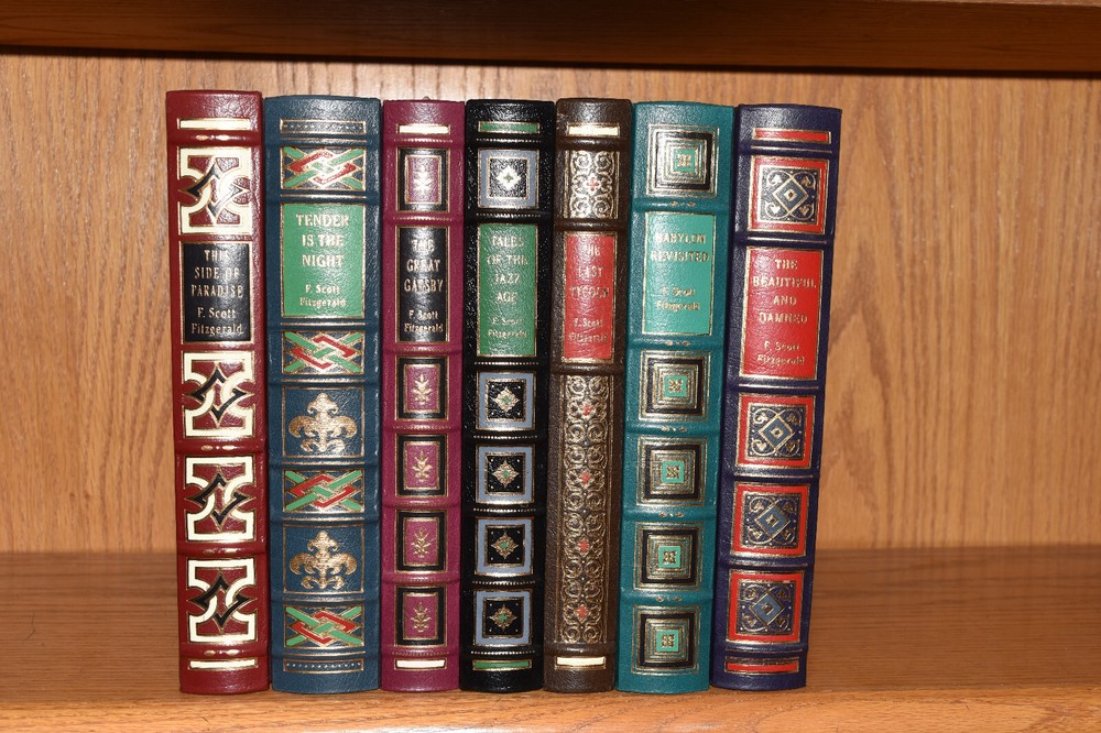 From the Easton Press Collection... The Great Gatsby This Side of Paradise Tender is the Night Tales of the Jazz Age The Last Tycoon Babylon Revisited The Beautiful and Damned Complete Seven-Volume Set by F. Scott Fitzgerald Beautifully Illustrated Copyright 1991 by The Easton Press Bound in Premium Full Leather This volume contains all of the classic Easton Press trimmings: Premium Leather Decorated Endleaves Distinctive Cover Design Hubbed Spine, Accented in Real 22KT Gold Satin Ribbon Page Marker Gilded Page Edges Long-lasting, High Quality Acid-neutral Paper Smyth-sewn Pages for Strength and Durability Beautiful Illustrations A very scarce set in any condition, these volumes are in Fine condition. The front and back covers are both in terrific condition and the gilded page edges show minor wear (see pictures of all edges). There is very light residue on the second page of the books. This set was published by Easton Press and would be a beautiful addition to your Easton Press collection. Hopefully you can add this set to your collection and enjoy it in the years to come... Please Email Me With Any Questions You Might Have! Shipping Info: Buyer to Pay Shipping and Handling International Bidders Pay Extra Shipping Seller Not Responsible For Uninsured Items Lost or Damaged in Mail Forms of Payment Accepted: Paypal Good luck and happy bidding! Powered by eBay Turbo Lister The free listing tool. List your items fast and easy and manage your active items.