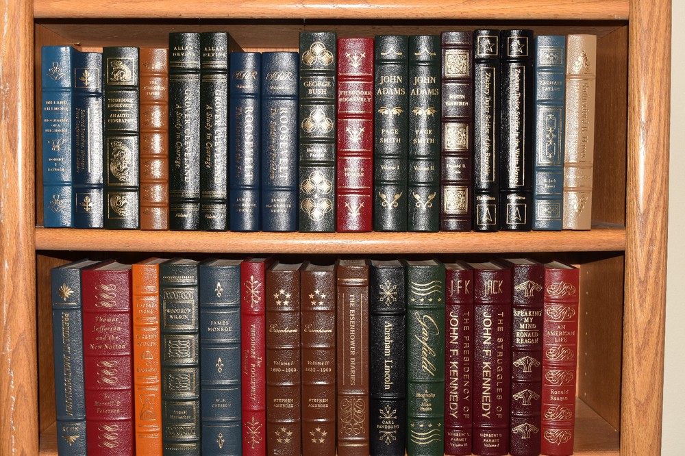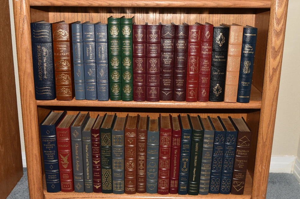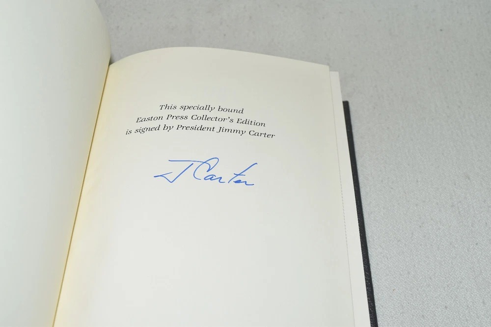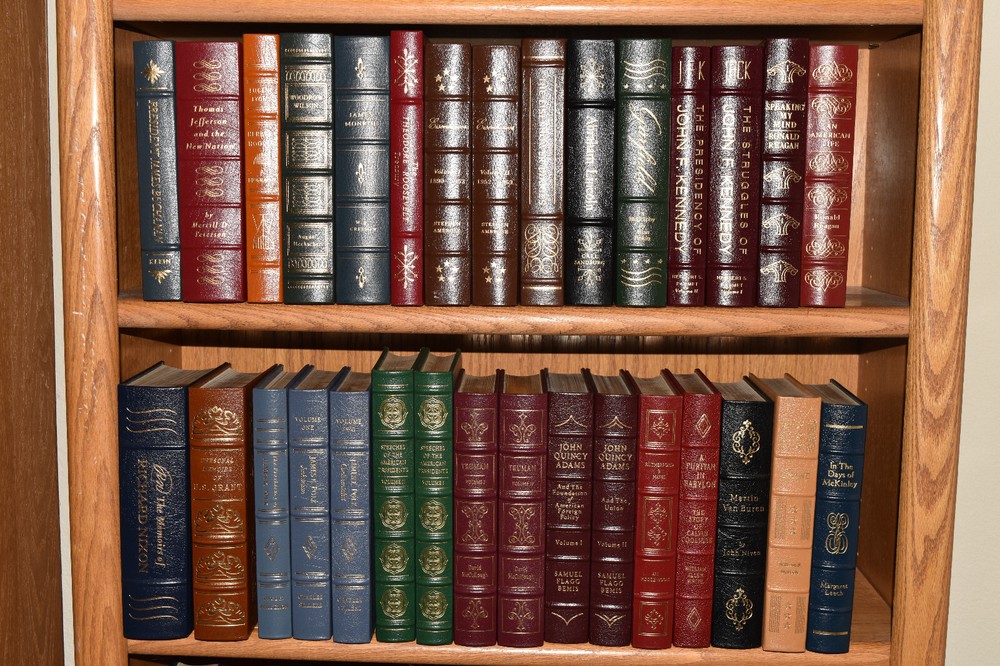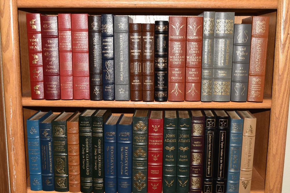 From the Easton Press Collection... The Library of the Presidents 82 Volumes by Famous Biographers Copyright 1990s by The Easton Press Bound in Premium Full Leather This set contains all of the classic Easton Press trimmings: Premium Leather Silk Moire Endleaves Distinctive Cover Design Hubbed Spine, Accented in Real 22KT Gold Satin Ribbon Page Marker Gilded Page Edges Long-lasting, High Quality Acid-neutral Paper Smyth-sewn Pages for Strength and Durability Beautiful Illustrations This collection is in Fine and Unread condition. The front and back covers of each book are both in near perfect condition and the gilded page edges show only minor wear. There are no markings or bookplates in any of the books.Three books are signed by Nixon, Carter, and Ford. Nearly all contain the Collector's Notes. This collection retails for over $6000 and would take 8+ years to collect. Now is your chance to buy this collection at a substantial discount! Books included are: Title Author A Day of Dedication Fried, Albert A Puritan in Babylon: The Story of Calvin Coolidge White, William A Time to Heal Gerald Ford Abraham Lincoln Sandburg, Carl An American Life Reagan, Ronald And Tyler Too: A Biography of John Tyler Seager, Robert Andrew Jackson The Border Captain; Vol. I James, Marquis Andrew Jackson Portrait of A President; Vol. II James, Marquis Andrew Johnson: A Biography Trelousse, Hans Andrew Johnson: Plebeian and Patriot Winston, Robert Benjamin Harrison: Hoosier Warrior Sievers, Harry Benjamin Harrison: Hoosier Statesman Hoosier President Sievers, Harry Chester A. Arthur Howe, George Frederick Eisenhower; Vol. I Ambrose, Stephen Eisenhower; Vol. II Ambrose, Stephen Franklin D. Roosevelt; Selected Speeches Franklin D. Roosevelt Franklin Pierce: Young Hickory of the Granite Hills Nichols, Franklin Garfield Peskin, Allan George Bush Parmet, Herbert Grant: A Biography Mcfeely, William Great Presidential Decisions Morris, Richard & Jeffery Grover Cleveland A Study in Courage; Vol. I Nevins, Allan Grover Cleveland A Study in Courage; Vol. II Nevins, Allan Harry S. Truman Truman, Margaret Harry S. Truman Ferrell, Robert Herbert Hoover: A Biography Lyons, Eugene Herbert Hoover: A Public Life Burner, David In the Arena Nixon, Richard In the Days of McKinley Leech, Margaret James Monroe Cresson, W.P. James Polk: Jacksonian and Continentalist; Vol. I Sellers, Charles James Polk: Jacksonian and Continentalist; Vol. II Sellers, Charles John Adams; Vol. I Smith, Page John Adams; Vol. II Smith, Page John Quincy Adams; Vol. I Bemis, Samuel Flagg John Quincy Adams; Vol. II Bemis, Samuel Flagg Keeping Faith Jimmy Carter Lincoln Donald, David Herbert Lyndon Johnson and the American Dream Kearns, Doris Martin Van Buren Cole, Donald Martin Van Buren: The Romantic Age of American Politics Niven, John Millard Fillmore Rayback, Robert Off The Record The Private Papers of Harry S Truman Ferrell, Robert Old Tippecanoe: William Henry Harrison and His Time Cleaves, Freeman President James Buchanan Klein, Philip Shriver Personal Memoirs Of U. S. Grant U. S. Grant Roosevelt The Lion and the Fox; Vol. I Burns, James MacGregor Roosevelt The Soldier of Freedom; Vol. II Burns, James MacGregor Rutherford B. Hayes Hoogenboom, Ari Rutherford B. Hayes: Statesman of Reunion Eckenrode, H. J. Speaking My Mind: Selected Speeches Reagan, Ronald Speeches of the American Presidents; Vol. I Podell, Janet Speeches of the American Presidents; Vol. II Podell, Janet The Burden and the Glory Kennedy, John F. The Complete Madison Padover, Saul The Eisenhower Diaries Ferrell, Robert The Fourth President: The Life of James Madison Brant, Irving The Life and Times of William Howard Taft; Vol. I Pringle, Henry The Life and Times of William Howard Taft; Vol. II Pringle, Henry The Life of Andrew Jackson Remini, Robert The Memoirs of Richard Nixon Richard Nixon The Presidency of James K. Polk Bergeron, Paul The Presidency of John F. Kennedy; Vol. I Parmet, Herbert The Presidency of John F. Kennedy; Vol. II Parmet, Herbert The Shadow of Blooming Grove: Warren G. Harding in His Times Russell, Francis The Theodore Roosevelt Treasury Hagedorn, Hermann The Washington Papers Padover, Saul The Works of John Adams; Vol. I John Adams The Works of John Adams; Vol. II John Adams Theodore Roosevelt Pringle, Henry Theodore Roosevelt: An Autobiography Theodore Roosevelt Thomas Jefferson and The New Nation Peterson, Merrill Truman; Vol. I David McCullough Truman; Vol. II David McCullough Washington Freeman, Douglas Southall Woodrow Wilson Heckscher, August Woodrow Wilson: American Prophet; Vol. I Walworth, Arthur Woodrow Wilson: World Prophet; Vol. II Walworth, Arthur Woodrow Wilson and the Progressive Era Link, Arthur Zachary Taylor Bauer, K. Jack Zachary Taylor: Soldier in the White House Hamilton, Holman Zachary Taylor: Soldier of the Republic Hamilton, Holman Please Email Me With Any Questions You Might Have! Shipping Info: Buyer to Pay Shipping & Handling International Bidders Pay Extra Shipping Good luck and happy bidding!