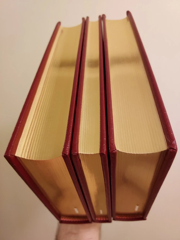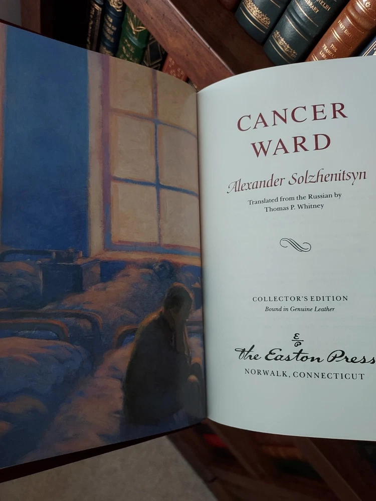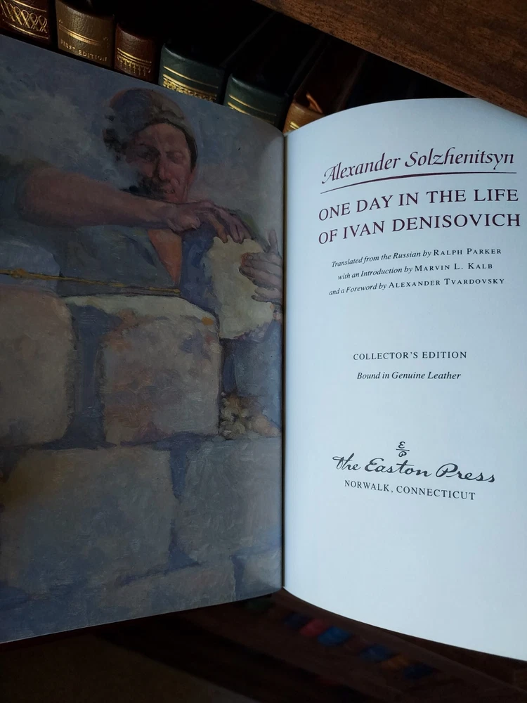 This SCARCE UNREAD leather limited edition complete three volume book set from The Easton Press is in NEAR PERFECT condition with no markings inside or out and no attached bookplates. All three of these beautiful books are totally unused and nearly untouched. Only the 'Cancer Ward' book out of the set has the top corners very slightly bumped as pictured. This minor flaw is really the only imperfection to the entire LIKE NEW set. I guess it is hypothetically possible to find this complete set all still sealed in factory plastic and also completely unbumped/undamaged in any way, but this is definitely the next best thing to that dream. This set will be packaged to perfection and shipped Priority or Ground Advantage if the cost to me for the label is $15 or less regardless of the $10 Media Mail price paid for by the buyer. If you have a preferred shipping service, please contact me before cashing out, and I will gladly accommodate you. COMBINED SHIPPING is always automatically active, and if you buy 5 or more in the same transaction, FREE SHIPPING!! Please feel free to check out the HUNDREDS of different premium collectible books I have for sale right now, nearly all of which are LIKE NEW or actually BRAND NEW and unopened. Subscribe or check back for new listings of rare, interesting, and beautiful books. I ship and physically mail books daily and often even within hours of purchase.