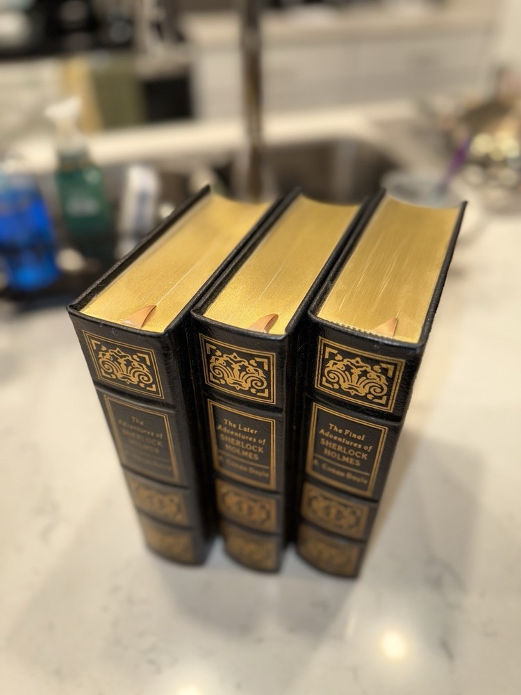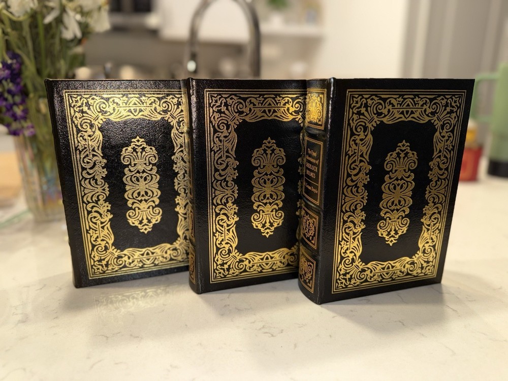 Easton Press โ The Complete Adventures of Sherlock Holmes โ Arthur Conan Doyle โ 3 Volume Leather Bound Set ๐ต๏ธโ๏ธ๐ Own the full legacy of the worldโs greatest detective with this 3-volume Easton Press set of The Complete Adventures of Sherlock Holmes by Sir Arthur Conan Doyle. Beautifully bound in premium leather, this collectorโs edition is perfect for lovers of classic mystery and fine books. Includes: โ The Adventures of Sherlock Holmes โ The Later Adventures of Sherlock Holmes โ The Final Adventures of Sherlock Holmes Details: โ Publisher: Easton Press โ Full Leather Binding โ Hubbed Spines, Gilt Edges, Satin Ribbon Markers โ Archival-Quality Acid-Free Paper โ Gold-stamped cover designs and illustrated frontispieces ๐ฏ Condition: All 3 volumes are in excellent condition Clean pages, tight bindings Minor shelf wear may be present โ see photos for exact details ๐ A stunning collectorโs set for fans of Sherlock Holmes, classic literature, or Easton Press editions ๐ Fast Shipping & Secure Packaging! Thanks for looking! โ RetroMementos