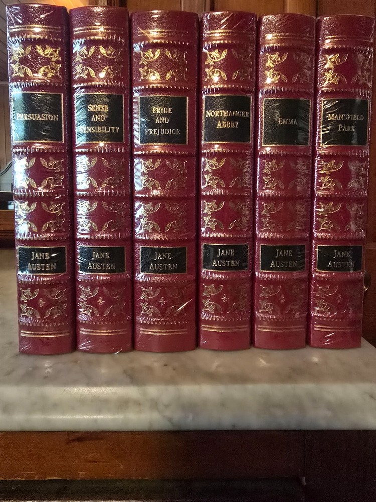 Immerse yourself in the classic world of Jane Austen with this complete set of her novels, presented in a luxurious leather-bound edition by Easton Press. This collection features all six of Austen's major works, beautifully crafted and bound to last, making it a perfect addition to any bibliophile's library. Each volume is filled with the witty banter and keen social insights that have made Austen's novels beloved for generations. Whether you're a seasoned reader or a newcomer to her work, this set is sure to delight and inspire.