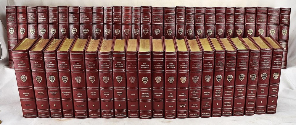 Note : Any images shown are stock photographs and product may differ from what is shown. Title: Easton Press HARVARD CLASSICS Full Set Bound in Genuine Leather Accented with 22kt Gold, Silk Ribbon and Gilded page edges. Type: book / Leather Bound Condition Notes: 2001 printing of 50-volume set. 44 volumes still in shrink-wrap, never used. The other 6 books appear to be unused and unread.