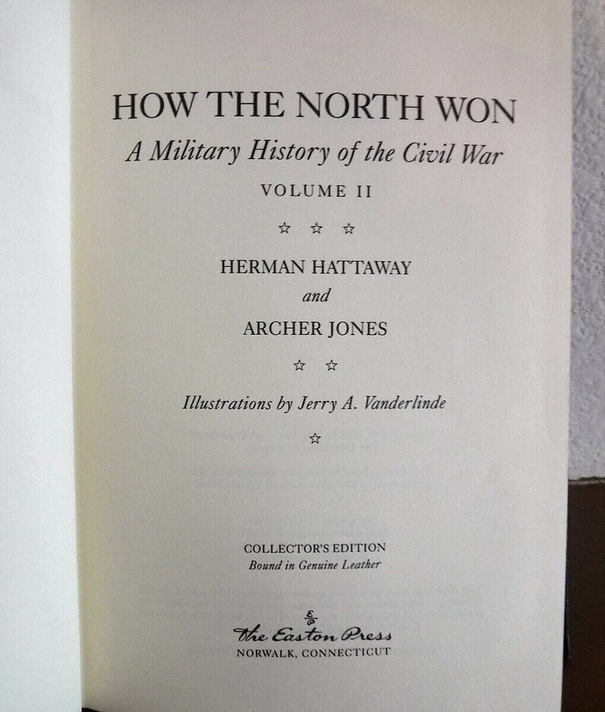 Immerse yourself in the history of the American Civil War with this collector's edition of "HOW THE NORTH WON" by Hattaway and Jones. This two-volume book set, published by Easton Press, features leather binding and is written in English. Learn about the military strategies and tactics used by the Union army to emerge victorious in the war of 1861-65. This book is perfect for collectors of rare and historical books, as well as anyone interested in the topic of military and war. Part of the Easton Press Library of Military History. 1