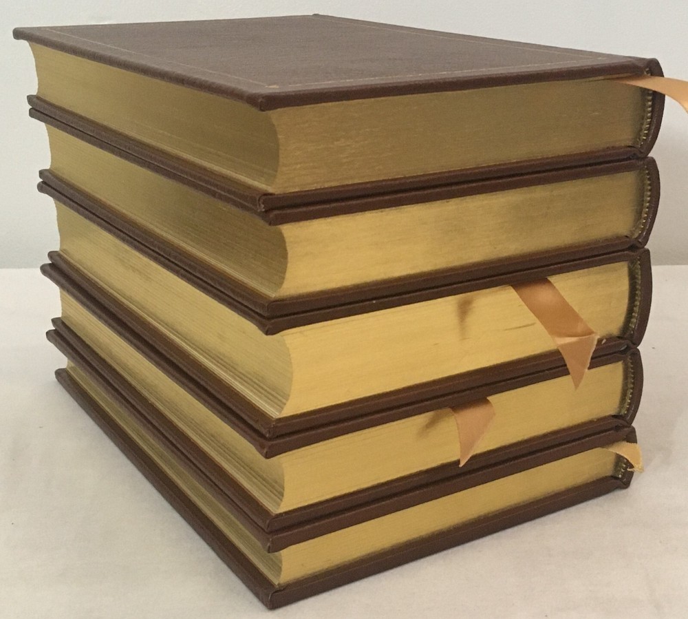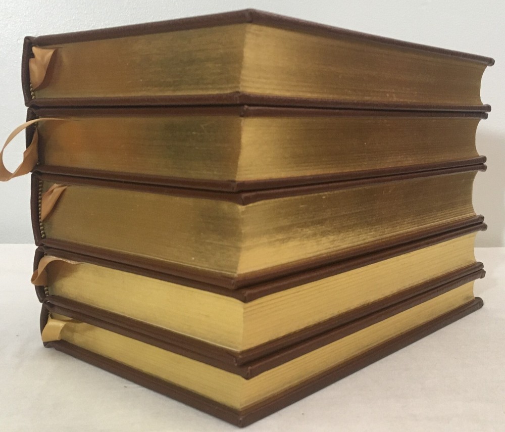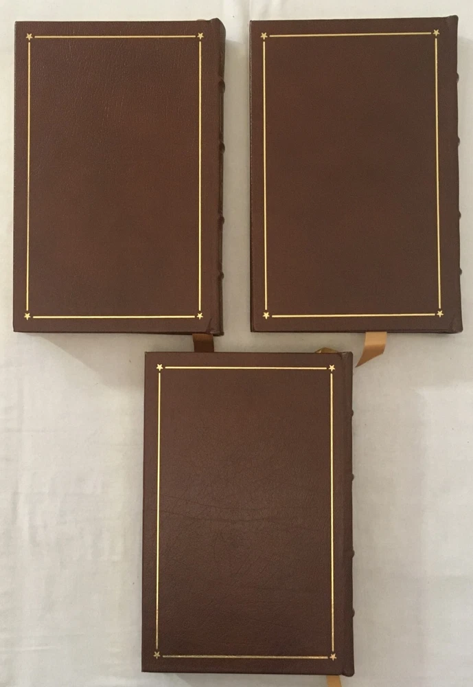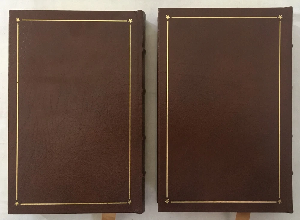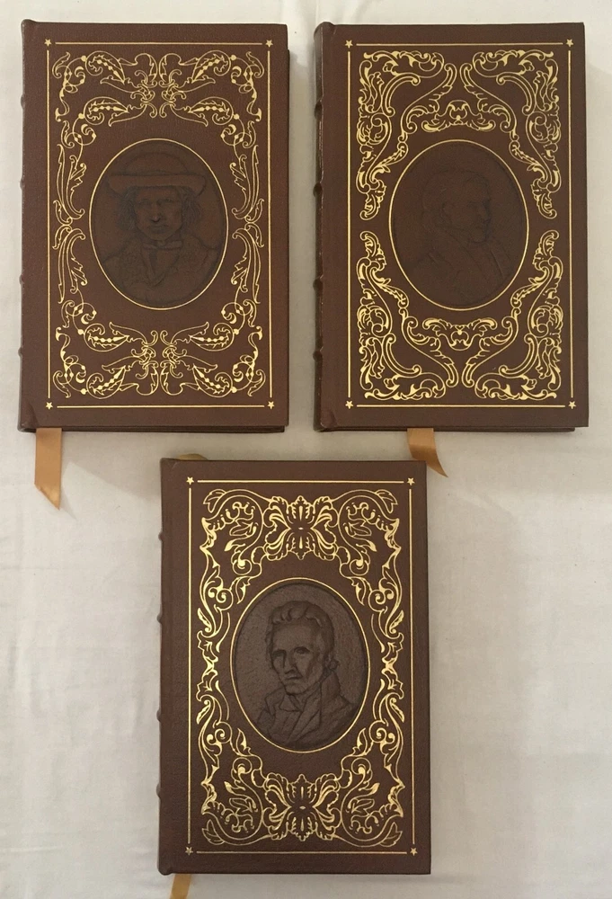 Easton Press, Norwalk CT. 1992 "Heroes Of The Wild West" Leather Bound collector's editions. A complete and matching set of five volumes. Full genuine leather. Each book includes illustrations with frontispiece in color, uniform brown leather bindings, and embossed oval portrait on the front hardcovers. List of titles included in this set: BUFFALO BILL: King of the Old West, Biography of William I. Cody (Pony Express Rider, Buffalo Hunter, Plains Scout and Guide, Master Showman), by Elizabeth Jane Leonard and Julia Cody Goodman, edited by James Williams Hoffman DANIEL BOONE: The Life and Adventures, by Michael A Lofaro DAVY CROCKETT: The Man and the Legend, by James Atkins Shackford, edited by John B Shackford WILD BILL: The Called Him, The Life and Adventures of James Butler Hickok, by Joseph G Rosa KIT CARSON: "Dear Old Kit", The Historical Christopher Carson, with a new edition of the Carson memoirs, by Harvey Lewis Carter Pictures are of actual books