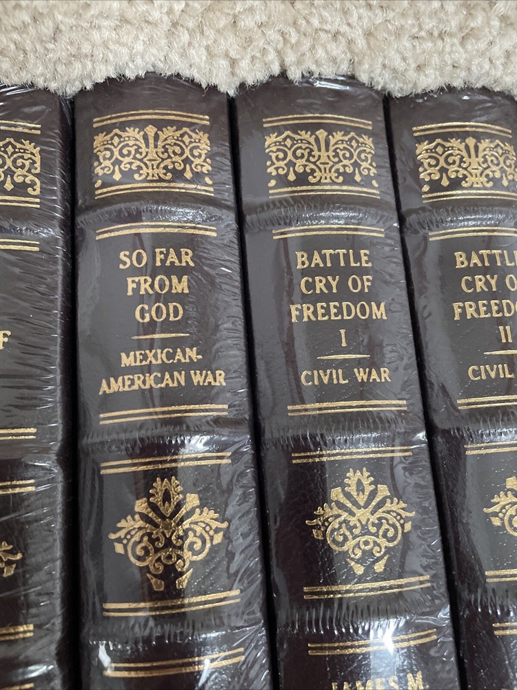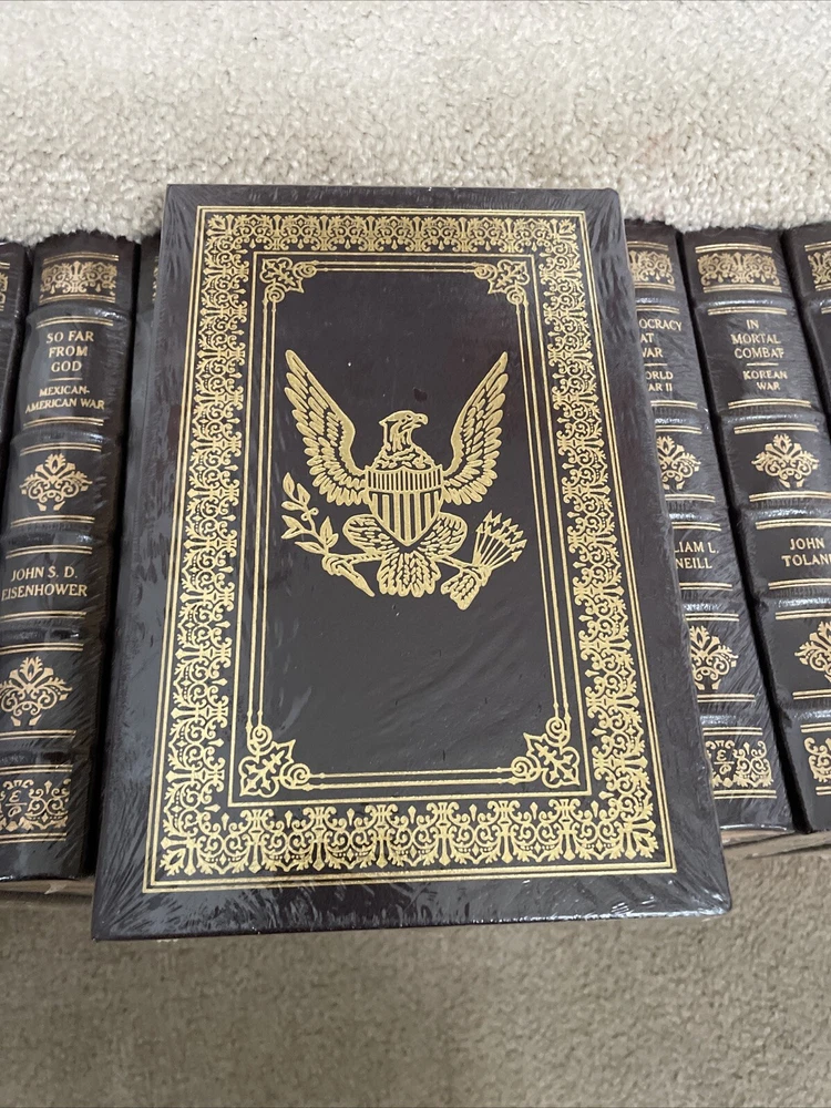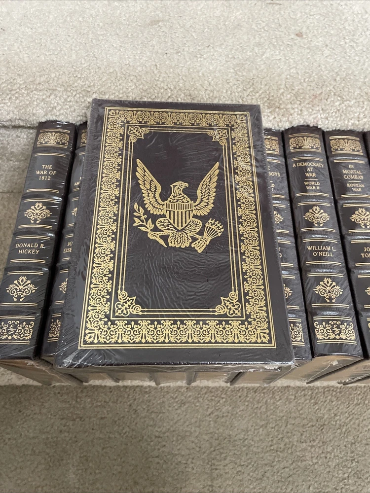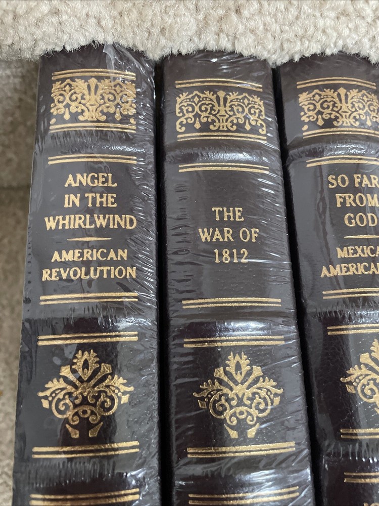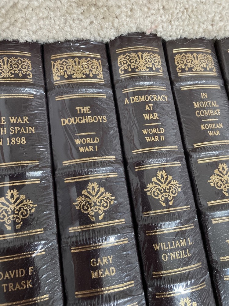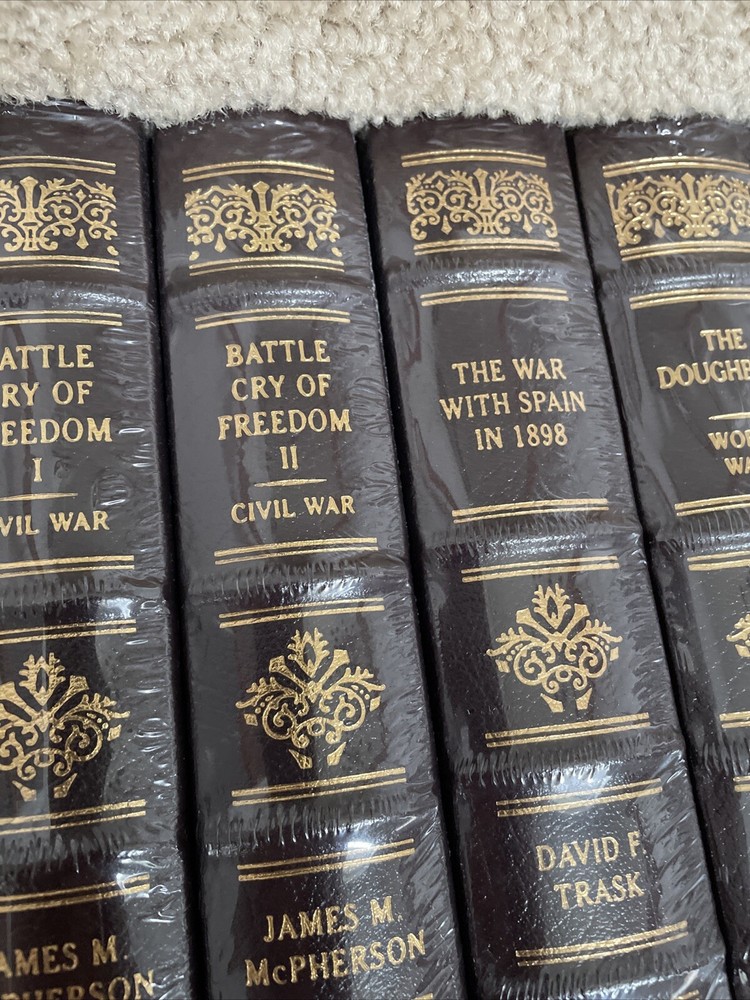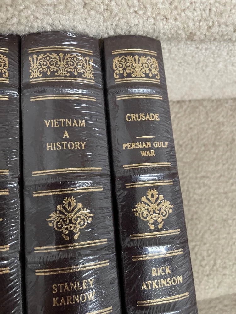 Easton Press The History of America's Wars in 11 volumes. The set contains: Angel in the Whirlwind: American Revolution by Benson Bobrick The War of 1812 by Donald R. Hickey So Far from God: Mexican-American War by John S. D. Eisenhower Battle Cry of Freedom I and II: Civil War (2 vols) by James M. McPherson The War with Spain in 1898 by David F. Trask The Doughboys: World War I by Gary Mead A Democracy at War: World War II by William L. O'Neill In Mortal Combat: Korean War by John Toland Vietnam: A History by Stanley Karnow Crusade: Persian Gulf War by Rick Atkinson The books are full leather. They are all brand new and still sealed in the manufacturer's shrink wrap. Please see photos. We try to describe as accurately as possible so you will be satisfied with your purchase. We have more books from this set on eBay and we would be happy to combine on shipping to save you money. All books are sent with insurance via USPS Media Mail.