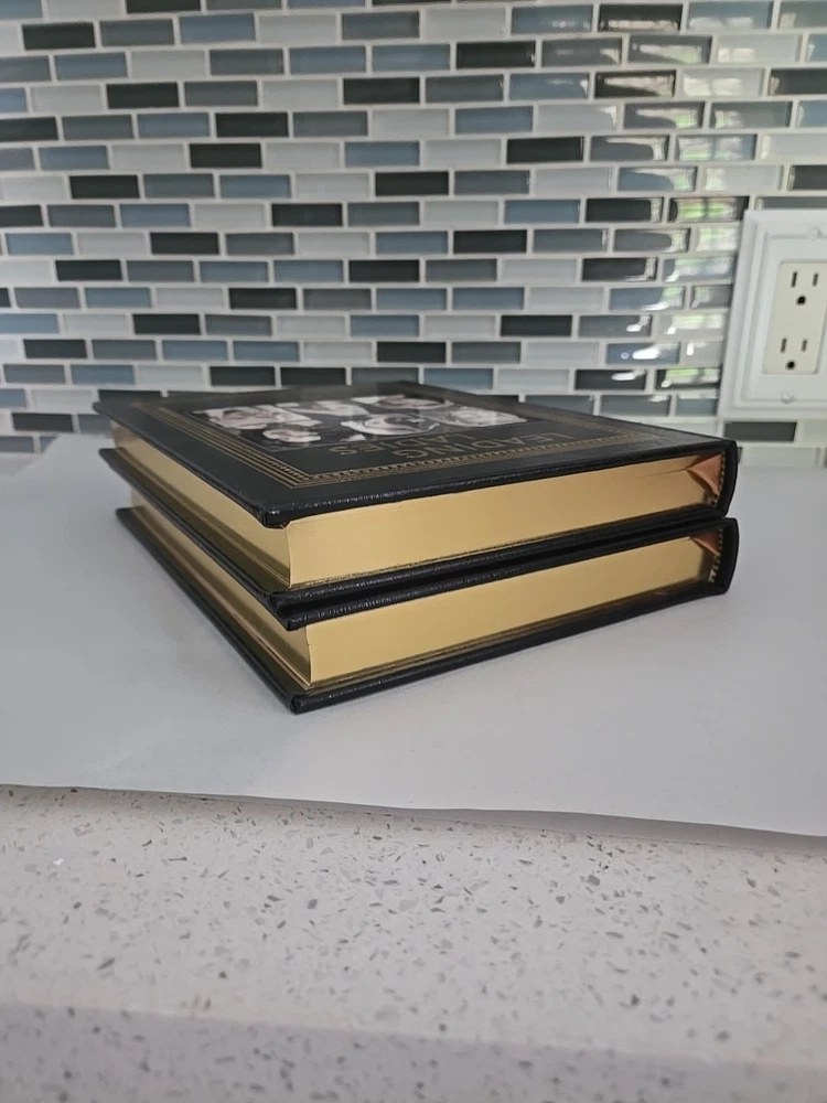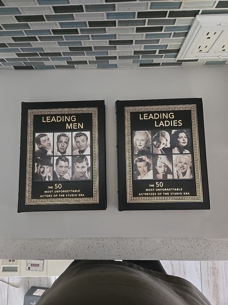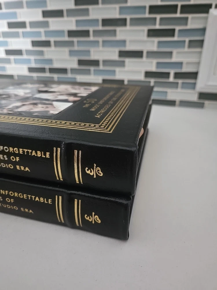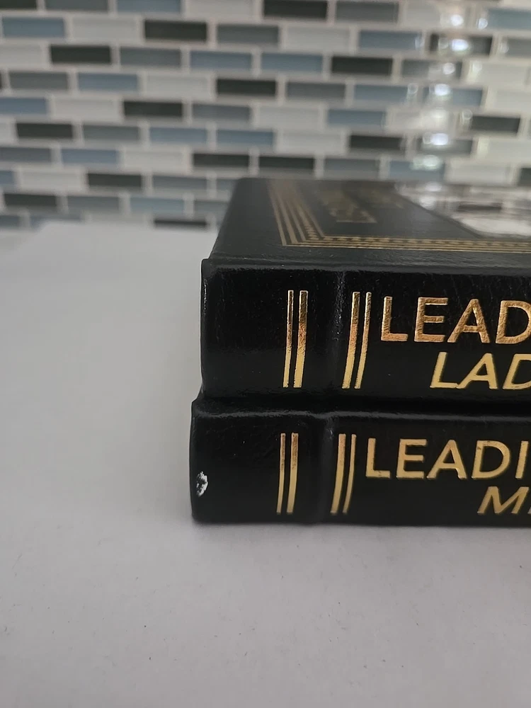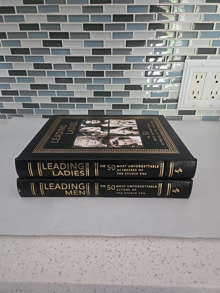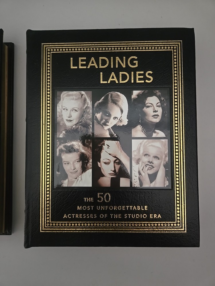 The Easton Press "Leading Men & Leading Ladies" set of 2 features leather-bound editions of biographies written by Molly Haskell. Published in 2006, these books delve into the lives of influential figures in the movie industry, focusing on notable men and women who have made significant contributions. With a total of 230 pages in each volume, this set is a valuable addition for anyone interested in the world of movies and biographies, offering a unique and elegant format through the use of leather binding. See photos for overall condition as it's part of the description any flaws will be disclosed there.