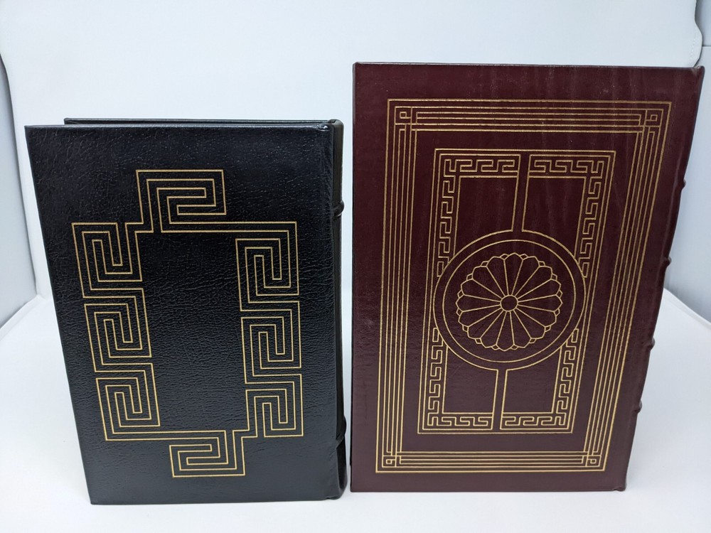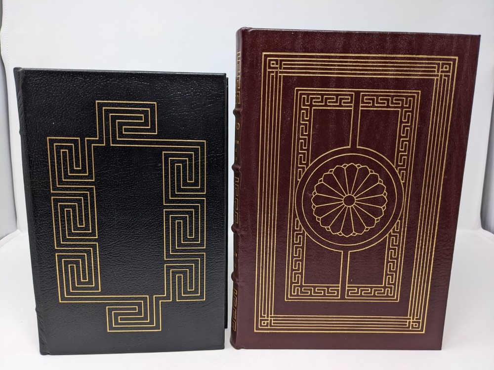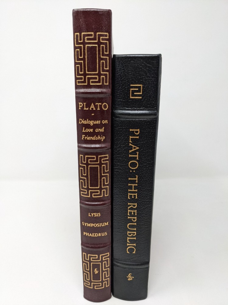 This listing is for a set of two Easton Press Plato books. Both books used w/ some light wear. Some discoloration to gilt edging. Library pressing on title page of The Republic. Overall good condition. See pictures for details. Will ship quickly after payment is received!