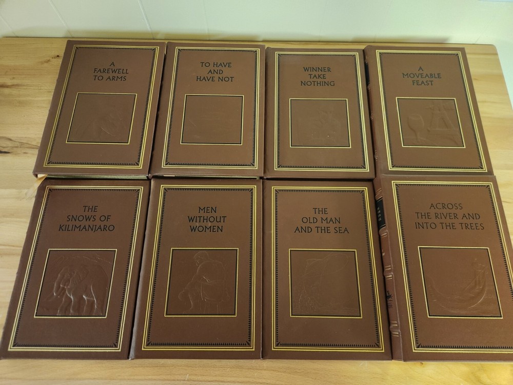 Easton Press Leather Ernest Hemingway 8 Volume Collector's Edition Book Set These books are in excellent condition. Winner Take Nothing Across The River and into The Trees A Moveable Feast To Have and Have Not The Old Man and the Sea A Farewell to Arms Men Without Women The Snows of Kilimanjaro
