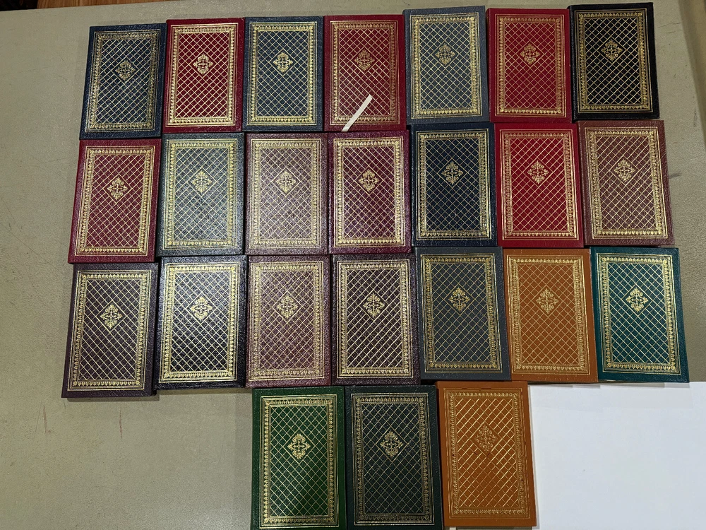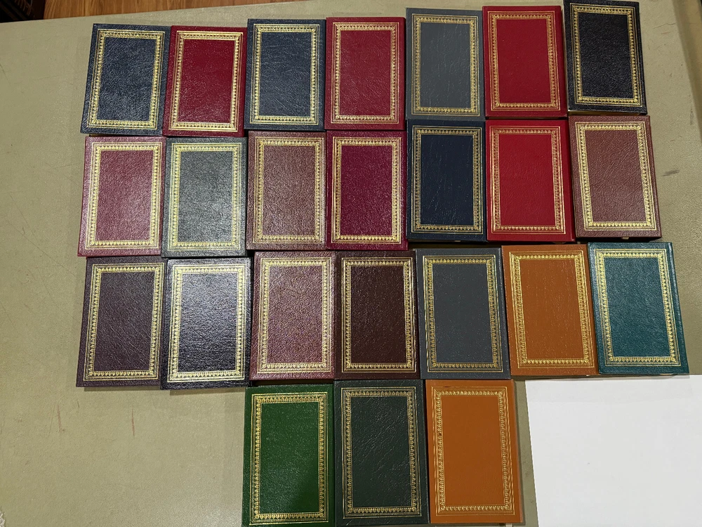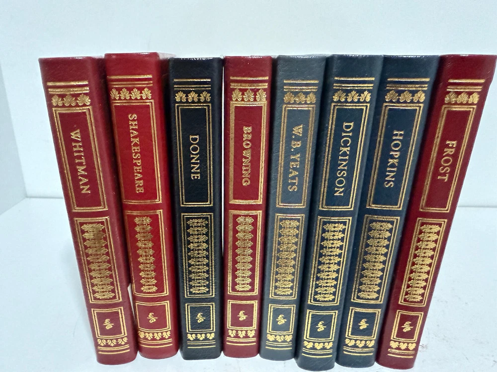 Library of Great Poetry 25 Vols - Complete Set Easton Press 100 Greatest Series Most of the books in Like New to Excellent Condition; a few have minor flaws ! Poetry of: Robert Browning Elizabeth Barrett Browning Sylvia Plath T. S. Elliot Henry Wadsworth Longfellow e.e.cummings Samuel Taylor Coleridge Emily Bronte Edgar Allan Poe John Donne Robert Frost John Keats Emily Dickinson Langston Hughes Percy Bysshe Shelley Walt Whitman Lord Byron William Shakespeare Alfred, Lord Tennyson W. B Yeats Robert Burns William Wordsworth William Blake Edna St. Vincent Millay Gerard Manley Hopkins Each book measures about 4.25" x 6.5" New Books get listed daily !!! 100s of Easton Press and Franklin Library books available!! All books get cleaned with a leather cleaner to remove any dust, odor and restore the beauty of leather!! Combined Shipping Discount: USA buyers - every book $1 off International combined shipping: 1 or 2 books - $45 3 or 4 books - $75 5 + books $17 per book 10+ books $13 per book WE SHIP DAILY!! RETURNS: Hassle-Free 30-days return policy and we pay for a return !! Check our Inventory (Link to eBay Store): http://stores.ebay.com/EastonFranklinBooks