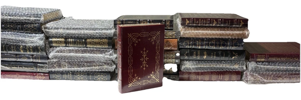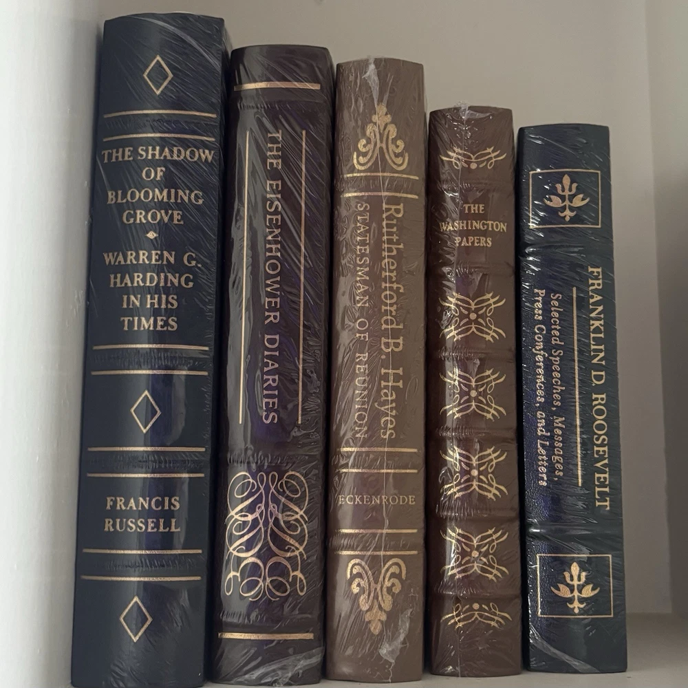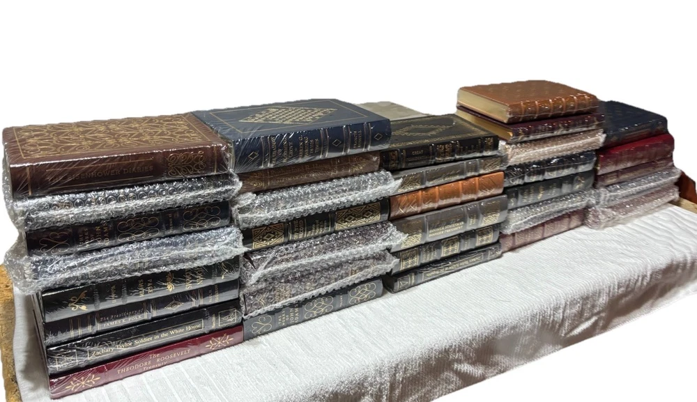 For sale is a rare 33-volume Easton Press "Library of the Presidents" set, all first editions from the 1980s, sealed or in original bubble wrap, in mint condition. Includes titles on Washington, Adams, Jefferson, Polk, Roosevelt, Kennedy, Reagan, and more, with multi-volume sets (John Adams, J.Q. Adams, Polk). Each book features full leather binding, 22-karat gold embossing, gilt edges, and silk moiré endpapers. Stored in a climate-controlled environment. Perfect for collectors of presidential history or fine books. Securely packed and shipped via USPS Media Mail ($30–$50), or Local Pickup is available. See my other listings for Hummel figurines, Lladro & fine China. Message with questions! Full Title List: - A Day of Dedication (sealed) - An American Life by Ronald Reagan (sealed) - Andrew Jackson, Plebian and Patriot by Robert W. Winston (sealed) - Benjamin Harrison, Hoosier Statesman, Hoosier President by Harry J. Sievers (sealed) - Benjamin Harrison, Hoosier Warrior by Harry J. Sievers (sealed) - Chester A. Arthur by Howe (original packaging) - Franklin D. Roosevelt, Selected Speeches, Messages, and Press Conferences (sealed) - Franklin Pierce, Young Hickory of the Granite Hills by Roy Franklin Nichols (sealed) - Grant by William S. McFeely (original bubble wrap) - Great Presidential Decisions by Richard B. Morris & Jeffery B. Morris (sealed) - James K. Polk, Continentalist, Volume II by Charles Sellers (original shipping packaging) - James K. Polk, Jacksonian by Charles Sellers (original bubble wrap) - John Adams by Page Smith, Volumes I & II (sealed) - John Quincy Adams, And the Foundation of American Foreign Policy, Volume I (original bubble wrap) - John Quincy Adams, And the Union, Volume II (original bubble wrap) - Lyndon Johnson and the American Dream (original bubble wrap) - Off the Record: Private Papers of Harry S. Truman (sealed) - President James Buchanan by Klein (original shipping wrap) - Rutherford B. Hayes, Statesman of Reunion (sealed) - The Burden and the Glory by John F. Kennedy (sealed) - The Complete Madison (sealed) - The Eisenhower Diaries (sealed) - The Presidency of James K. Polk by Paul H. Bergeron (sealed) - The Shadow of Blooming Grove: Warren G. Harding in His Times by Francis Russell (sealed) - The Theodore Roosevelt Treasury (sealed) - Theodore Roosevelt: A Biography by Henry F. Pringle (sealed) - The Washington Papers (sealed) - The Works of John Adams, Volumes I & II (sealed) - Writings of Thomas Jefferson (original bubble wrap) - Zachary Taylor, Soldier in the White House by Hamilton (sealed) - Zachary Taylor, Soldier of the Republic (sealed)