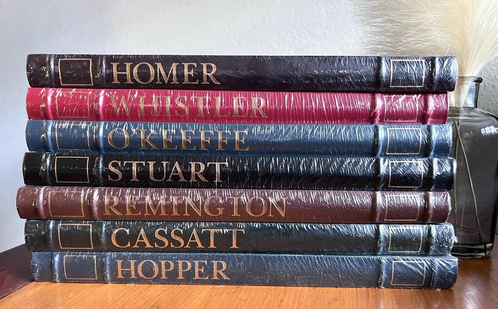 This Sealed Easton Press set features 7 volumes focusing on American art, showcasing works by Cassatt, Homer, Hopper, O'Keeffe, Remington, and Stuart. The books are adorned with leather binding and include illustrations, making them a valuable addition to any art and photography collection. Published by Easton Press, these volumes offer a deep dive into Americana and the artistry of these renowned artists.