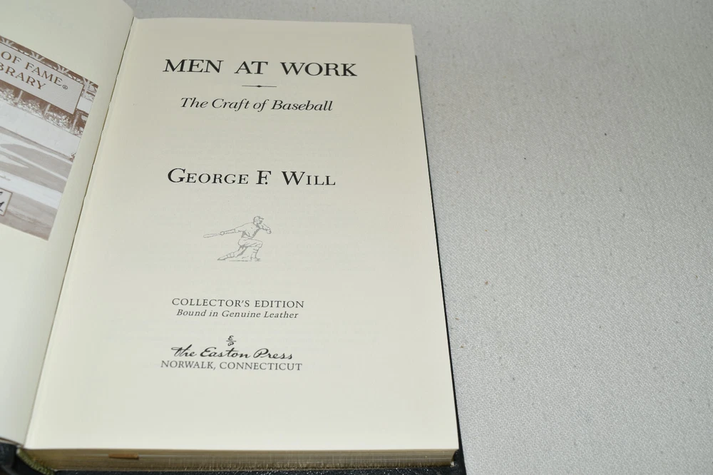 From the Easton Press Collection... Men at Work The Craft of Baseball by George F. Will C ollector's Edition Copyright 1996 by The Easton Press Bound in Premium Full Leather This volume contains all of the classic Easton Press trimmings: Premium Leather Silk Moire Endleaves Distinctive Cover Design Hubbed Spine, Accented in Real 22KT Gold Satin Ribbon Page Marker Gilded Page Edges Long-lasting, High Quality Acid-neutral Paper Smyth-sewn Pages for Strength and Durability Beautiful Illustrations A very scarce title in any condition, this Easton Press First Limited Edition is in Fine condition. The front and back covers are both in terrific condition and the gilded page edges show hardly any wear (see pictures of all gilt sides). There is a bookplate affixed to the second page. This book was published by Easton Press and would be a beautiful addition to your Easton Press collection. Hopefully you can add this book to your collection and enjoy it in the years to come... Please Email Me With Any Questions You Might Have! Shipping Info: Buyer to Pay Shipping and Handling International Bidders Pay Extra Shipping Seller Not Responsible For Uninsured Items Lost or Damaged in Mail Forms of Payment Accepted: Paypal Good luck and happy bidding! Powered by eBay Turbo Lister The free listing tool. List your items fast and easy and manage your active items.
