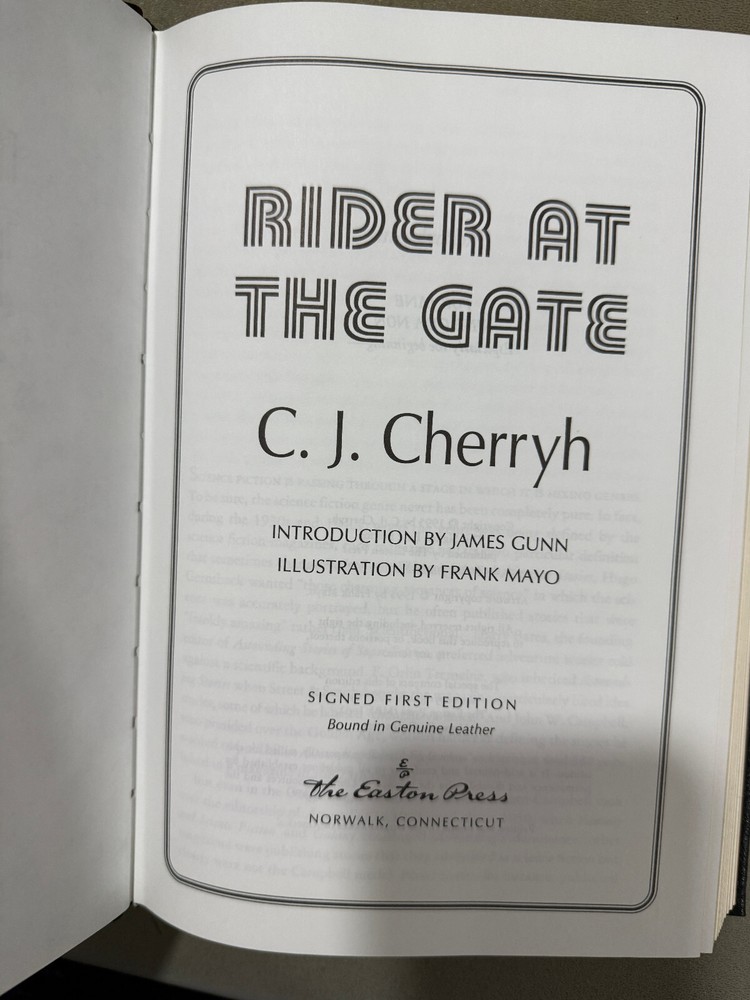 Rider at the Gate - C. J. Cherryh SIGNED Easton Press Science Fiction Excellent Condition! New Books get listed daily !!! 100s of Easton Press and Franklin Library books available!! All books get cleaned with a leather cleaner to remove any dust, odor and restore the beauty of leather!! Combined Shipping Discount: USA buyers - every book $1 off International combined shipping: 1 or 2 books - $45 3 or 4 books - $75 5 + books $17 per book 10+ books $13 per book WE SHIP DAILY!! RETURNS: Hassle-Free 30-days return policy and we pay for a return !! Check our Inventory (Link to eBay Store): http://stores.ebay.com/EastonFranklinBooks Froo www.froo.com | Froo Cross Sell, Free Cross Sell, Cross promote, eBay Marketing, eBay listing Apps, eBay Apps, eBay Application