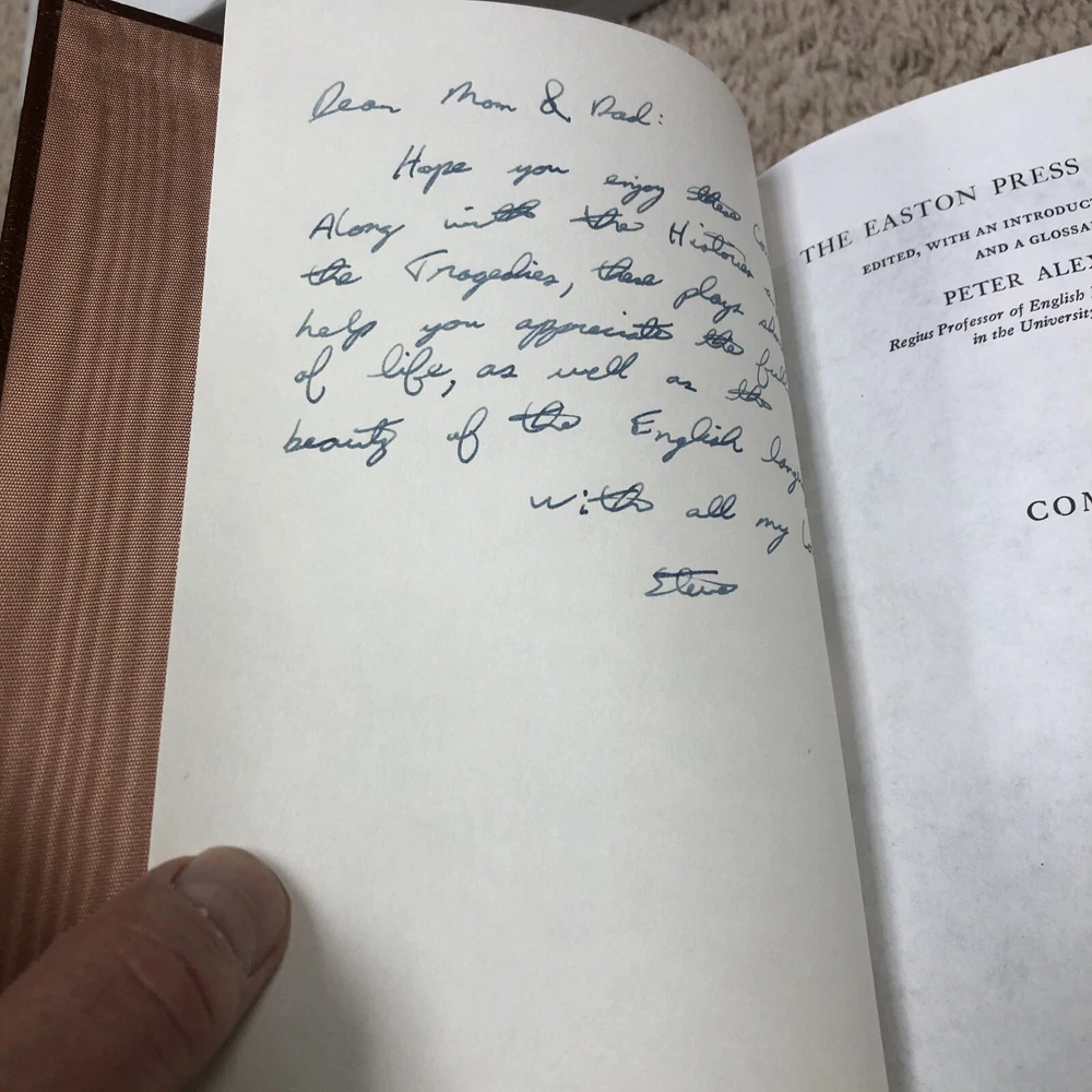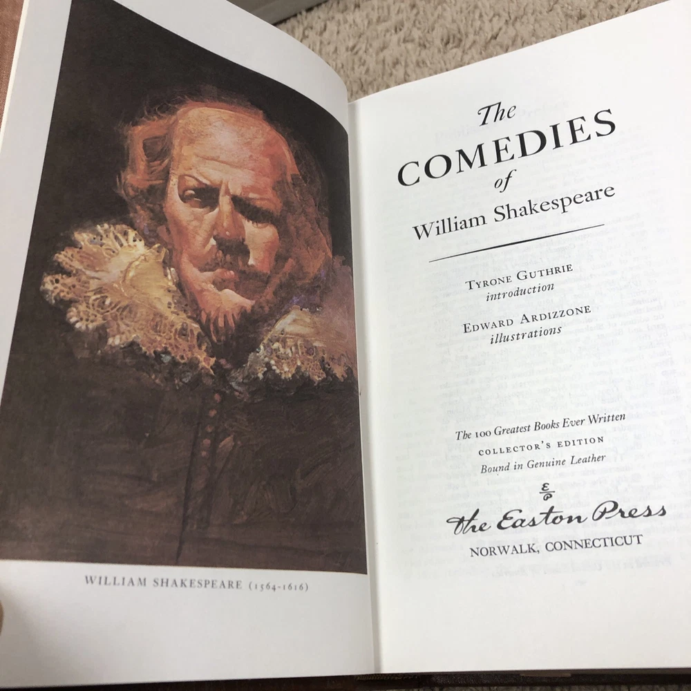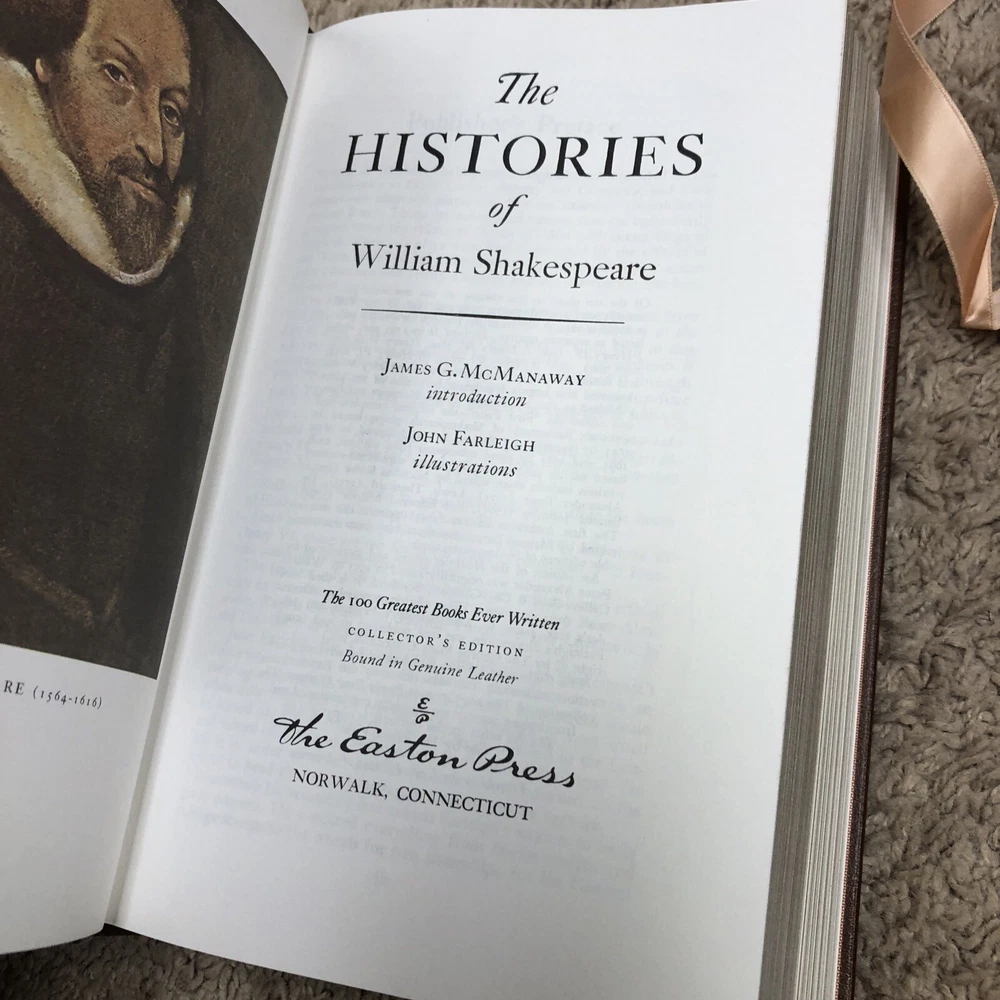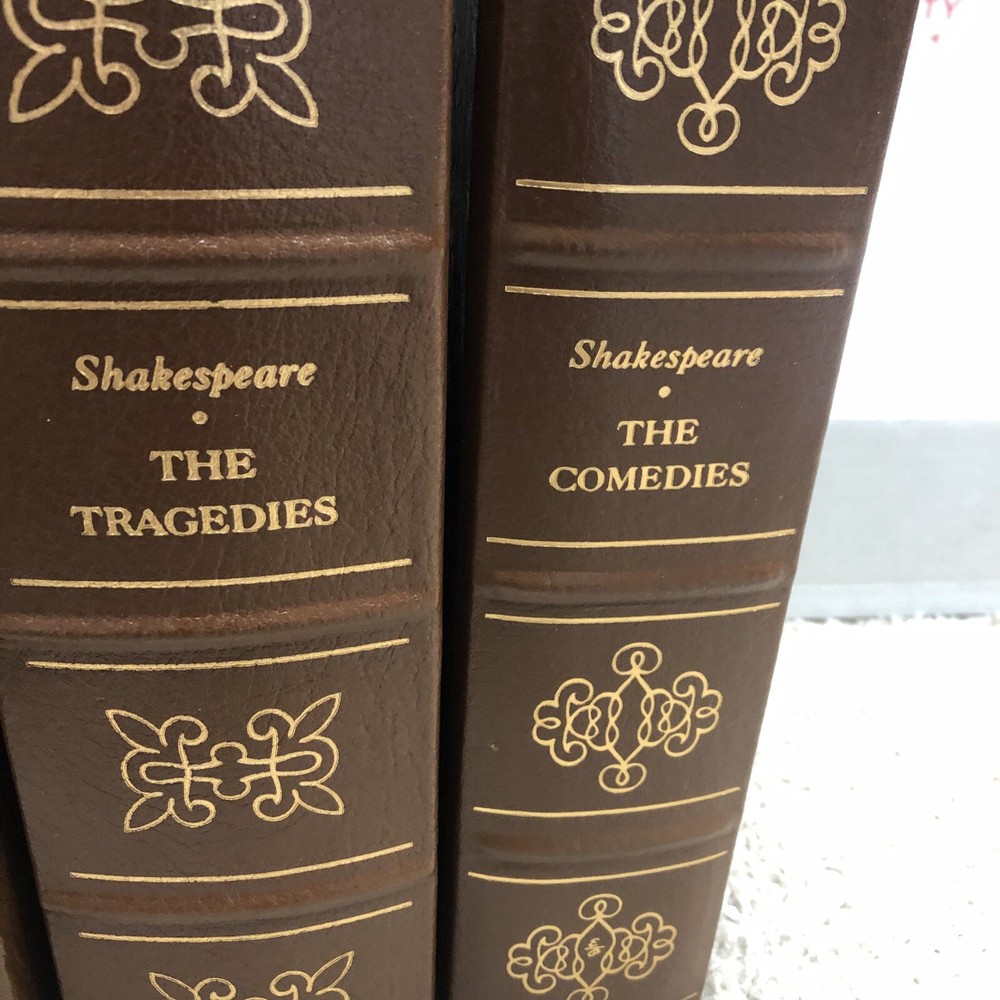 Delve into the world of literature with the Easton Press Shakespeare Complete Set, "100 Greatest" Leather Collector's Edition. This exquisite collection showcases the works of William Shakespeare, presented in a luxurious leather-bound format that exudes classic elegance. Each volume is meticulously crafted, inviting readers to immerse themselves in the richness of English literature. Published by Easton Press, this set is a testament to the timeless appeal of Shakespeare's classics, offering both a visual and literary feast. The books are adorned with illustrations that bring the stories to life, enhancing the reading experience. Whether for a seasoned bibliophile or a newcomer to the classics, this collector's edition is a proud addition to any library. On a scale of one to ten A “10” All three volumes look like they were never read Norwalk Connecticut
