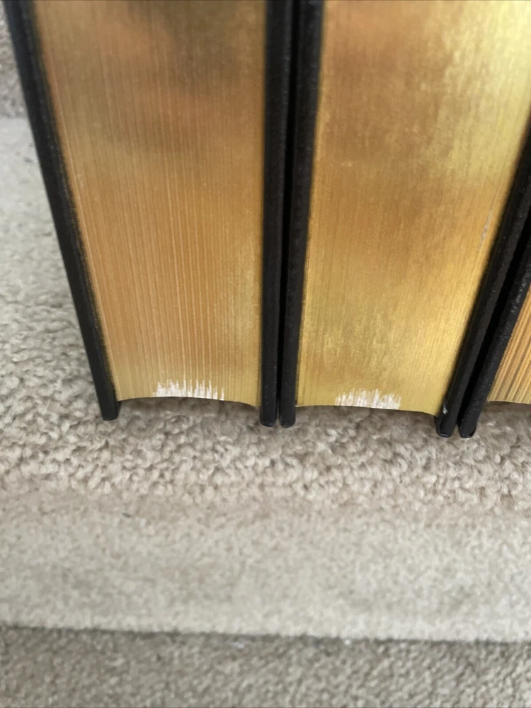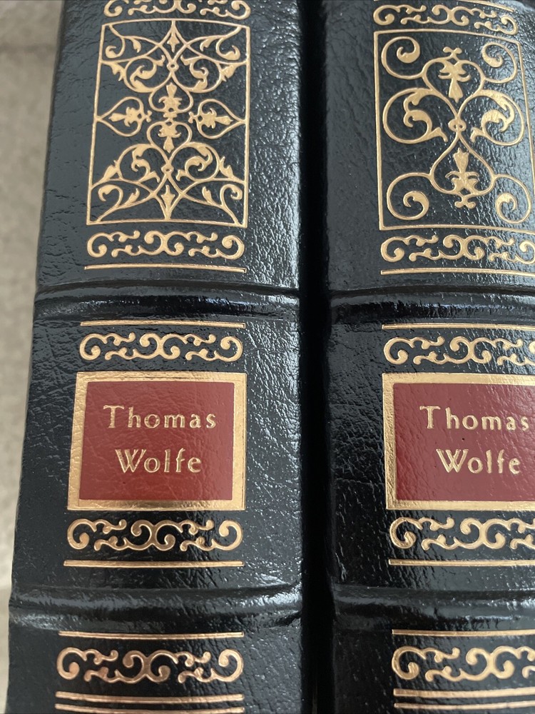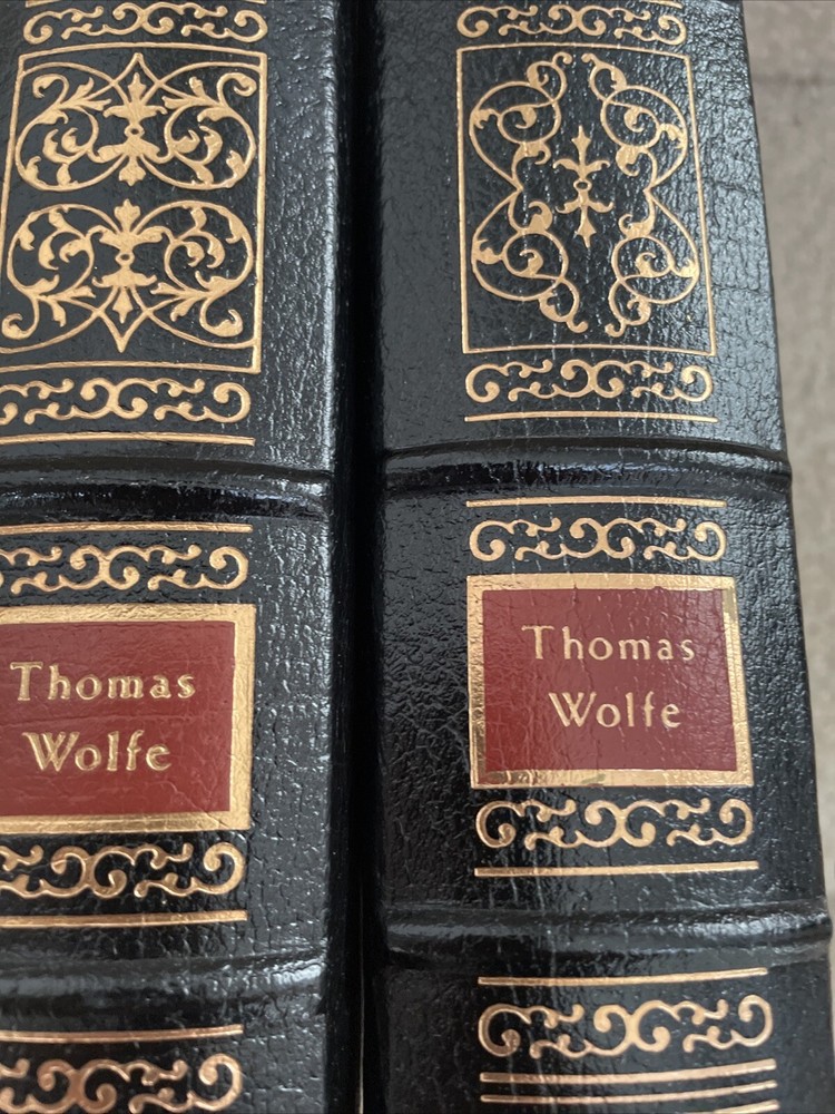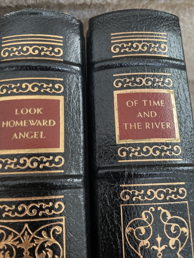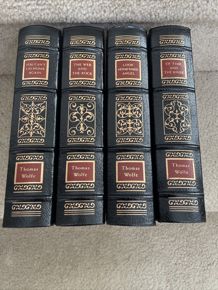 Easton Press Collector's Edition The Works of Thomas Wolfe in 4 volumes (Look Homeward Angel, The Web and the Rock, You Can't Go Home Again, and Of Time and the River. The book is full leather. There are no bookplates in the book. This book is in near mint condition with no wear. The gold on the covers looks like new. The end pages show no fading. The gilt on the edge of the pages is in almost perfect condition with light spotting on the top on a couple of volumes, shelf wear on the bottom corner on all, and a light scratch here and there. Please see photos. We try to describe as accurately as possible so you will be satisfied with your purchase. We have more books from this set on eBay and we would be happy to combine on shipping to save you money. All books are sent with insurance via USPS Media Mail.