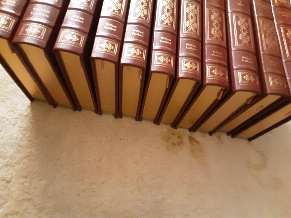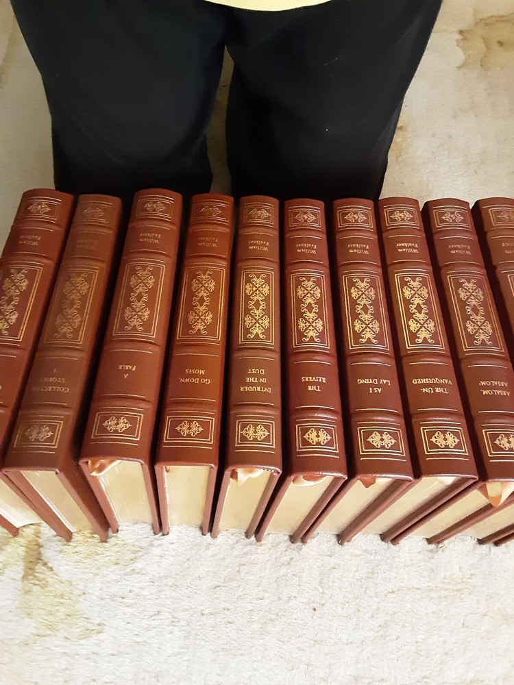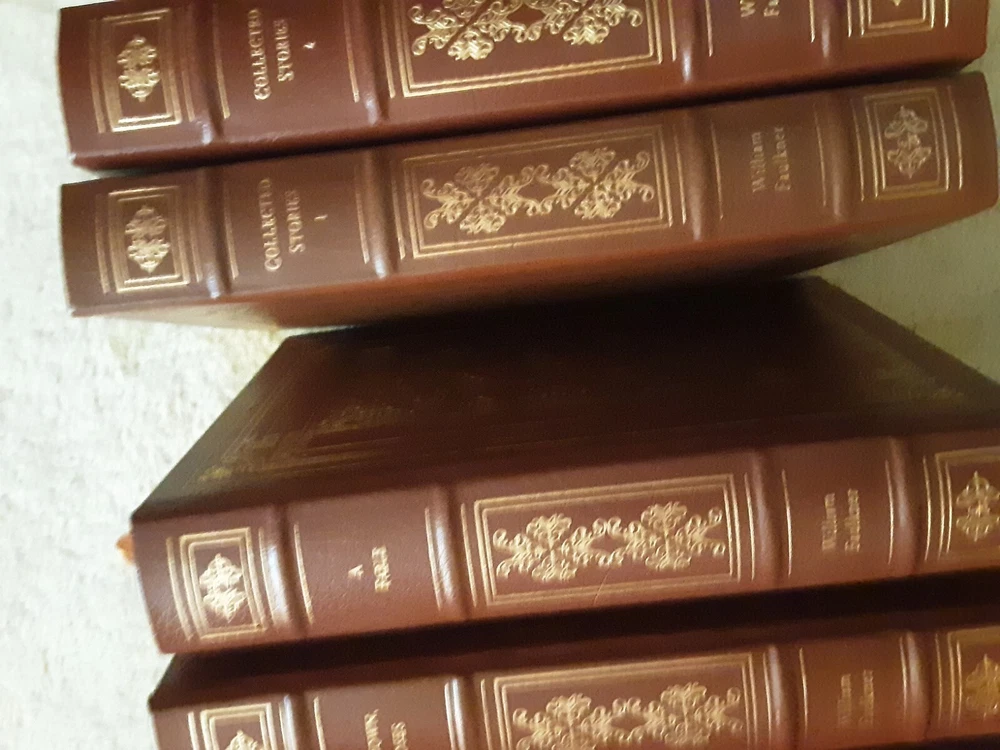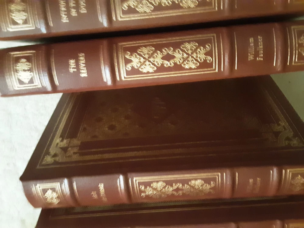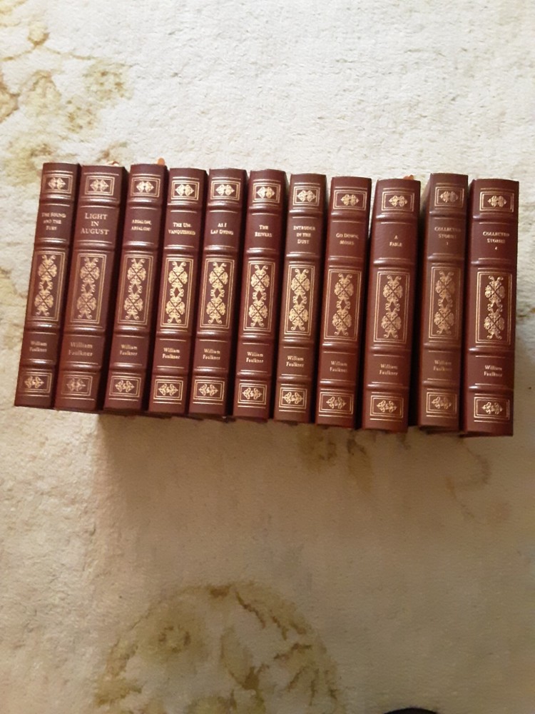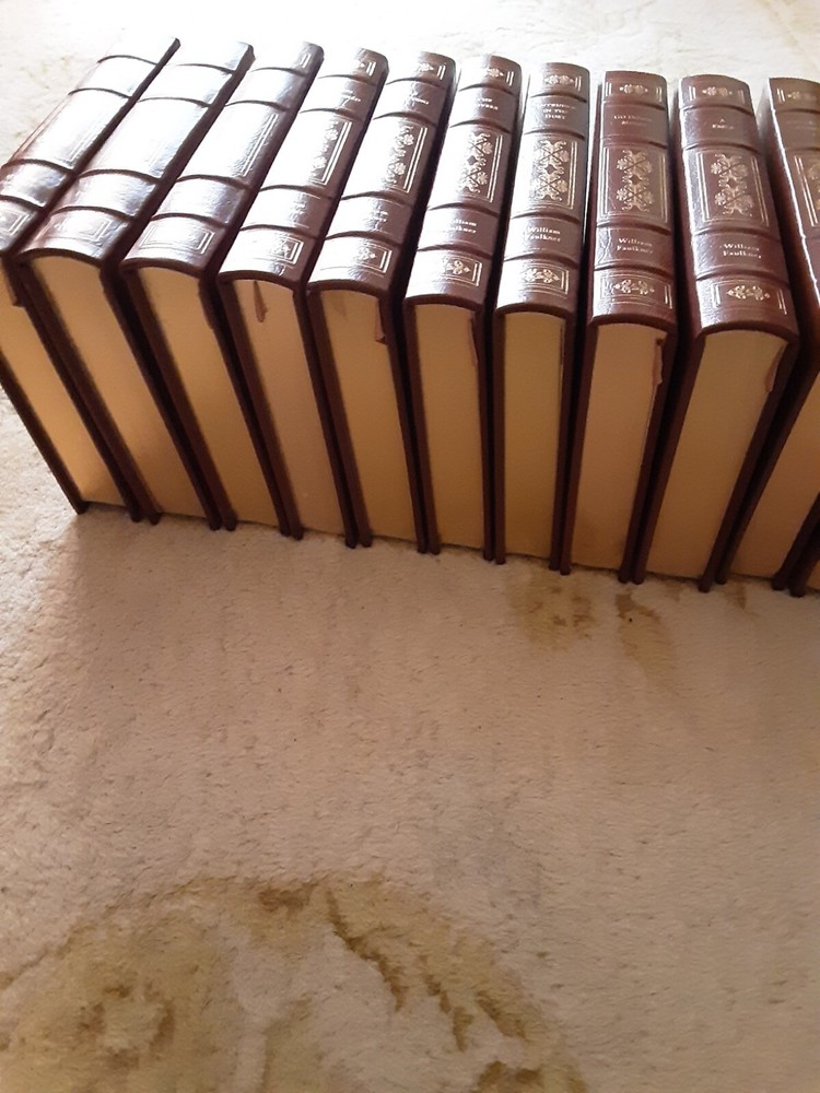 This is a complete set of 11 volumes of William Faulkner's Classics, published by Easton Press and bound in leather. The books are in their original form and are illustrated with special attributes. The author, William Faulkner, is known for his unique style and contribution to literature and fiction. The books are written in English and cover various topics under the subject of Classics. This set is a perfect addition to any collector's library and a must-have for any fan of William Faulkner's work. Inside pages do have a small area of residue of a label. otherwise, books are flawless. Beautiful rich color leather. E aston Press WILLIAM FAULKNER COLLECTION - Out of Print - 11 volumes (complete)
