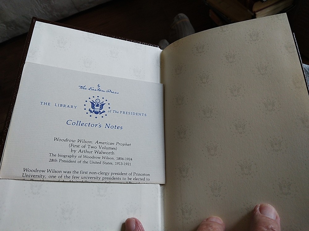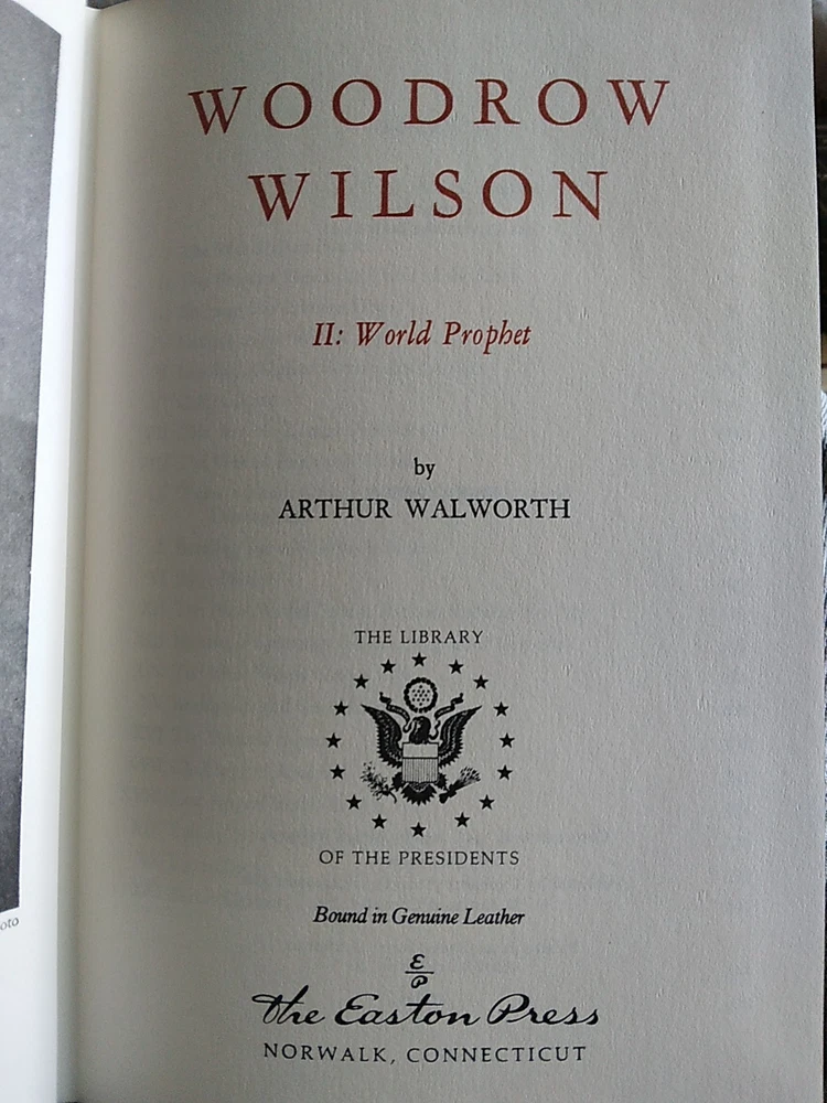 The product is a luxurious 2-volume set titled "Woodrow Wilson: American Prophet: World Prophet" by Arthur Walworth, published by Easton Press in 1978. The leather-bound books feature original period photographs and illustrations, making them a valuable addition to any history enthusiast's collection. This special edition set delves into the life and legacy of Woodrow Wilson, providing insights into his impact on American and global politics. The books are a tribute to Wilson's influential presidency, making them a must-have for collectors interested in historical figures and events. Mint.