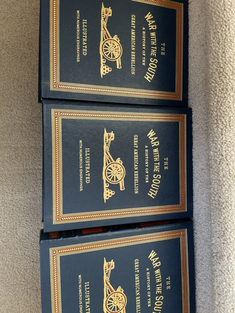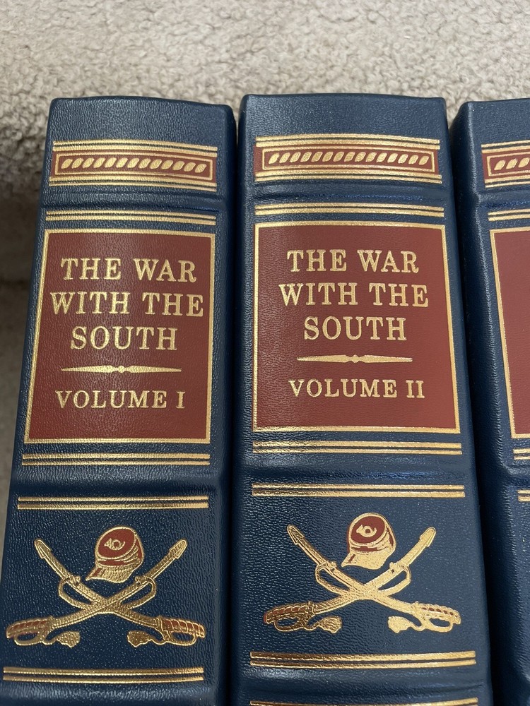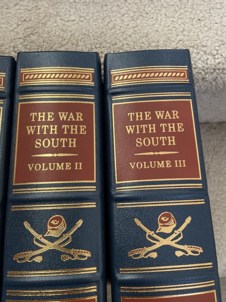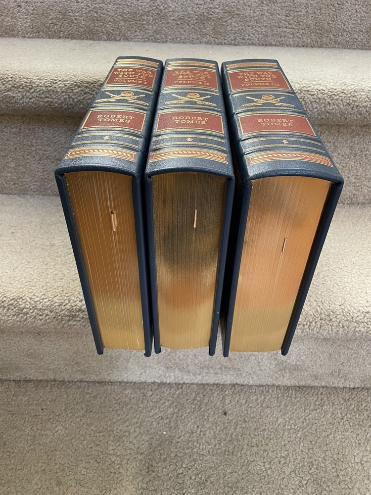 Easton Press War with the South by Robert Tomes in 3 volumes. The books are full leather. These books are in near mint condition with extremely little wear. The gold on the covers looks like new. The end pages show no fading. The gilt on the edge of the pages is in almost perfect condition with most volumes perfect. Only a few have an occasional scratch. Please see photos. We try to describe as accurately as possible so you will be satisfied with your purchase. We have more books from this set on eBay and we would be happy to combine on shipping to save you money. All books are sent with insurance via USPS Media Mail.