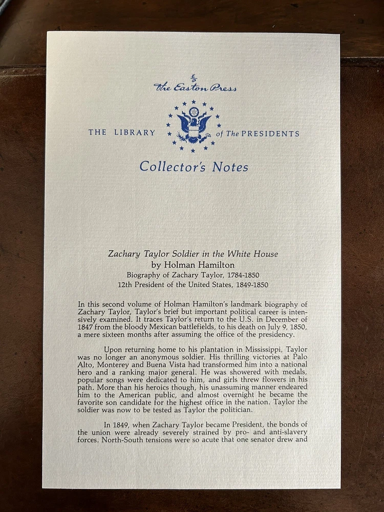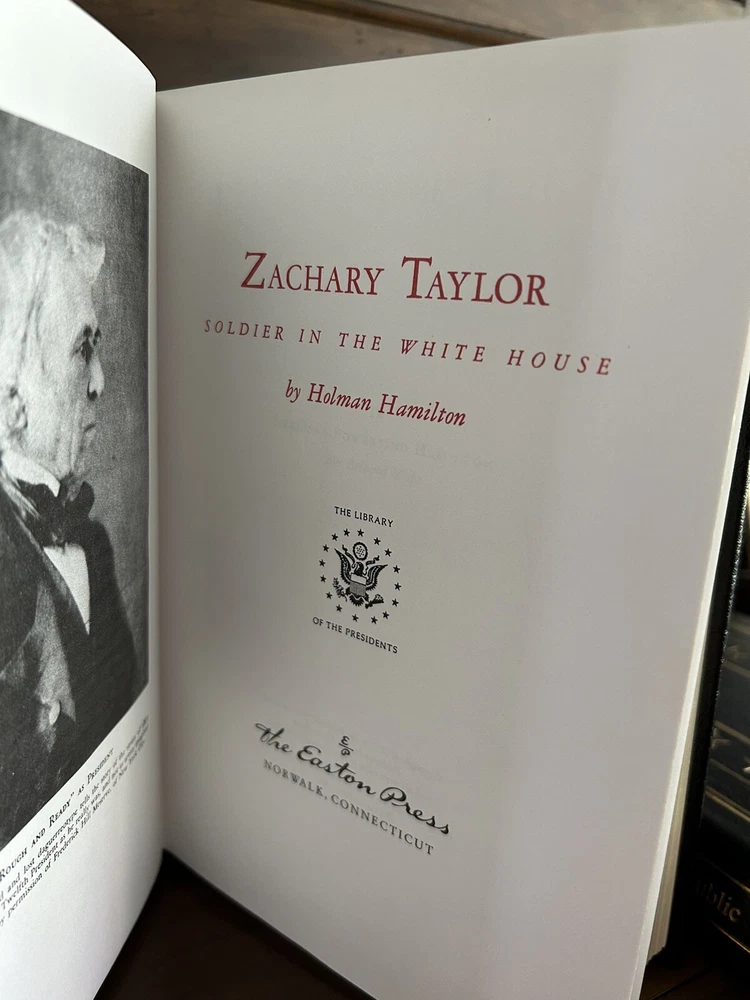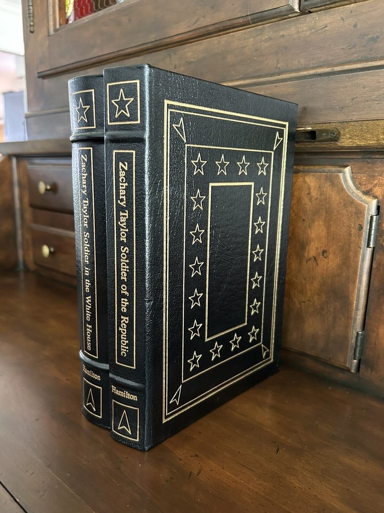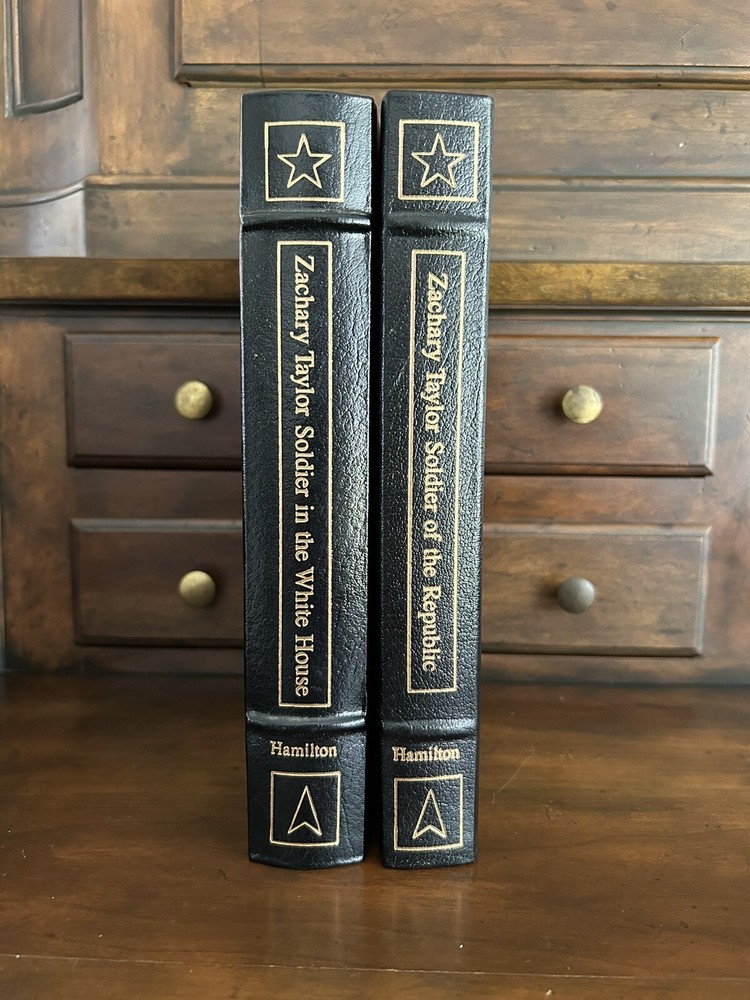 Easton Press ZACHARY TAYLOR SOLDIER OF REPUBLIC & WHITE HOUSE Hamilton 2V SET. Very Good Condition. Pages look unread. Ex Libris sticker on the inside front cover and stamped with the original owners name (please see the picture!). The Collector's Note for Soldier in the White House is included. The Collector's Note for Soldier of the Republic is NOT INCLUDED. Books are carefully packaged to prevent damage during shipping. Books will ship via USPS Media Mail. If you have any questions, please email me through Ebay's mail system BEFORE you purchase. I want you to be happy with the purchase you make before you spend your hard earned money :) Thank you!