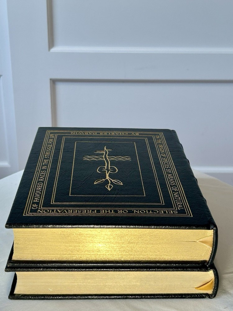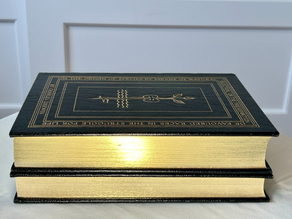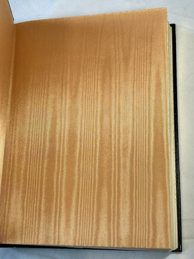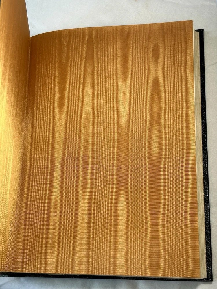 Leather bound, gold foil embossing on front, back and spine, bound in silk ribbon bookmark, satin moire endsheets, hubbed spine, archival paper, gilded edging and a durable sewn binding. Never read and in good condition. Covers, leather, gilded edges & foil are all in good condition. No affixed bookplates or other personalizations. No marks, writing or other defects. Your books will be individually bubble wrapped and packed securely in a box to arrive to you in good condition.
